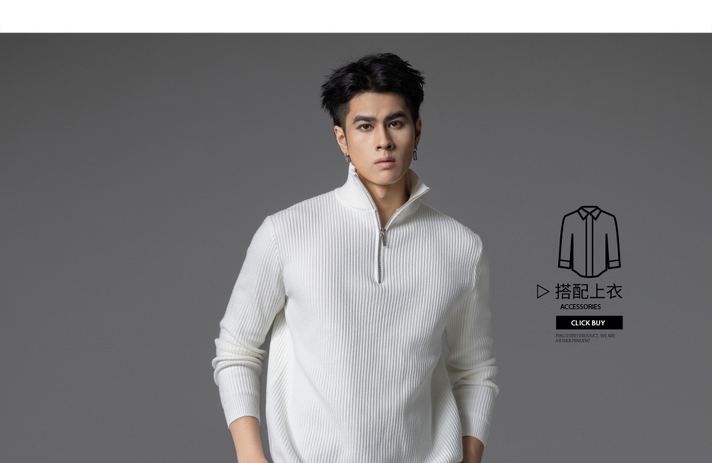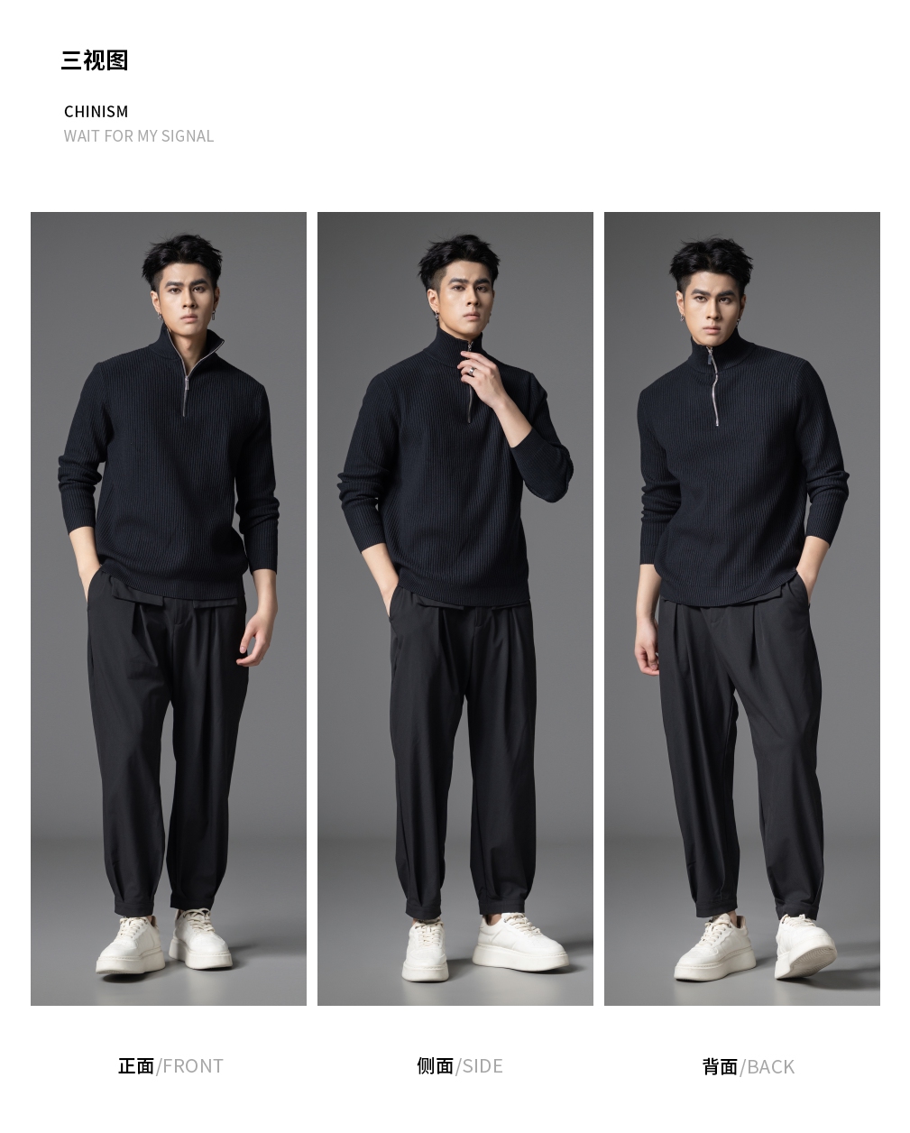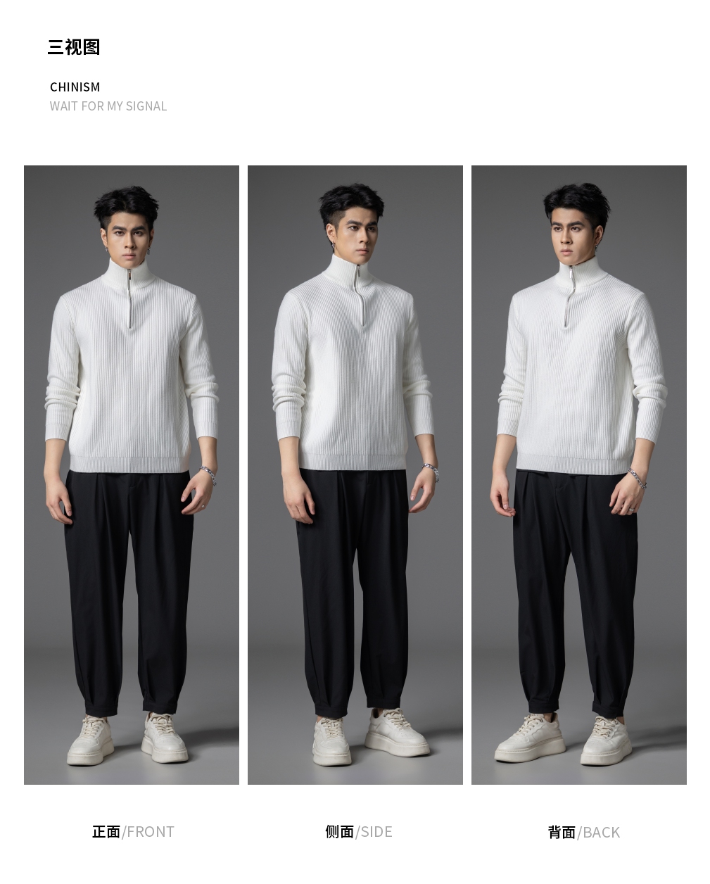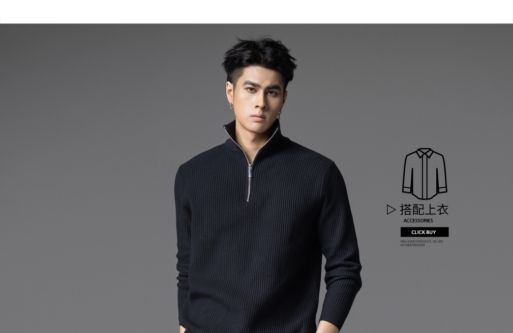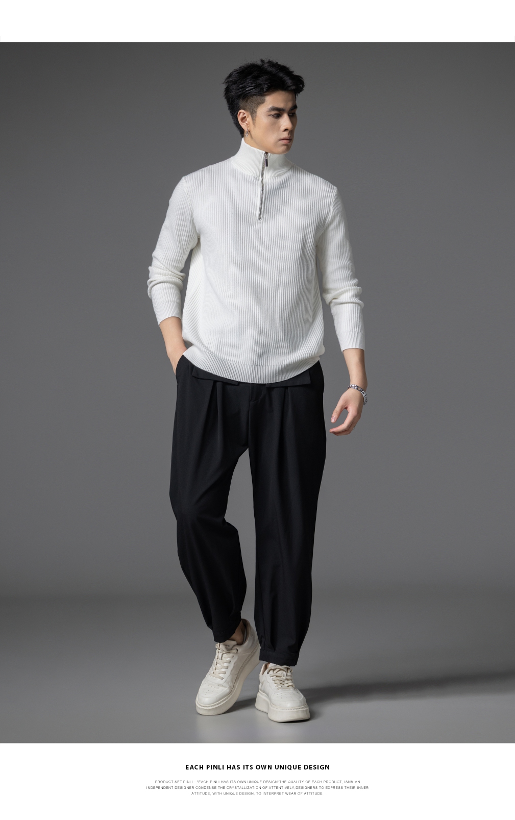 PINLI品立2025秋季新款男士拉链门襟高领条纹提花打底针织衫毛衣GD253110078