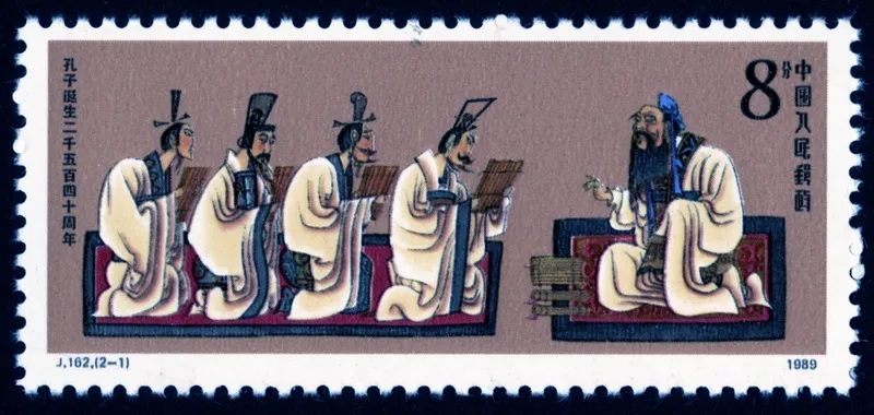 2-1为“杏坛讲学”。杏坛在今山东曲阜县城内孔庙大成殿前。相传当年孔子曾端坐在杏坛之上,辅导弟子读书,并弦歌教之。