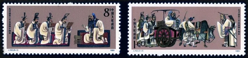 2-2为“周游列国”。描绘了孔子中年后历游宋、卫、陈、曹、郑、蔡、齐、楚等国的情况。公元前497年,孔子50岁那年,因受到排挤,离开鲁国,想把自己的仁政主张在其他一些国家得到实施。