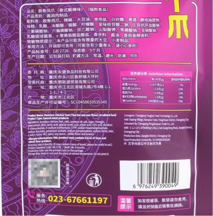 永健脱骨凤爪(泰式酸辣味)60g