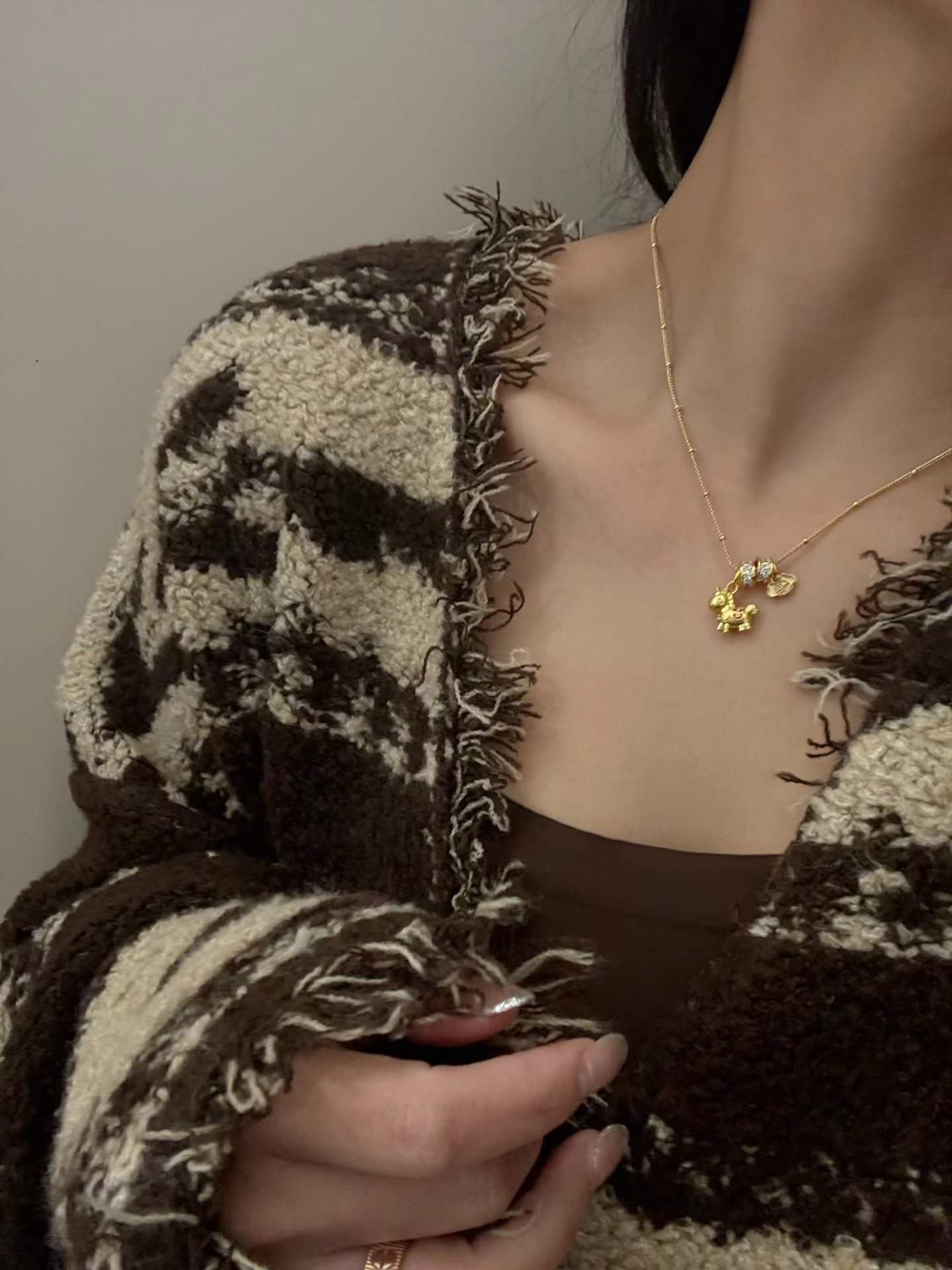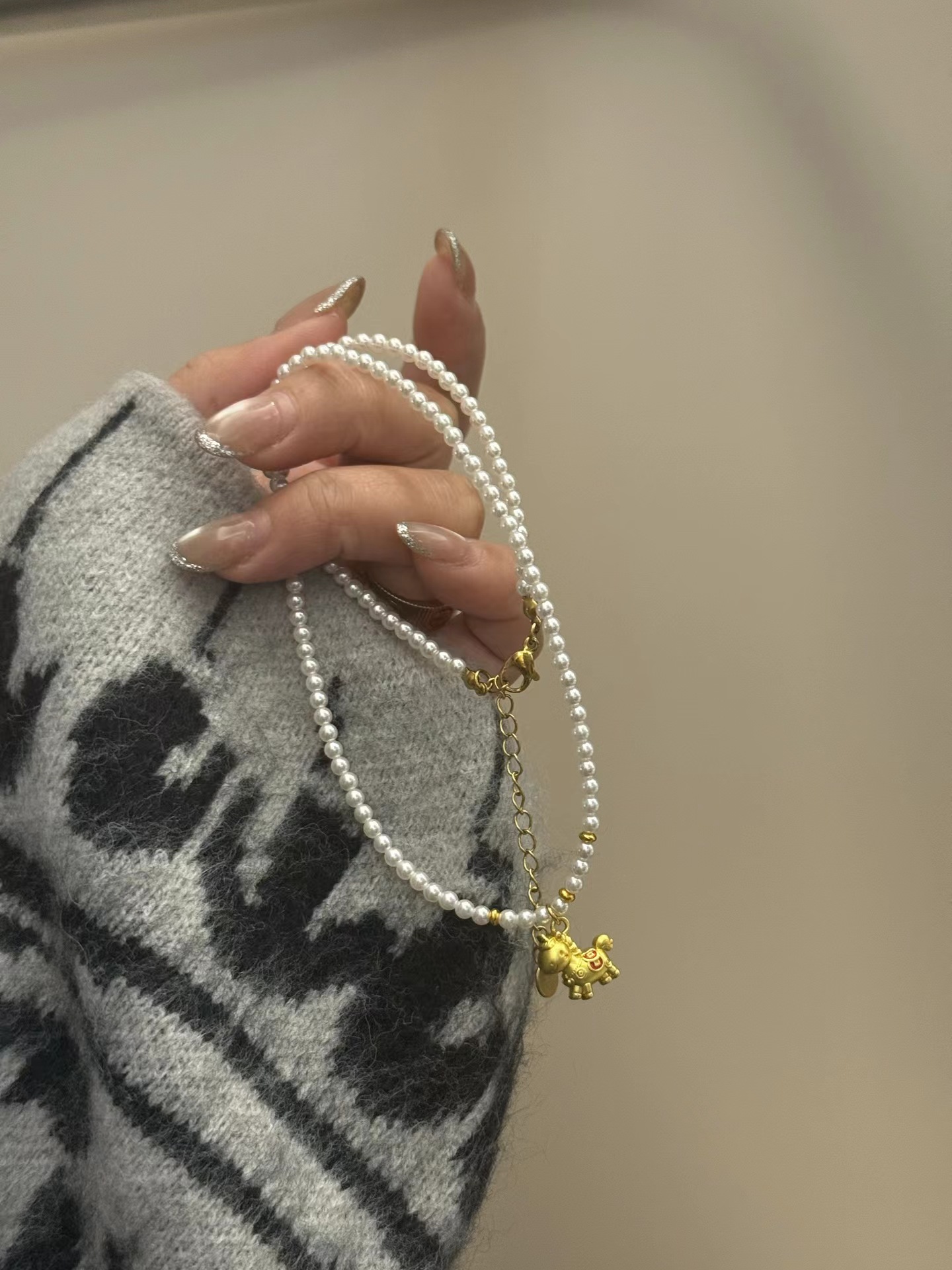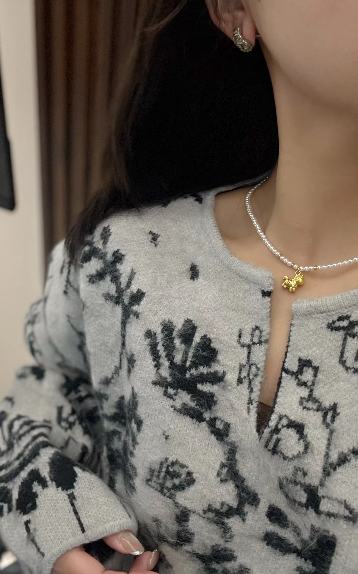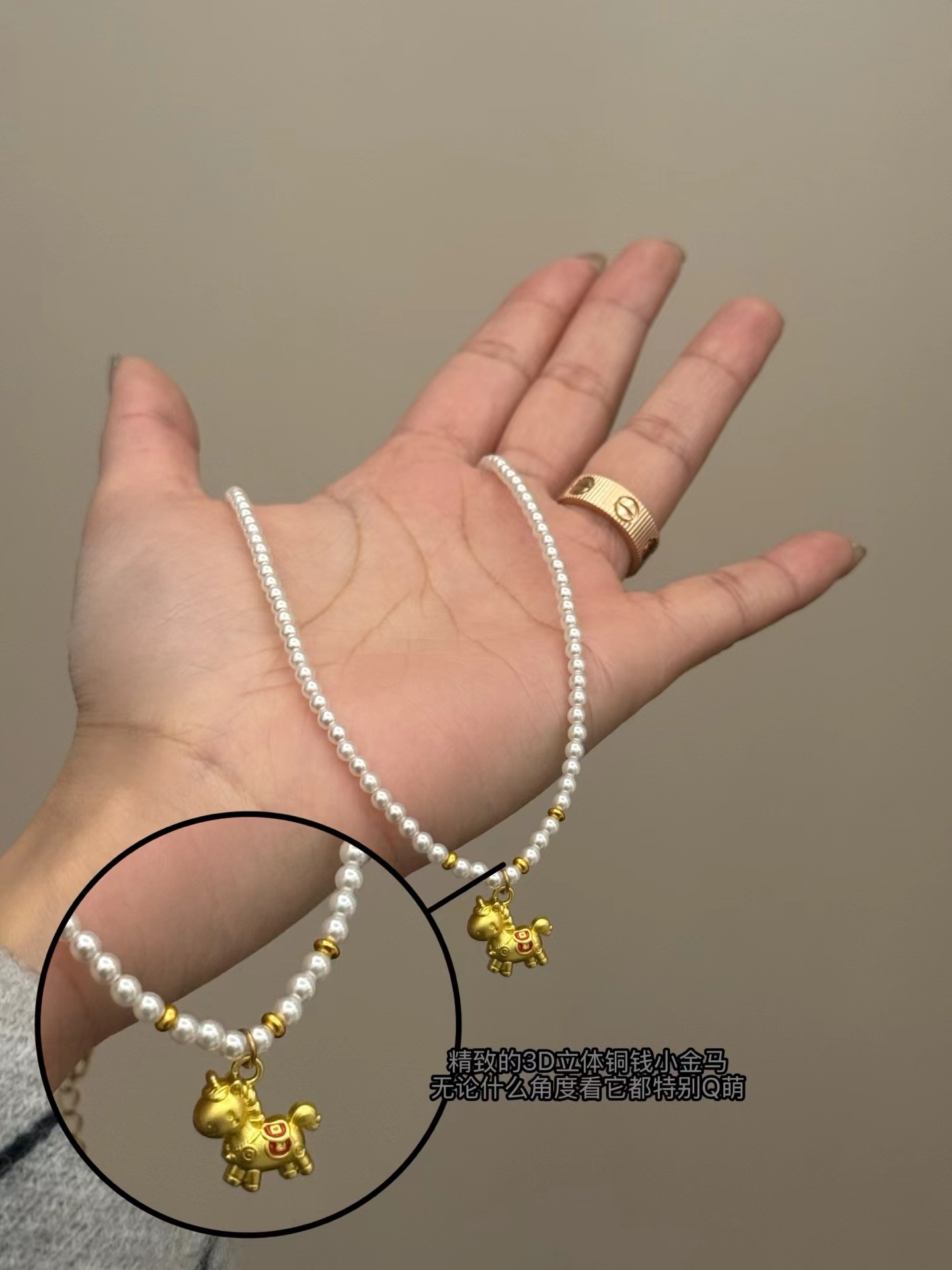 珍珠小马原相机上身秋冬搭配毛衣好看飞了~「珍珠小马」3mm珠+铜镀沙金小马(质地巨像真金),尾链和扣环都是钛钢(不易褪色)本命氛围感轻松拿捏,佩戴出街会被闺蜜夸爆温柔的珍珠搭配一匹超Q萌的小富马是真戳心窝子啊!彻底打破了我对珍珠项链"太成熟"的刻板印象!一眼就被这个小小的沙金铜钱小马吊坠俘获了! 寓意极好的“小金马”配上温润的小珍珠链,简直是把轻she感和少女心平衡得恰到好处。戴上它感觉整个人都bling bling的,而且自带一种童话般的梦幻感~