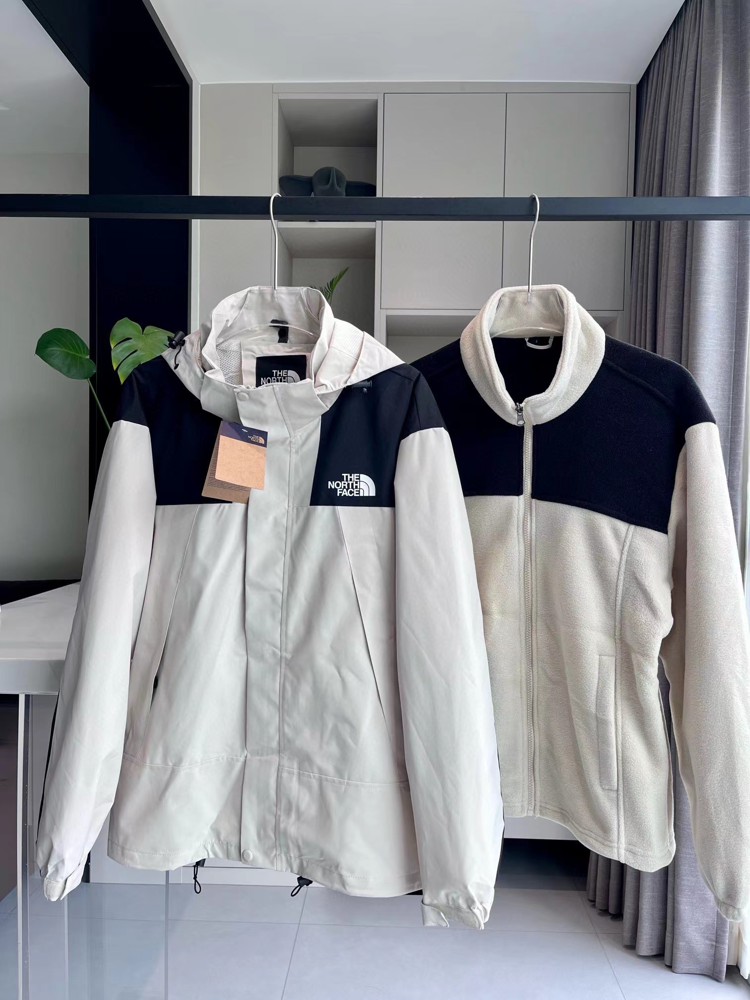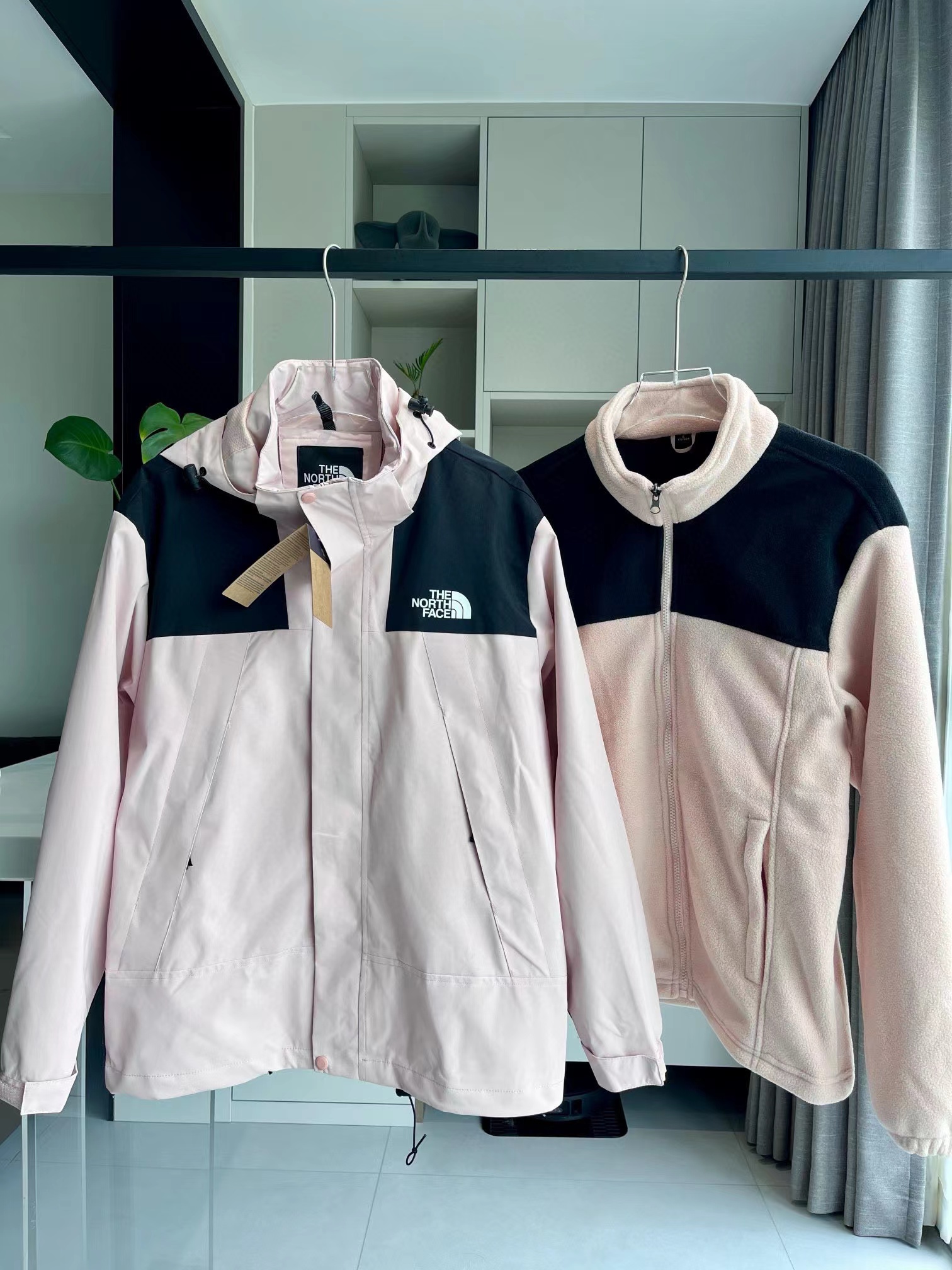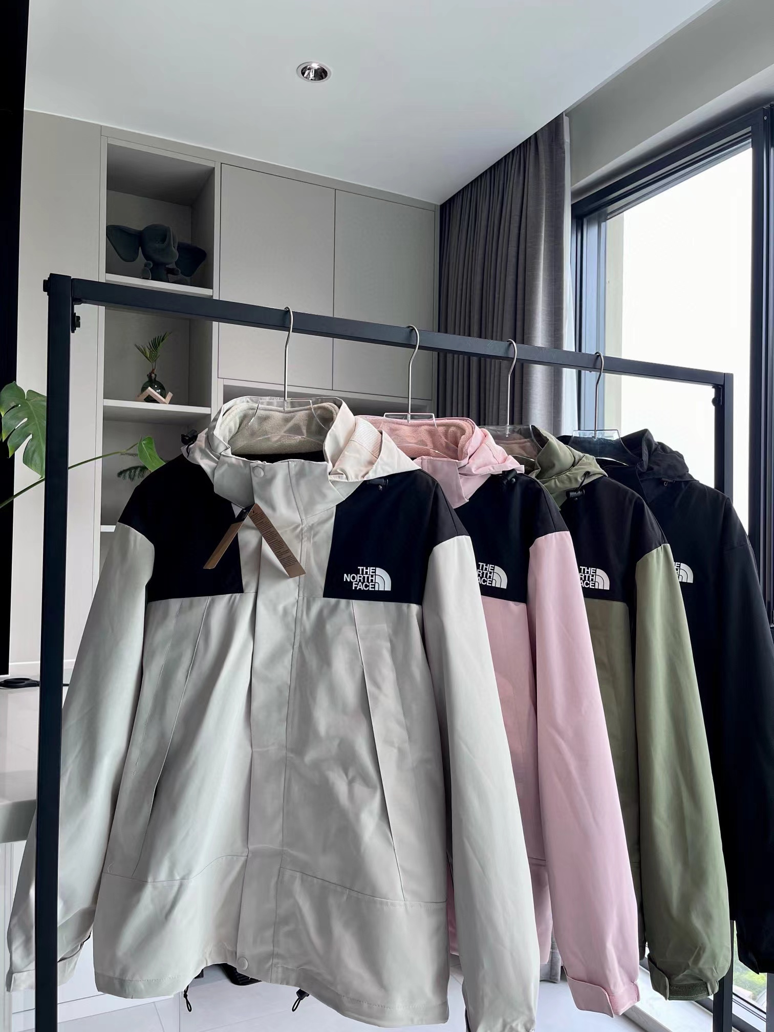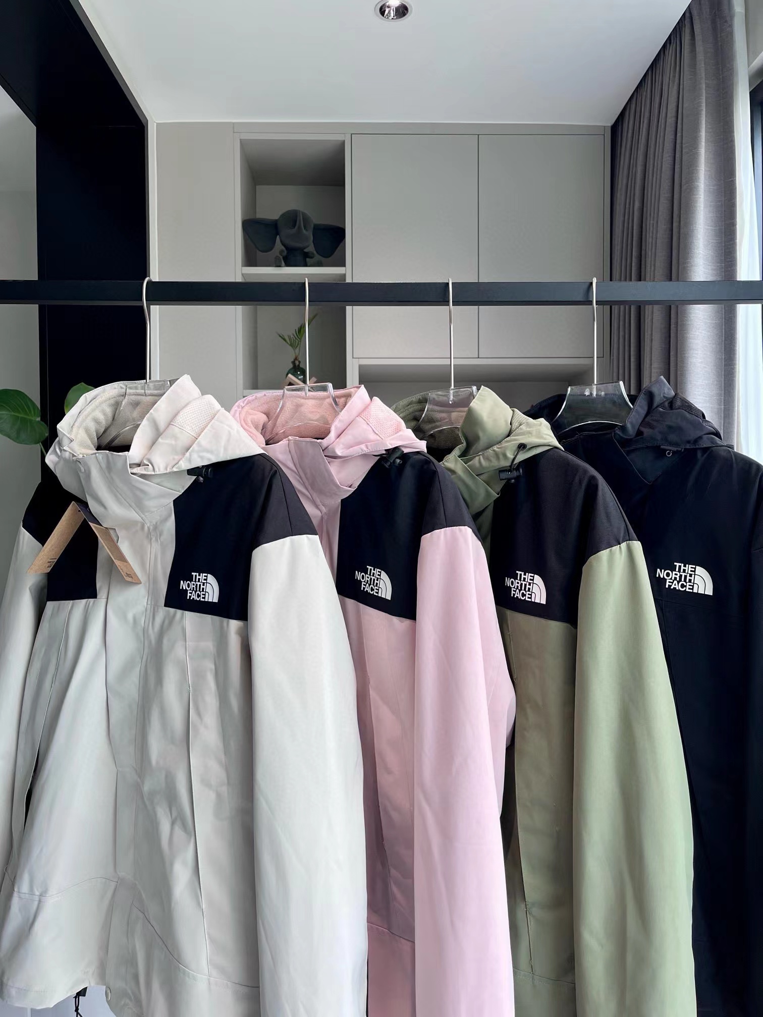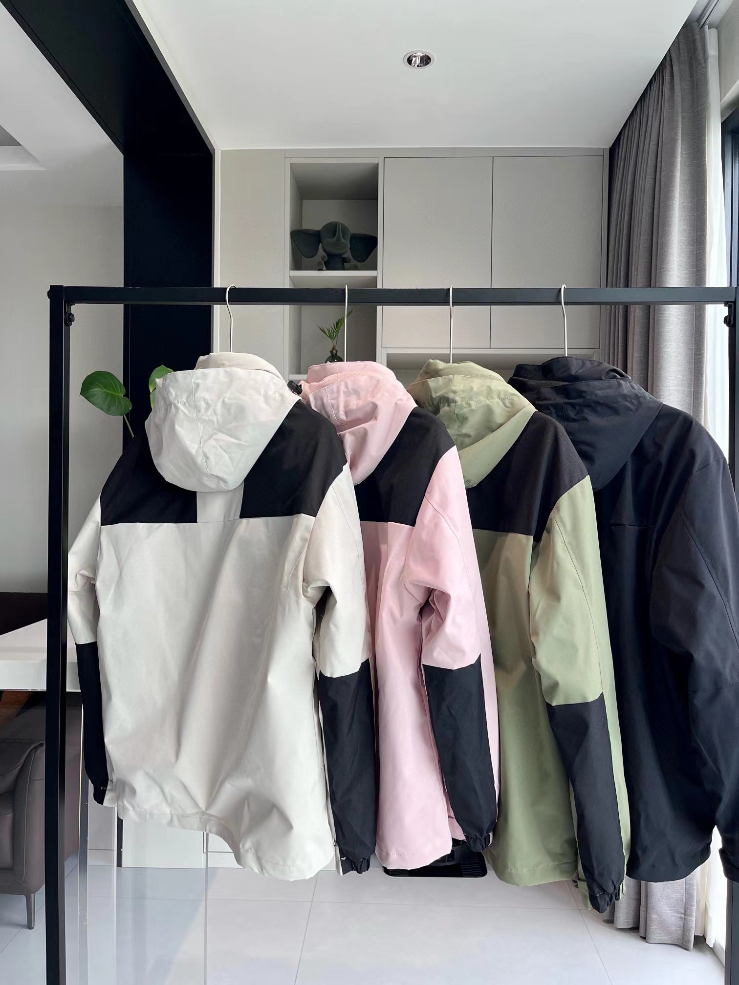 拼接四色连帽三合一外套夹克冲锋衣,一件衣服三种穿法,御寒保暖,宽松显瘦,高品质,帽子有注塑调节扣可随意调节,穿着方便,舒适有型 宽松版型对身材包容度强 高矮胖瘦都能轻松驾驭 冲冲冲!男女同款情侣可搭。