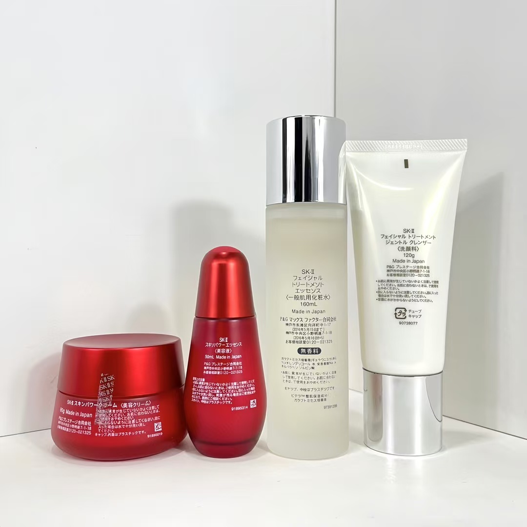 ( 新版SK正装四件套) 到货❗️SKII正装护肤四件套全套新版升级。内含:磨砂瓶面霜80g,磨砂瓶红灯泡精华50ml,神仙水160ml,洗面奶120ml。