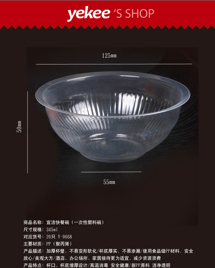 宜洁塑料碗345ml (20只/袋)