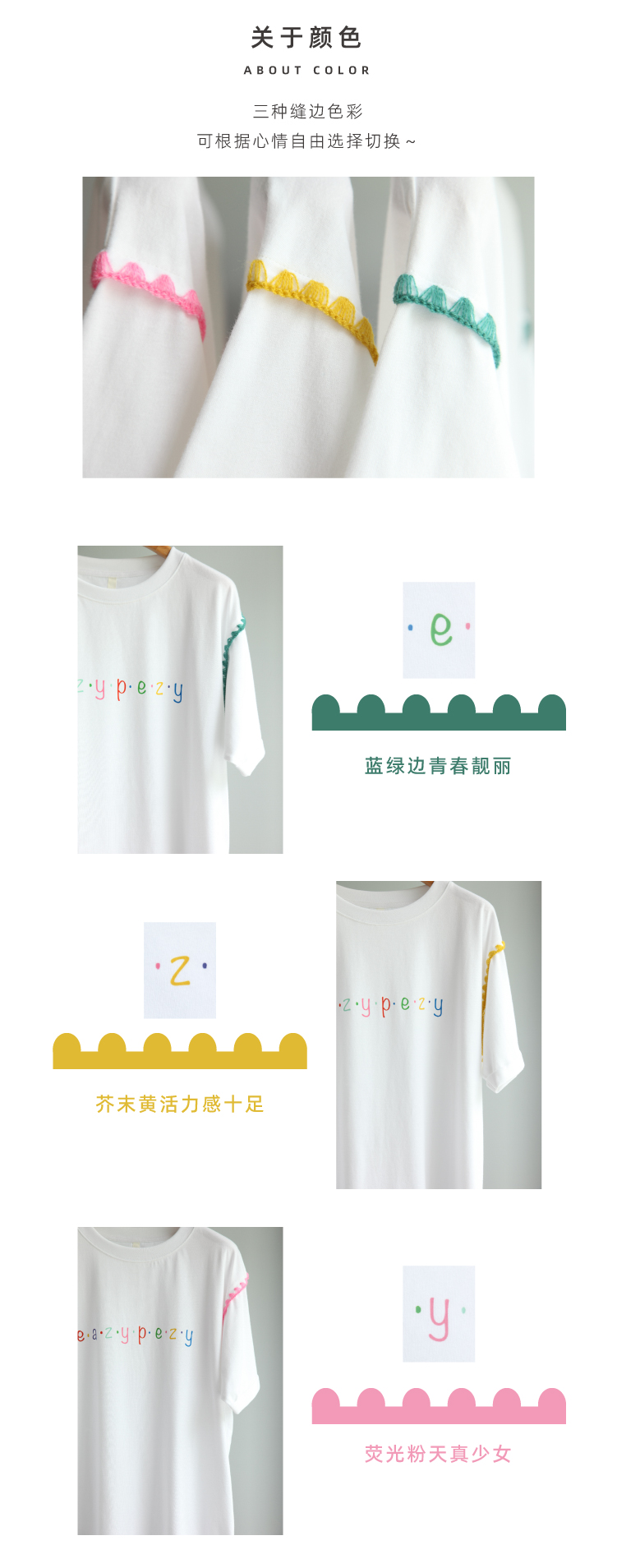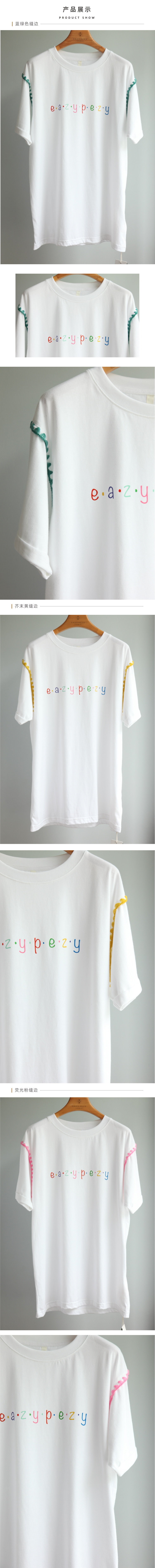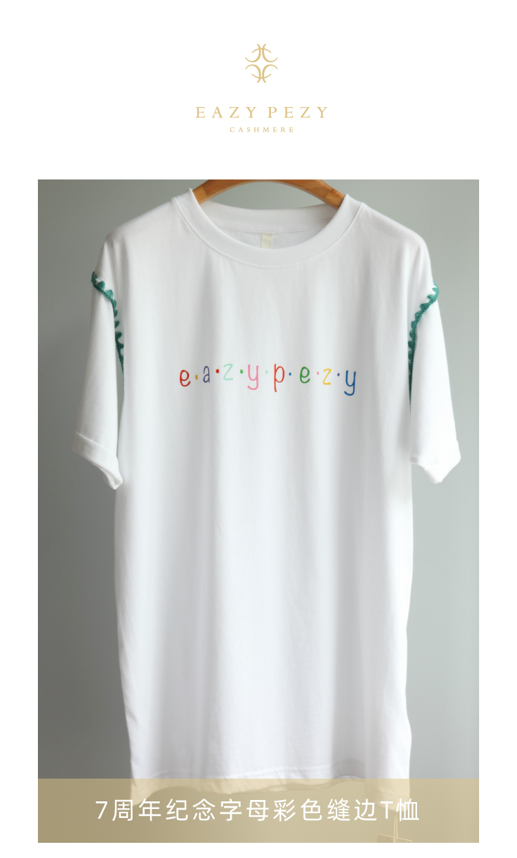 EAZYPEZY 7周年纪念字母彩色缝边T恤