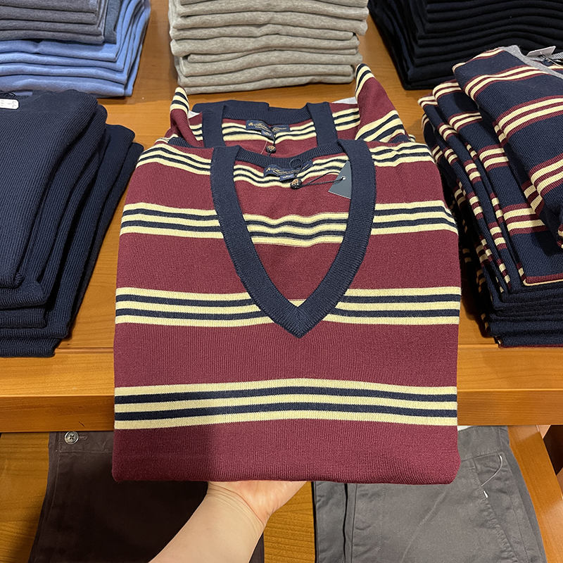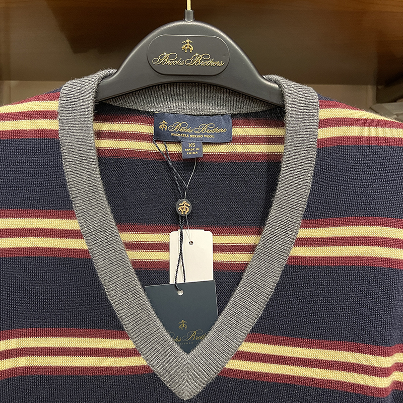 不支持7天无理由退换货Brooks Brothers/布克兄弟 男士秋季新款羊毛套头v领针织衫毛衣