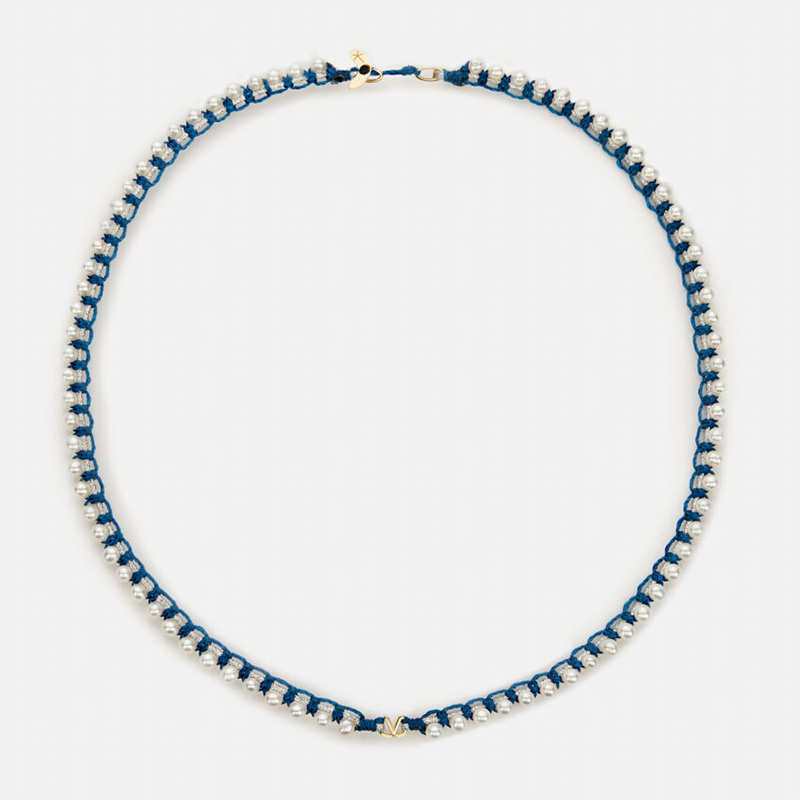 订购10周到|CHRISTIANA KAFA-wonder-蓝线 钻石 白色淡水珍珠 项链[希腊设计师]
