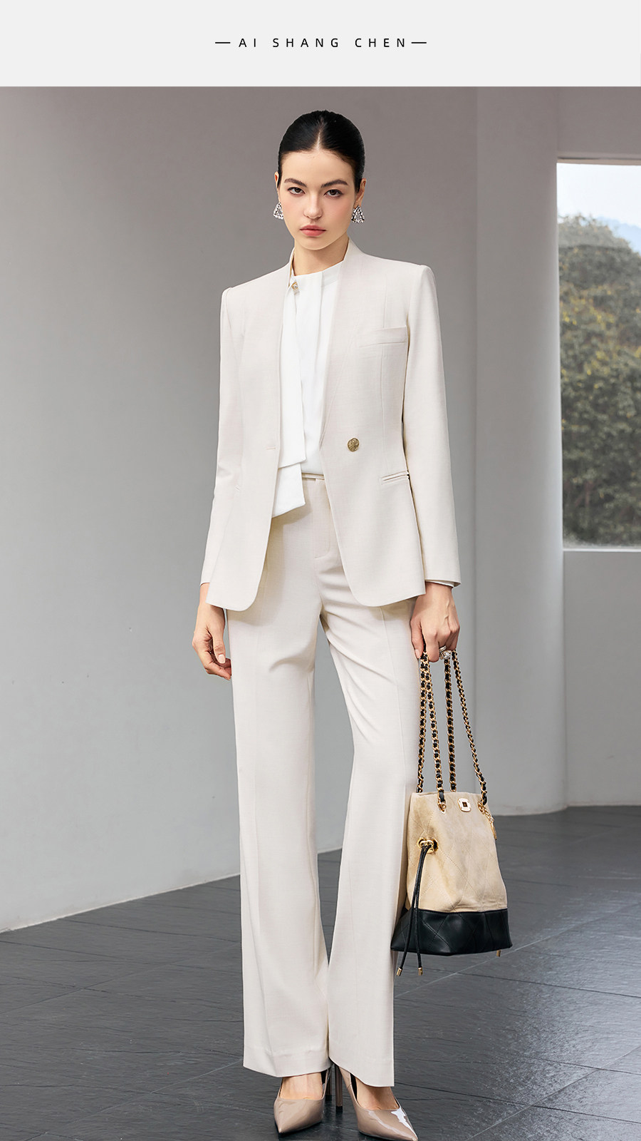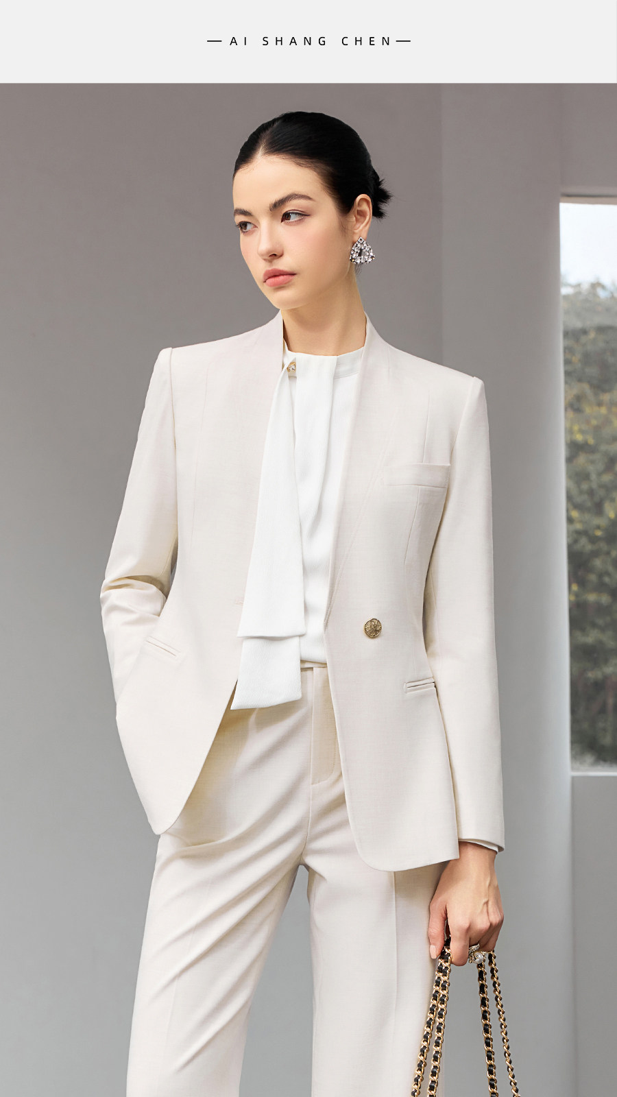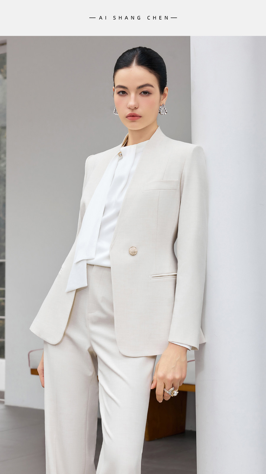 艾尚臣米白色西装套装女春季轻熟通勤风女装气质OL长袖西服职业装