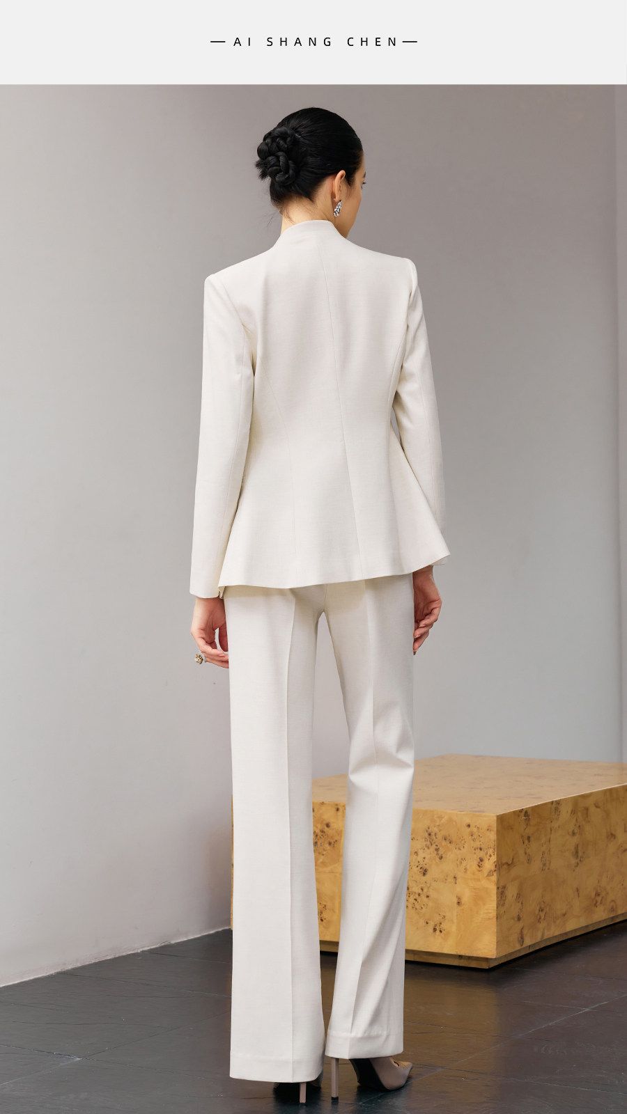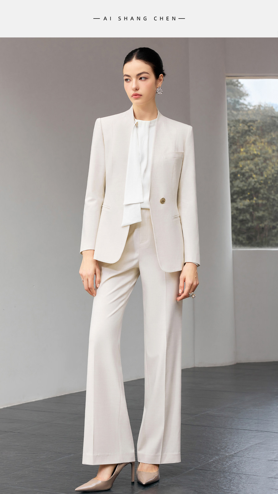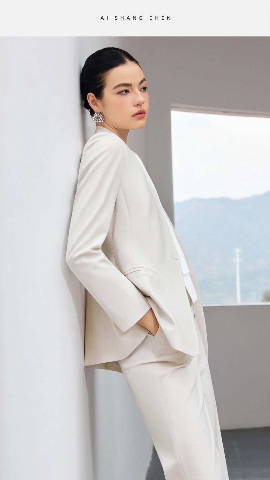 艾尚臣米白色西装套装女春季轻熟通勤风女装气质OL长袖西服职业装