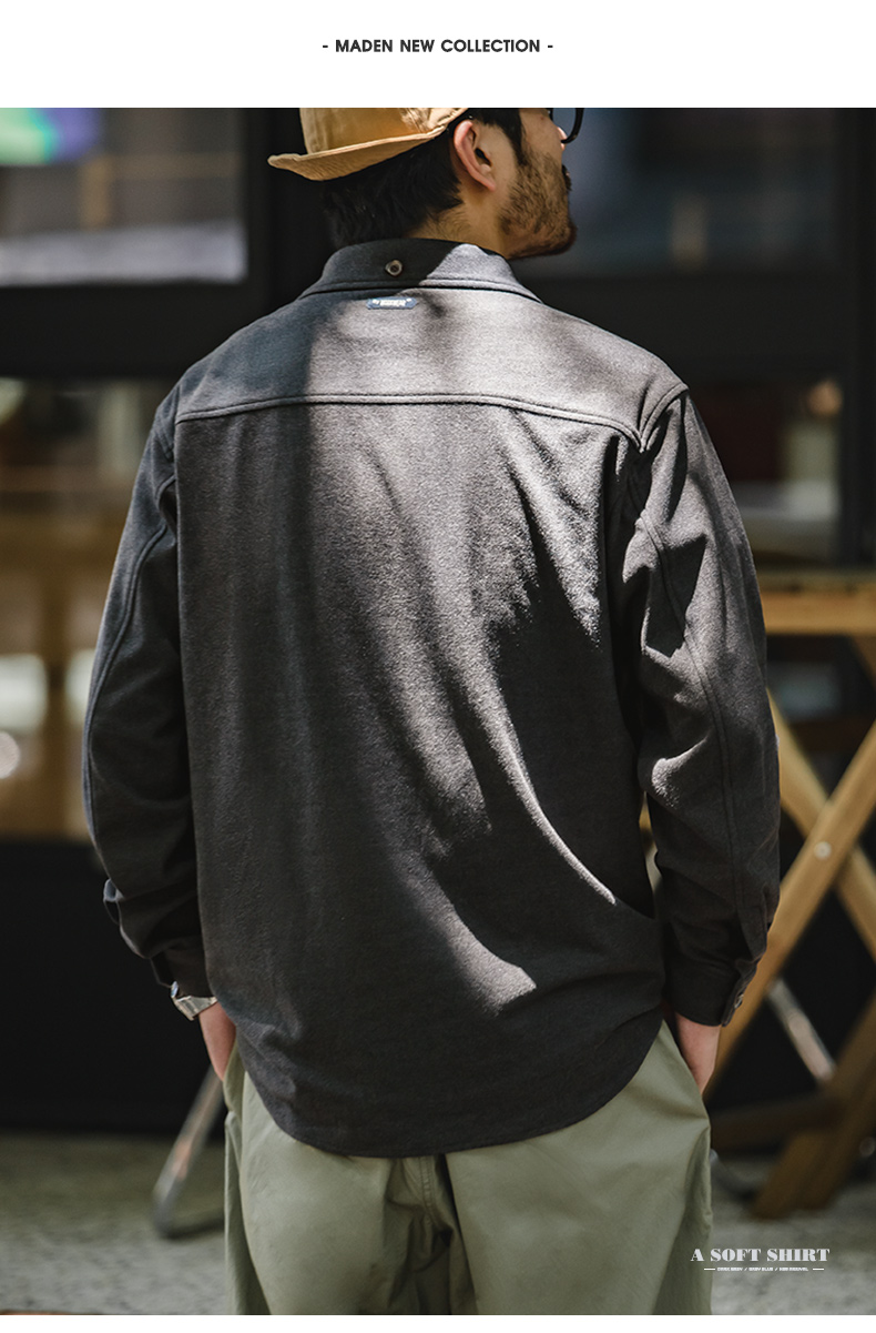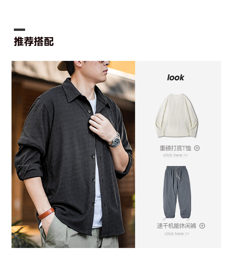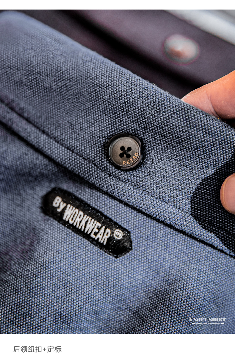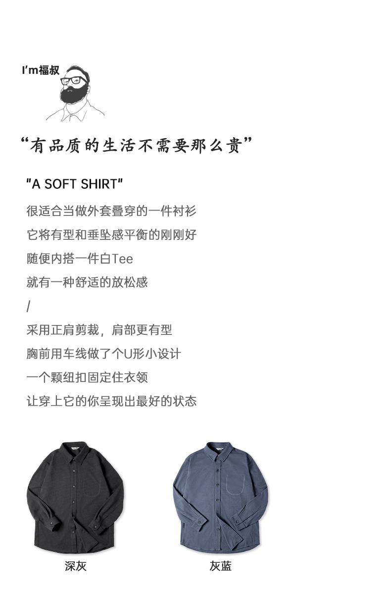 工装优选 美式休闲星空纹纯色翻领衬衫正肩叠穿长袖衬衣外套男秋