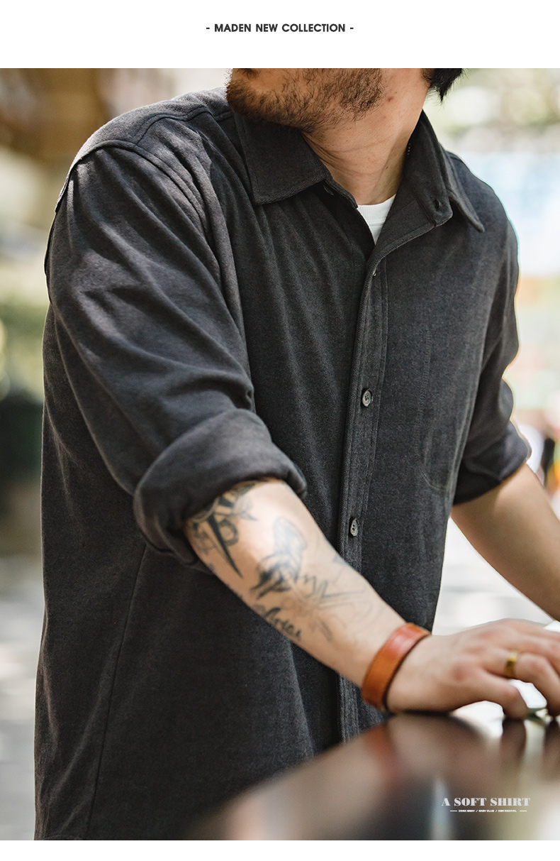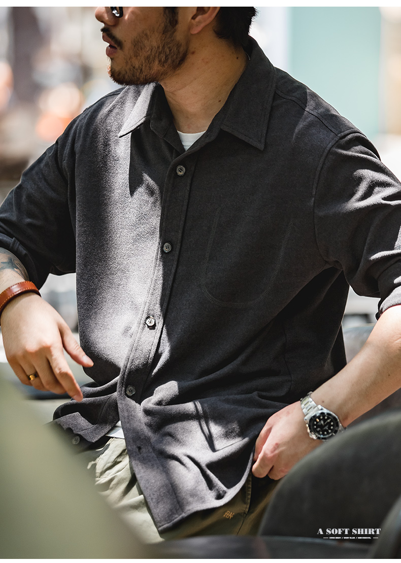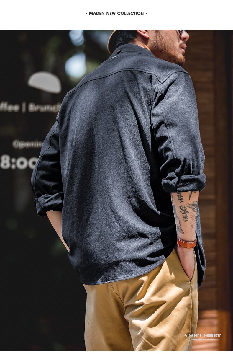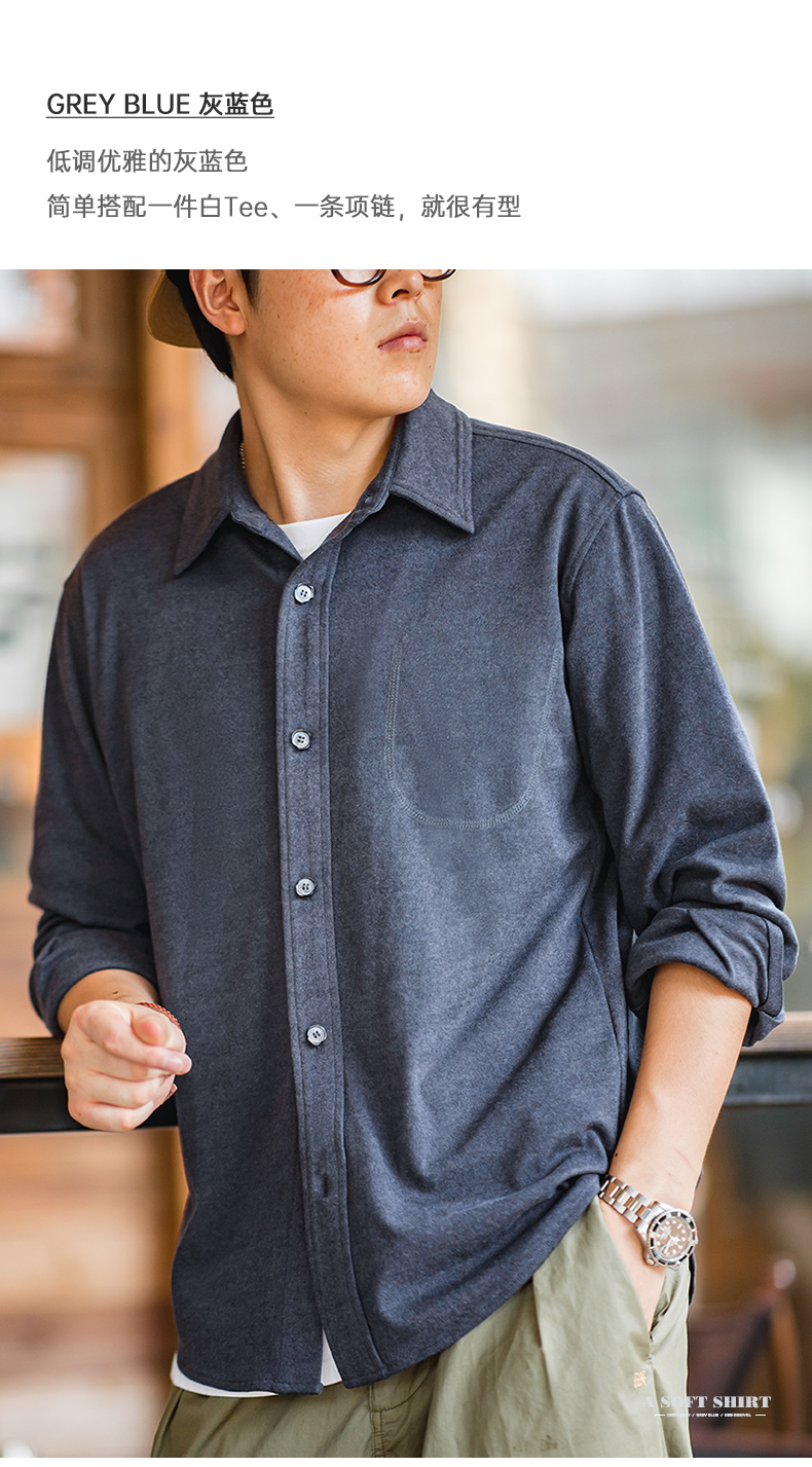 工装优选 美式休闲星空纹纯色翻领衬衫正肩叠穿长袖衬衣外套男秋