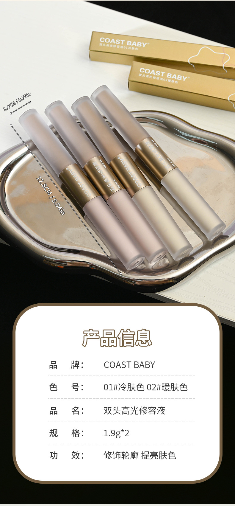 COASTBABY双头高光修容液防水不易晕染遮瑕不脱妆小脸修容棒新手 1支