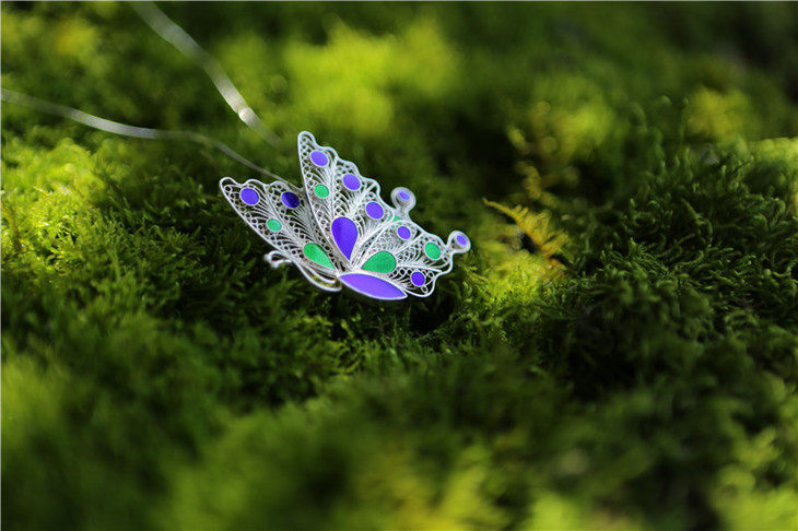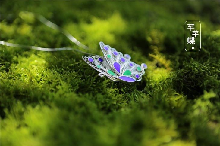 名称:珐琅拉丝银吊坠/不含链—芊芊蝶