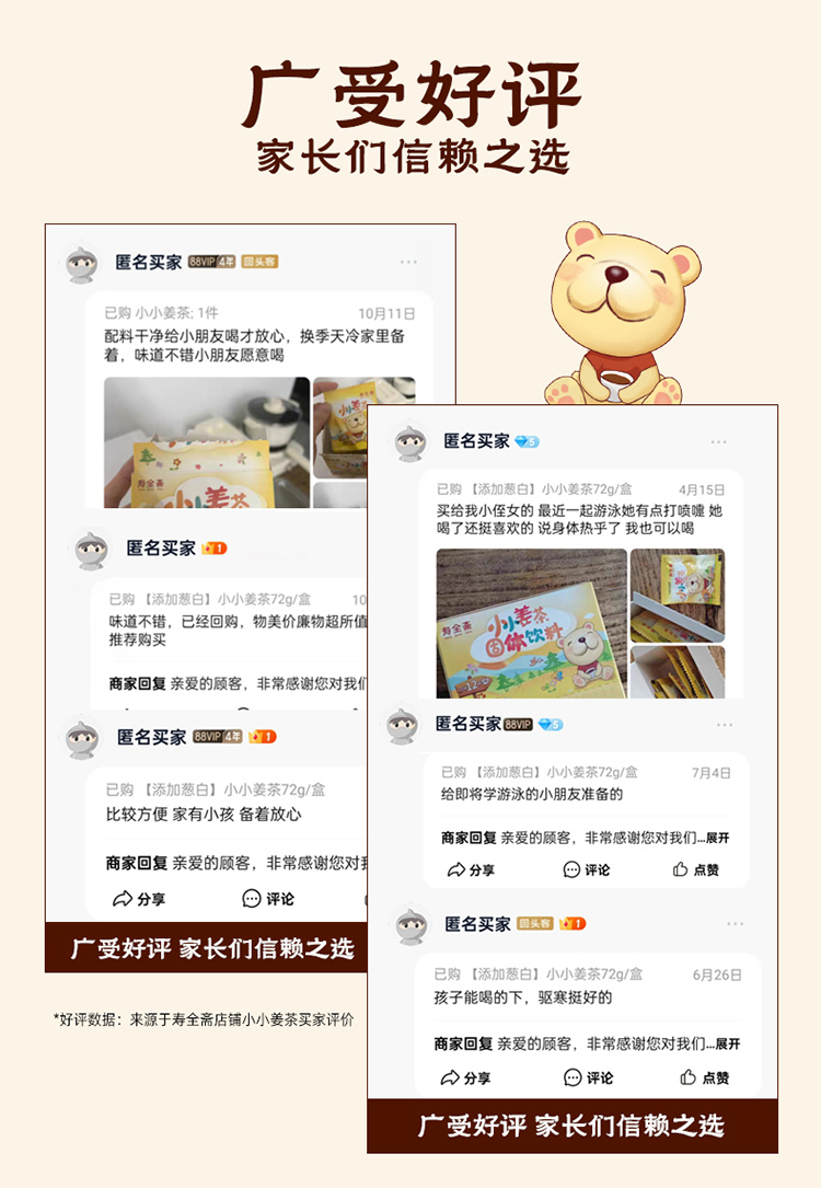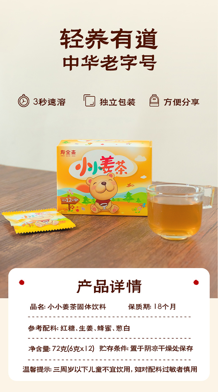 【寿全斋】小小姜茶儿童可以喝红糖生姜蜂蜜葱白速溶姜汤72g