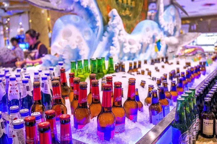 更有1664、百威、和依云矿泉水随便喝。