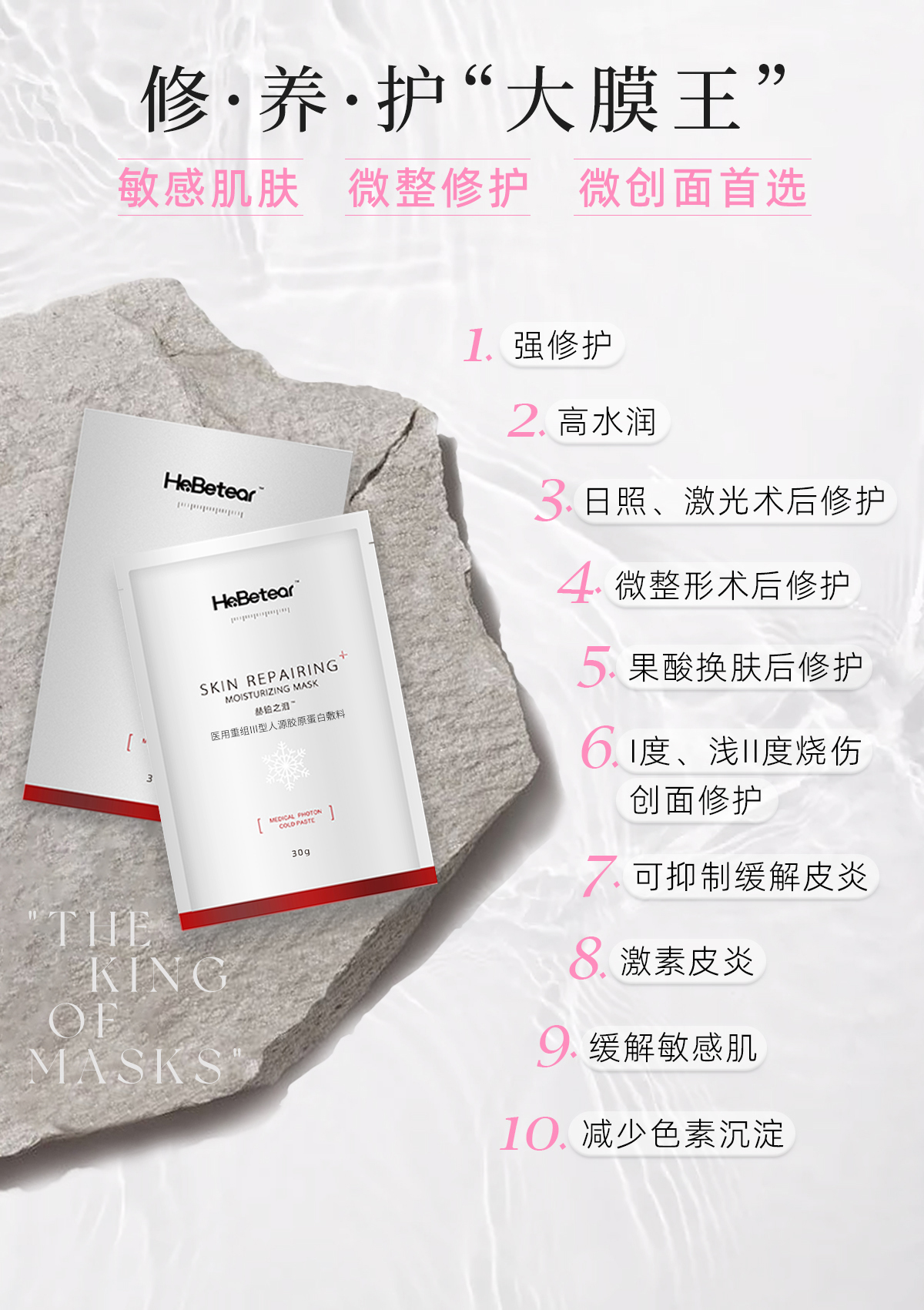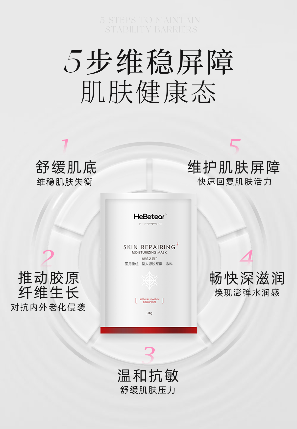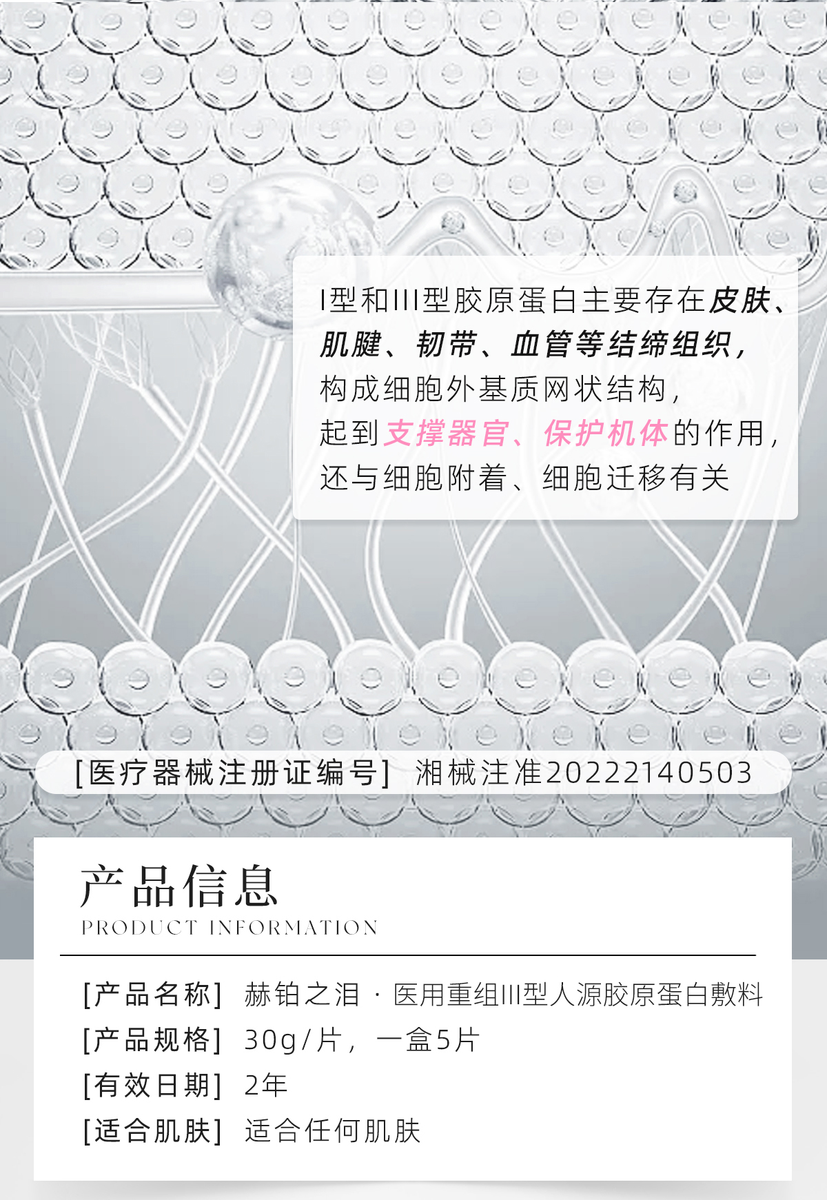 赫铂之泪/HeBetear 重组Ⅲ型胶原蛋白敷料面膜5片/盒 商品图2
