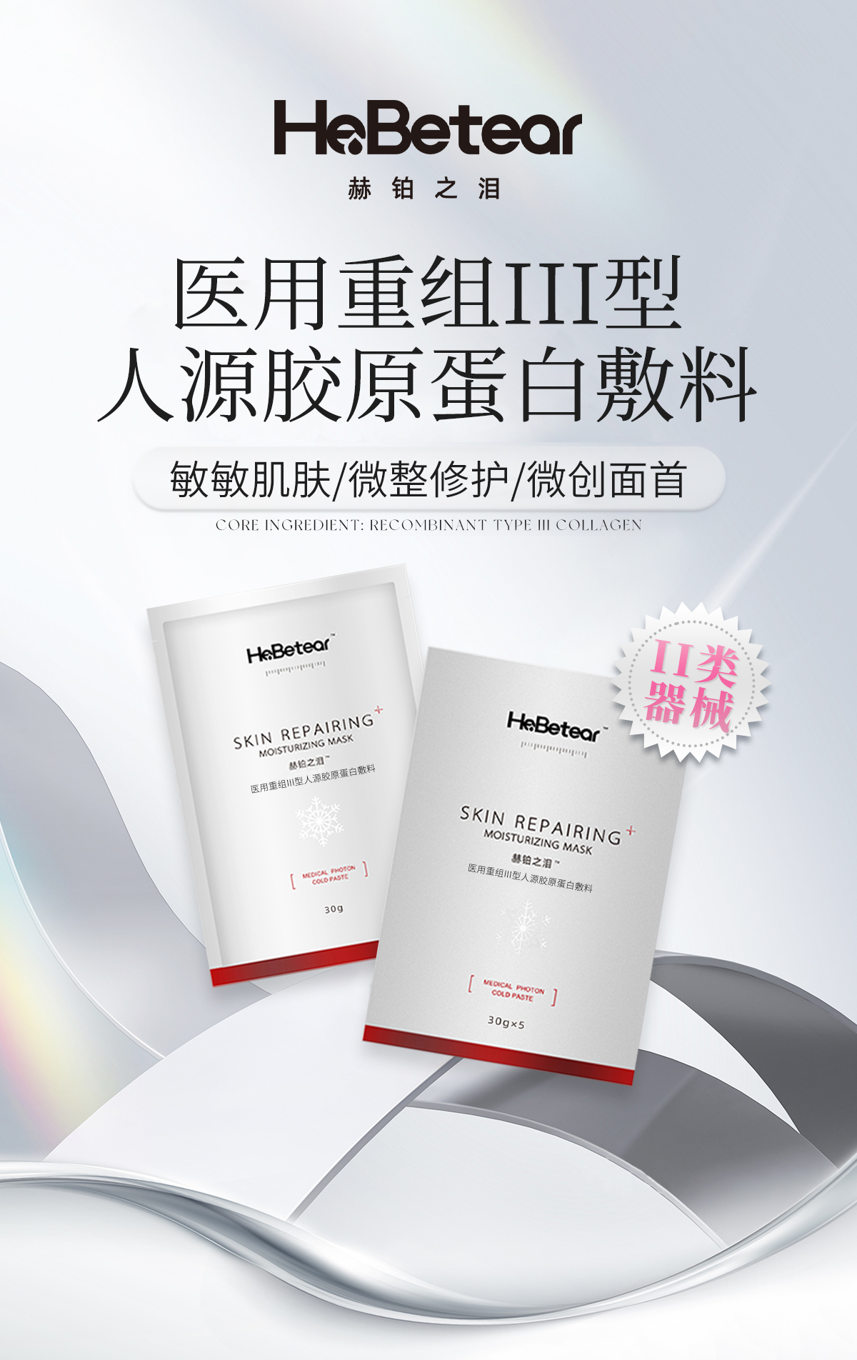 赫铂之泪/HeBetear 重组Ⅲ型胶原蛋白敷料面膜5片/盒 商品图0