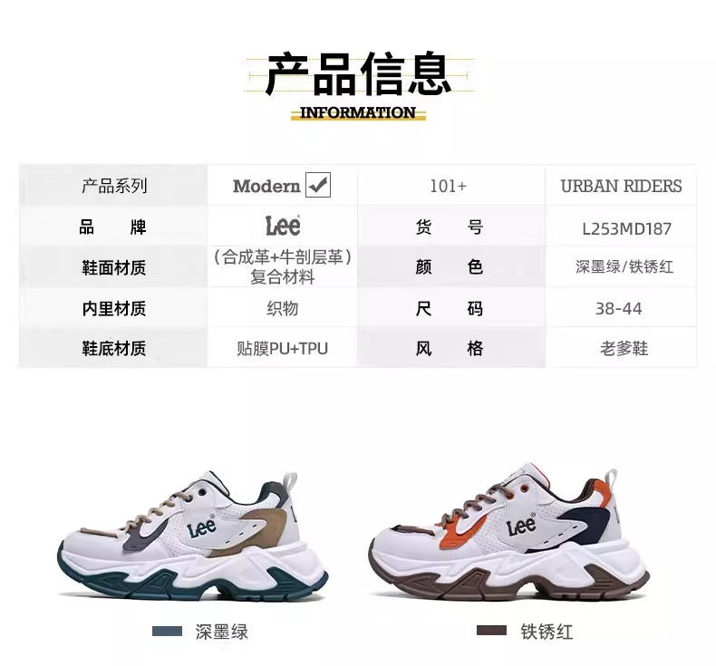 品牌直发【老爹鞋系列/百年品牌Lee 清仓特惠】透气轻便百搭潮流运动鞋