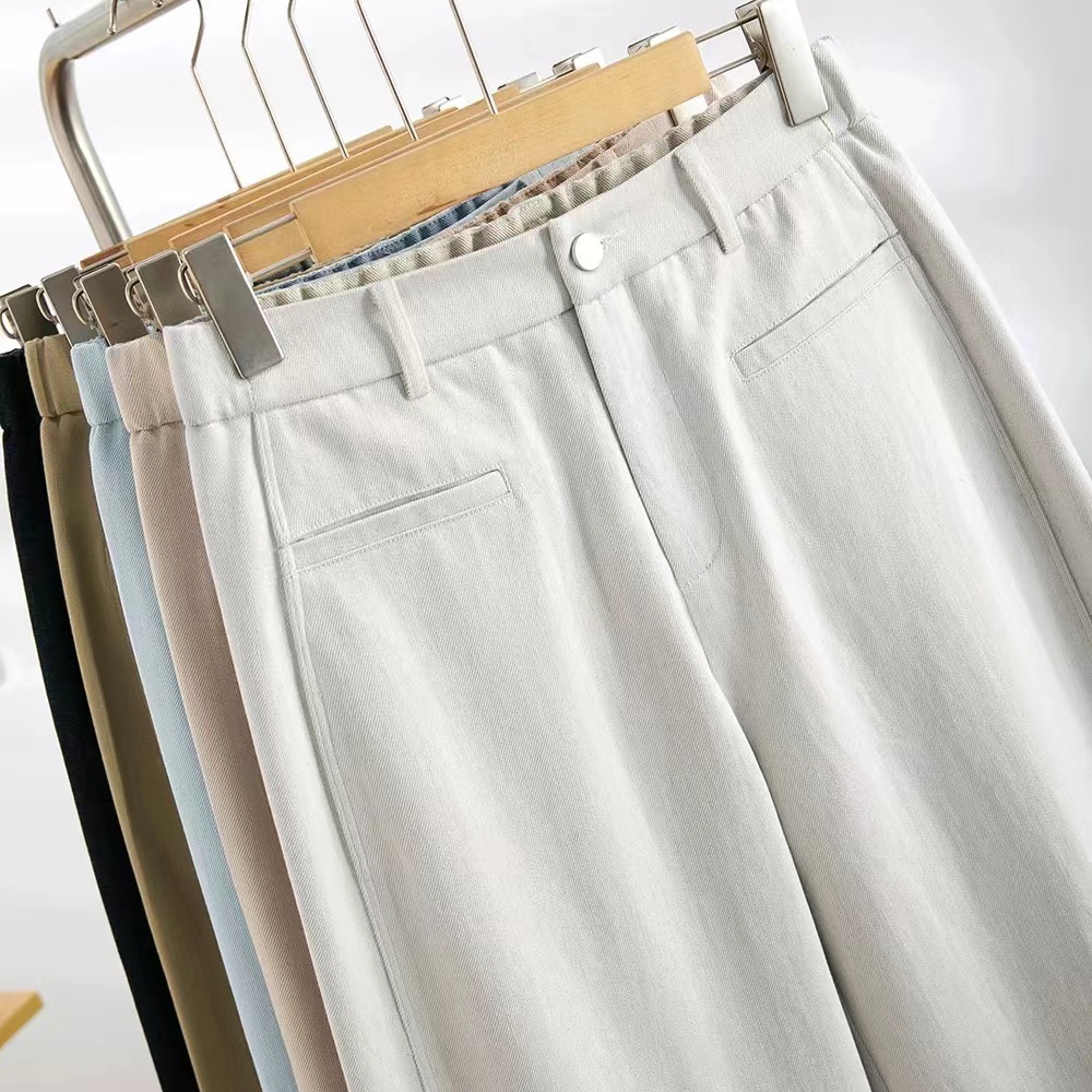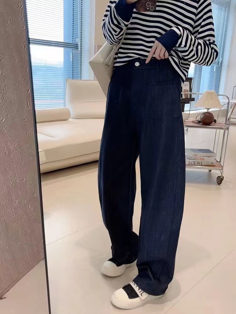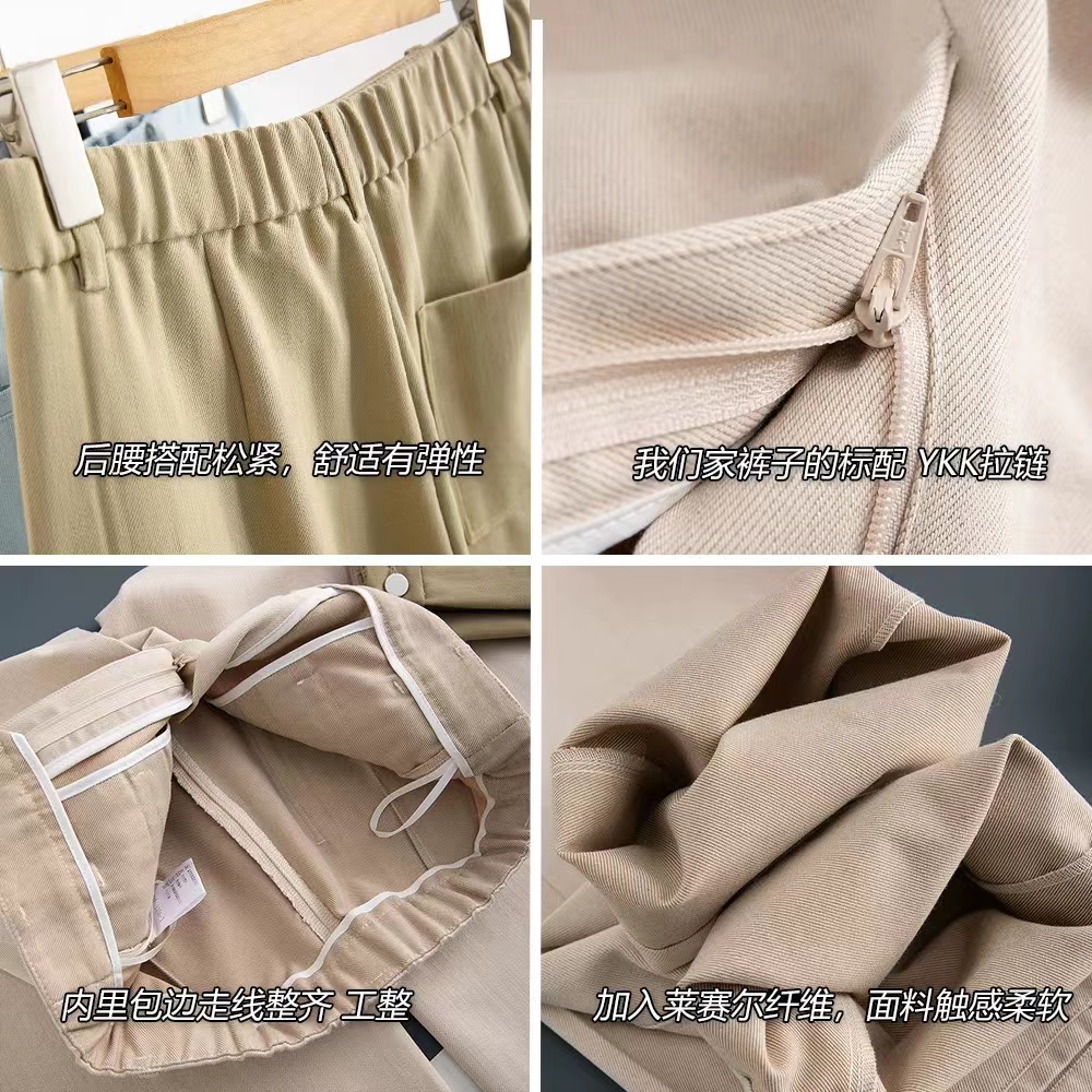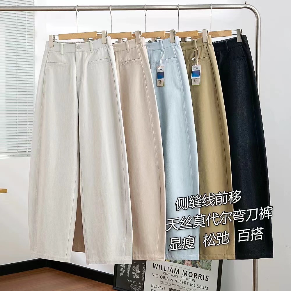 天丝莫代尔棉柔软高腰显瘦牛仔裤后松紧腰阔腿香蕉裤,环保可持续,天丝和莫代尔均源自可再生木材,生产过程环保,符合可持续时尚趋势,天丝和莫代尔纤维细腻,穿着舒适具有良好的垂坠性,使牛仔裤更贴合身形提升穿着效果,抗皱易打理天丝和莫代尔纤维弹性好,抗皱性强减少熨烫需求色泽鲜艳,纤维上色性好牛仔裤颜色鲜艳且不易褪色,保持长久美观天丝和莫代尔纤维强度高,耐穿且不易变形