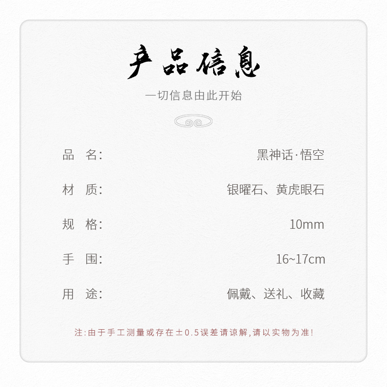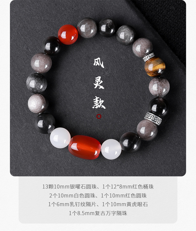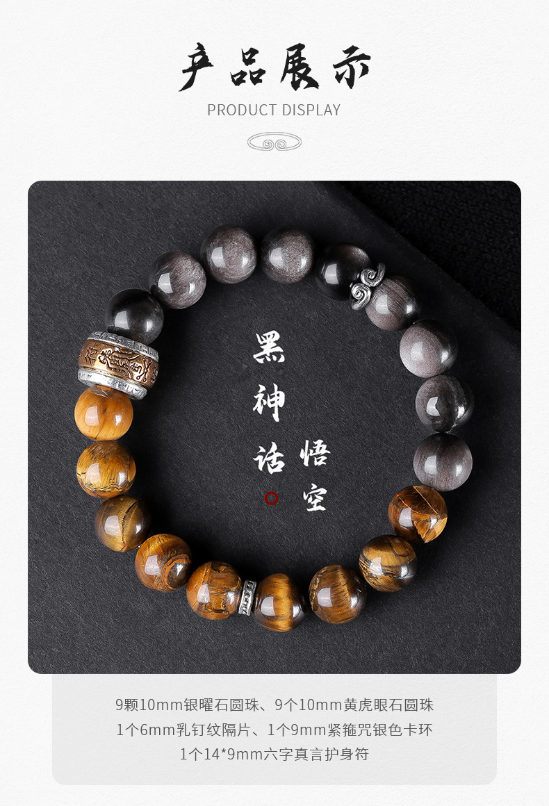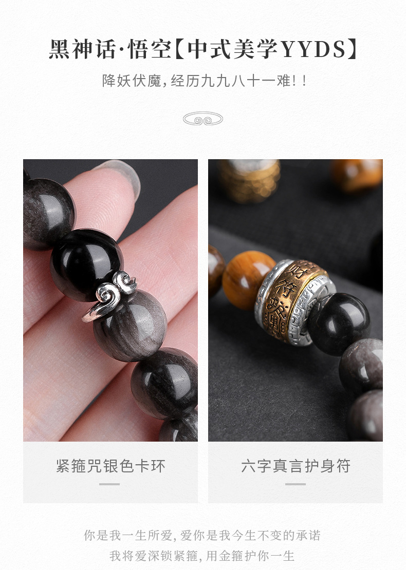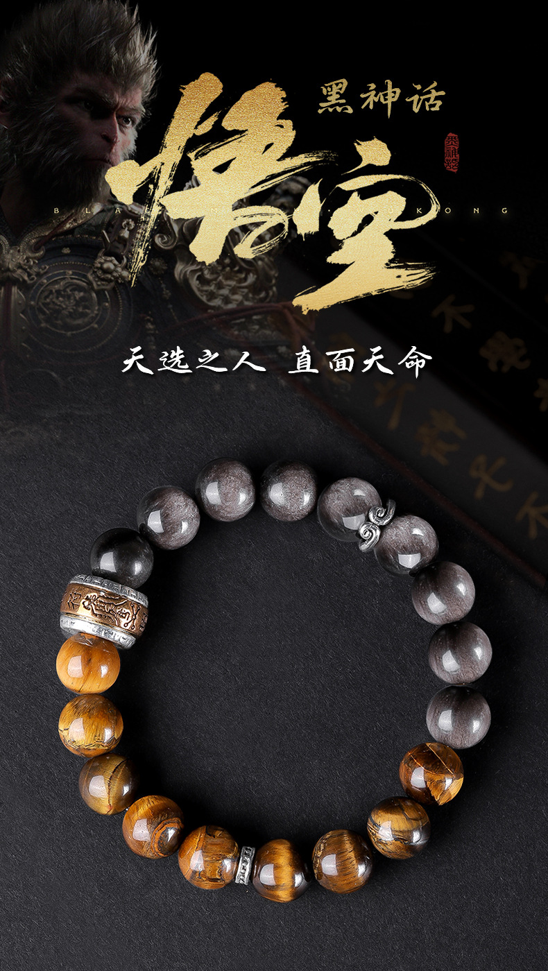 【黑神话·悟空】同款银曜石手链 男女款黑曜石
