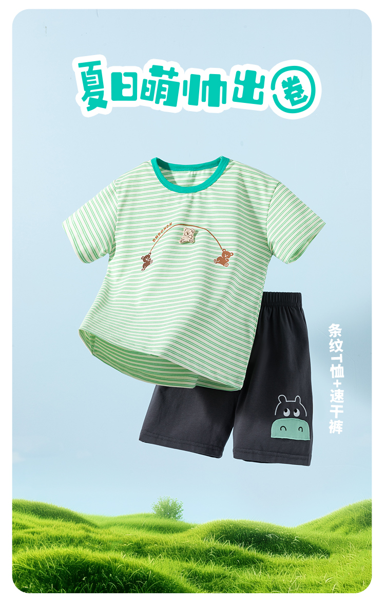 【网眼透气凉感套装】25夏季新款男童冰感T恤短袖宽松短裤套装