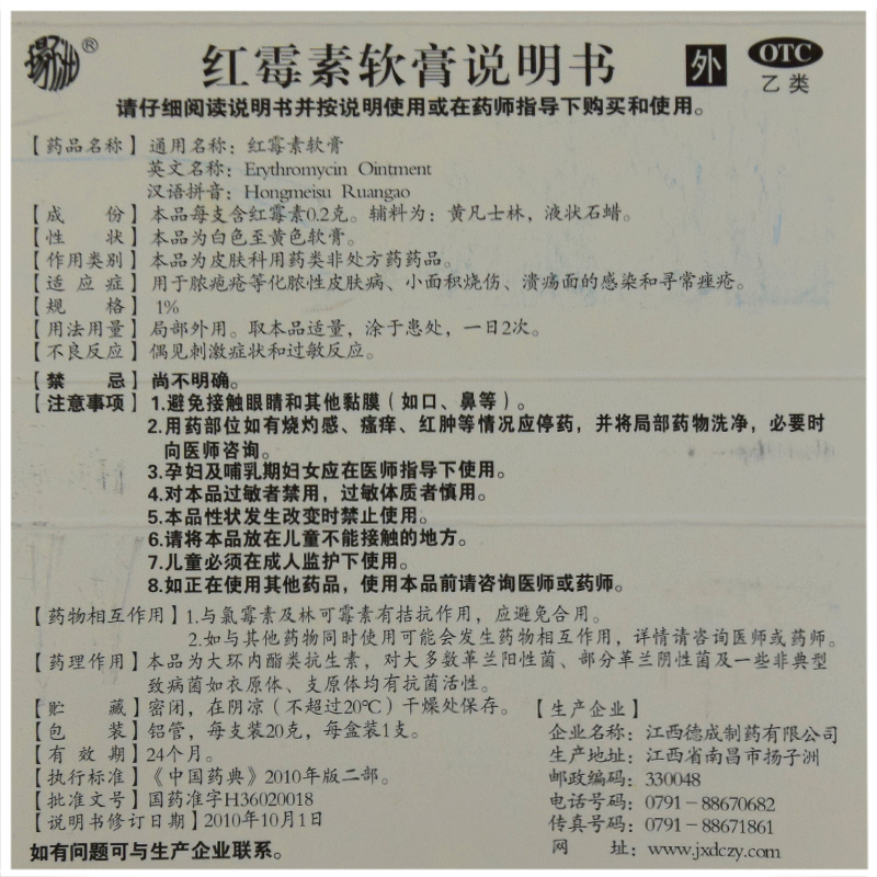 德成 *软膏 20g /盒 用于脓疱疮等化脓性皮肤病及小面积烧伤