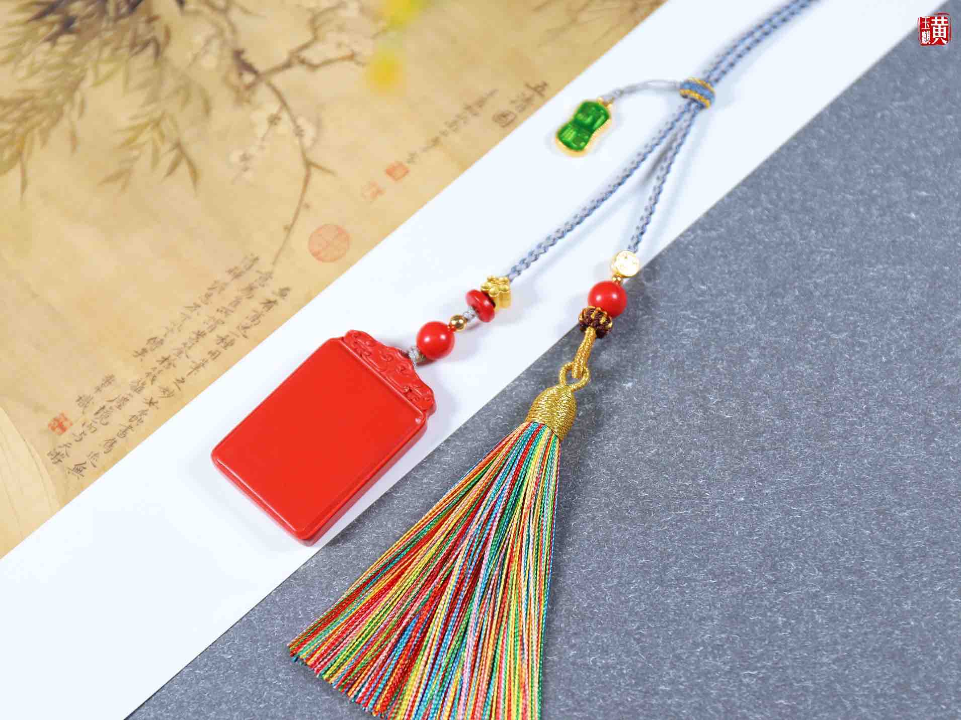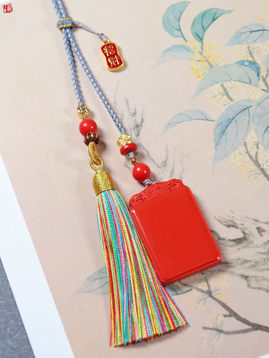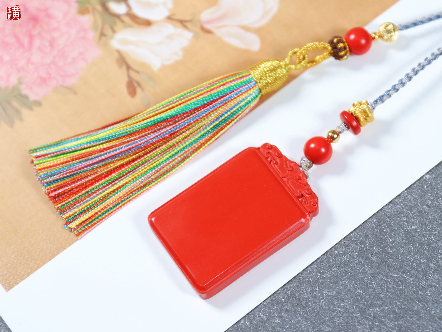 朱砂平安牌尺寸:44.5*28.6*6.4mm
