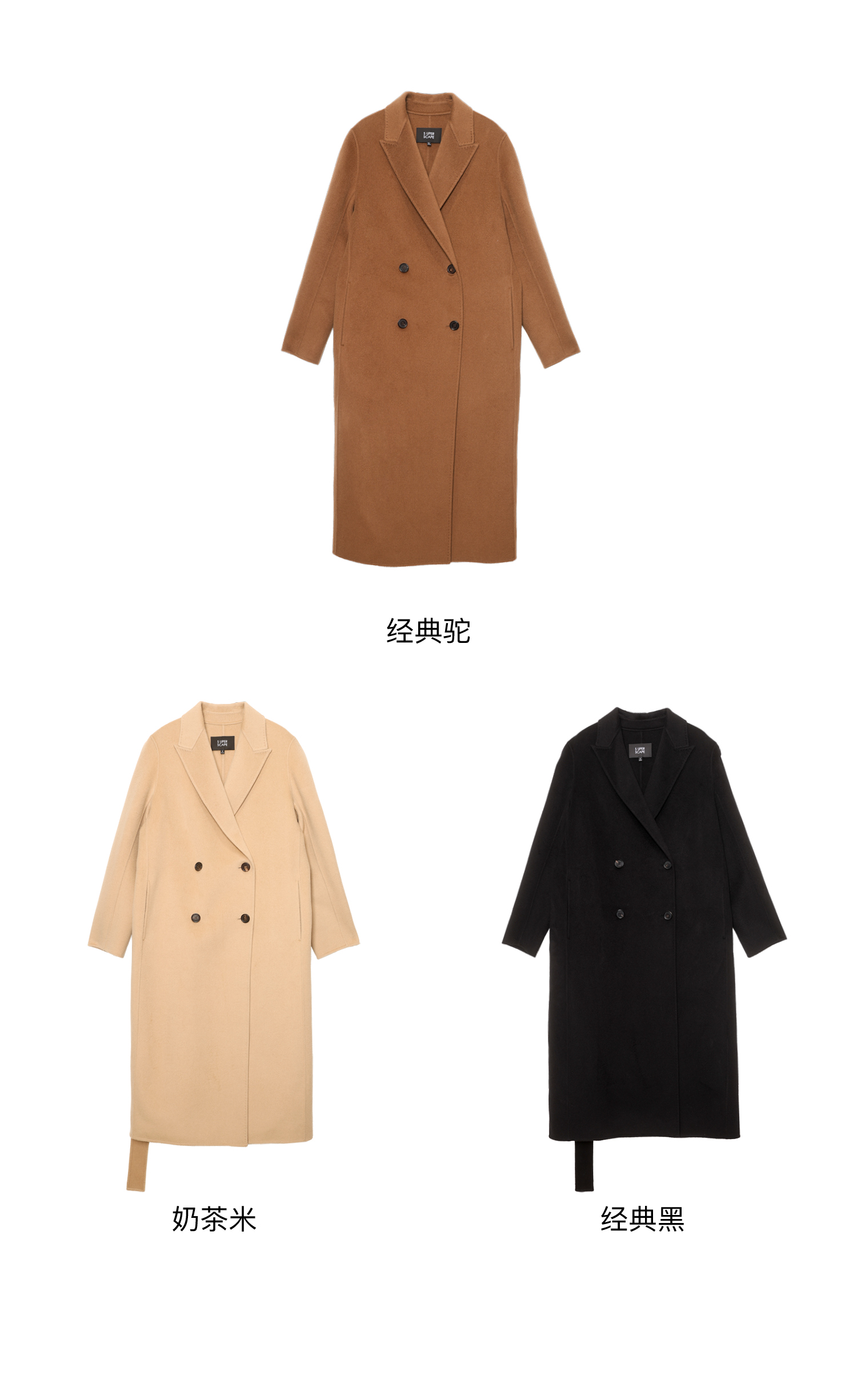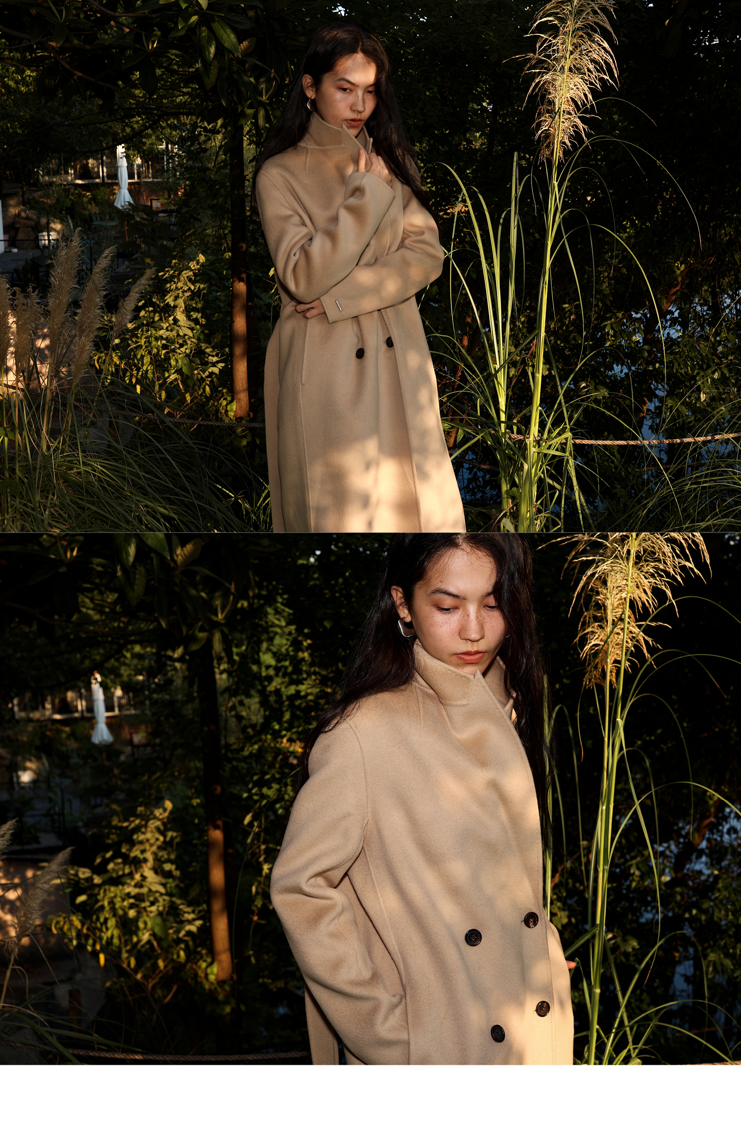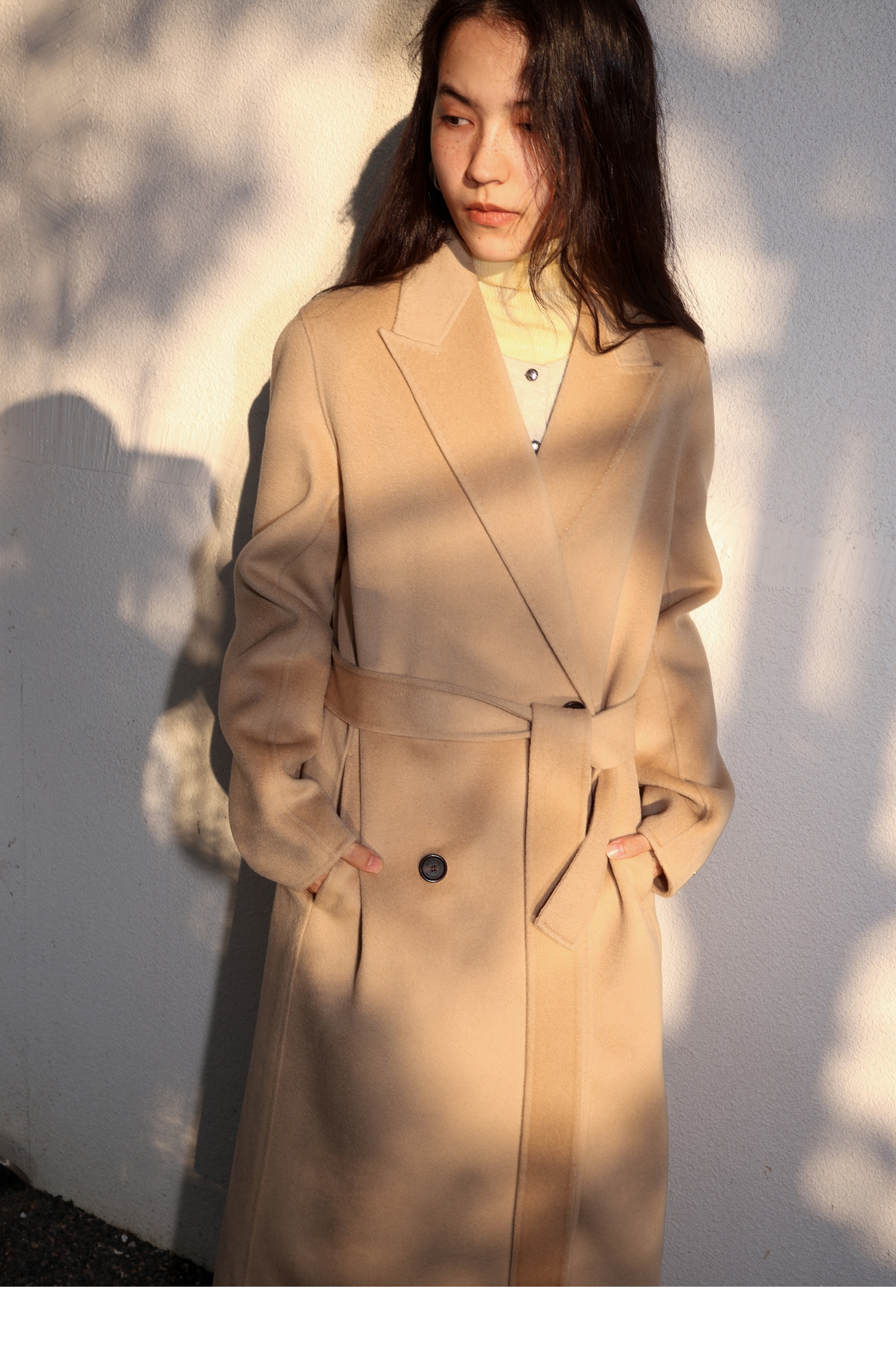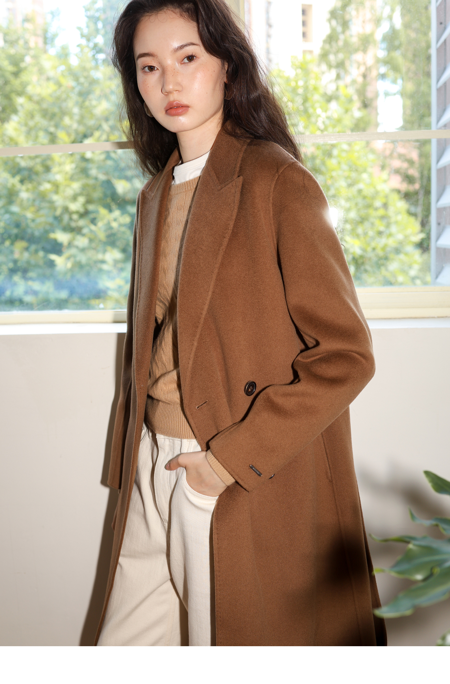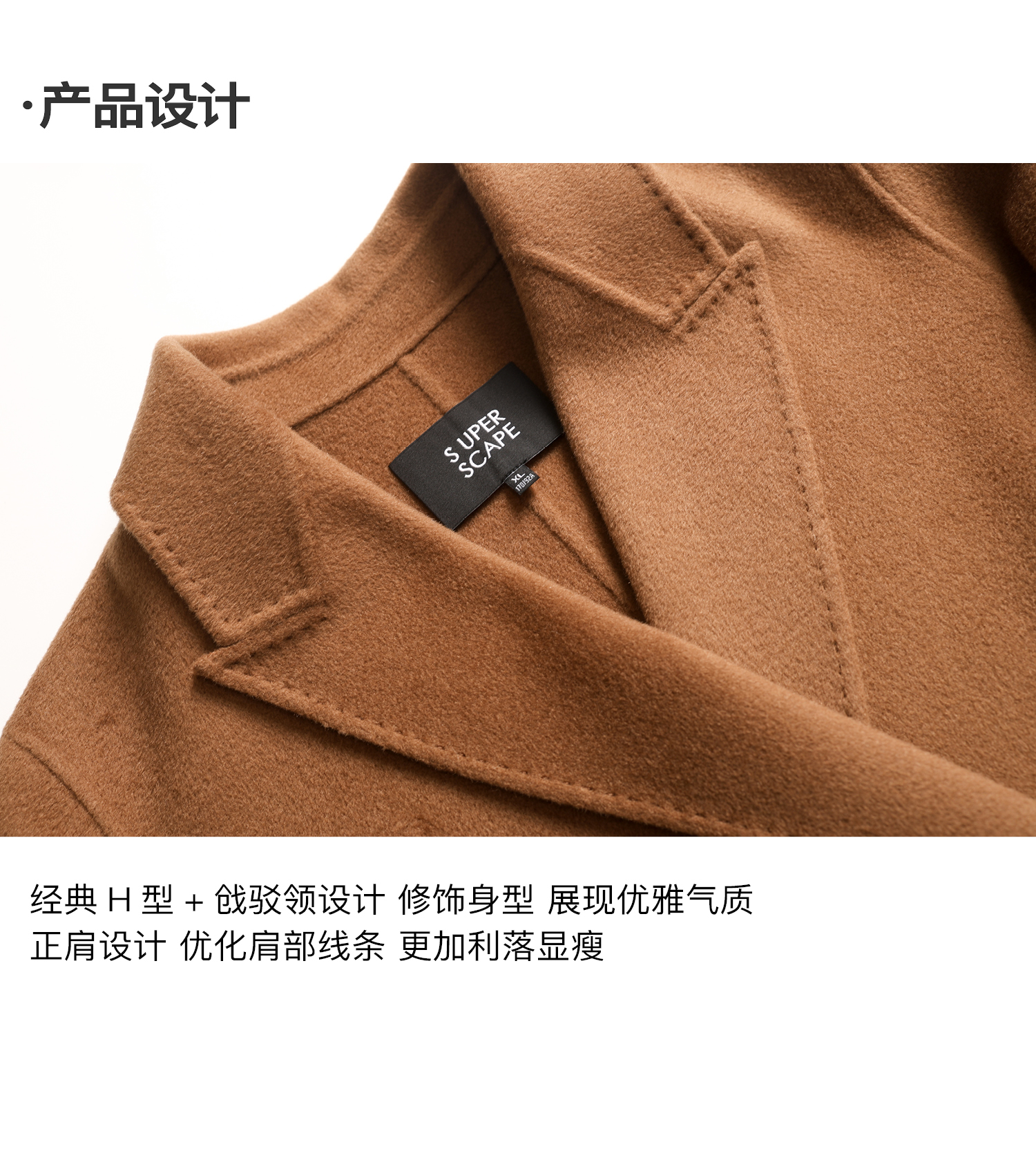 素舶 重磅细支绵羊毛精巧剪裁正肩枪驳领小个子显高双面呢大衣