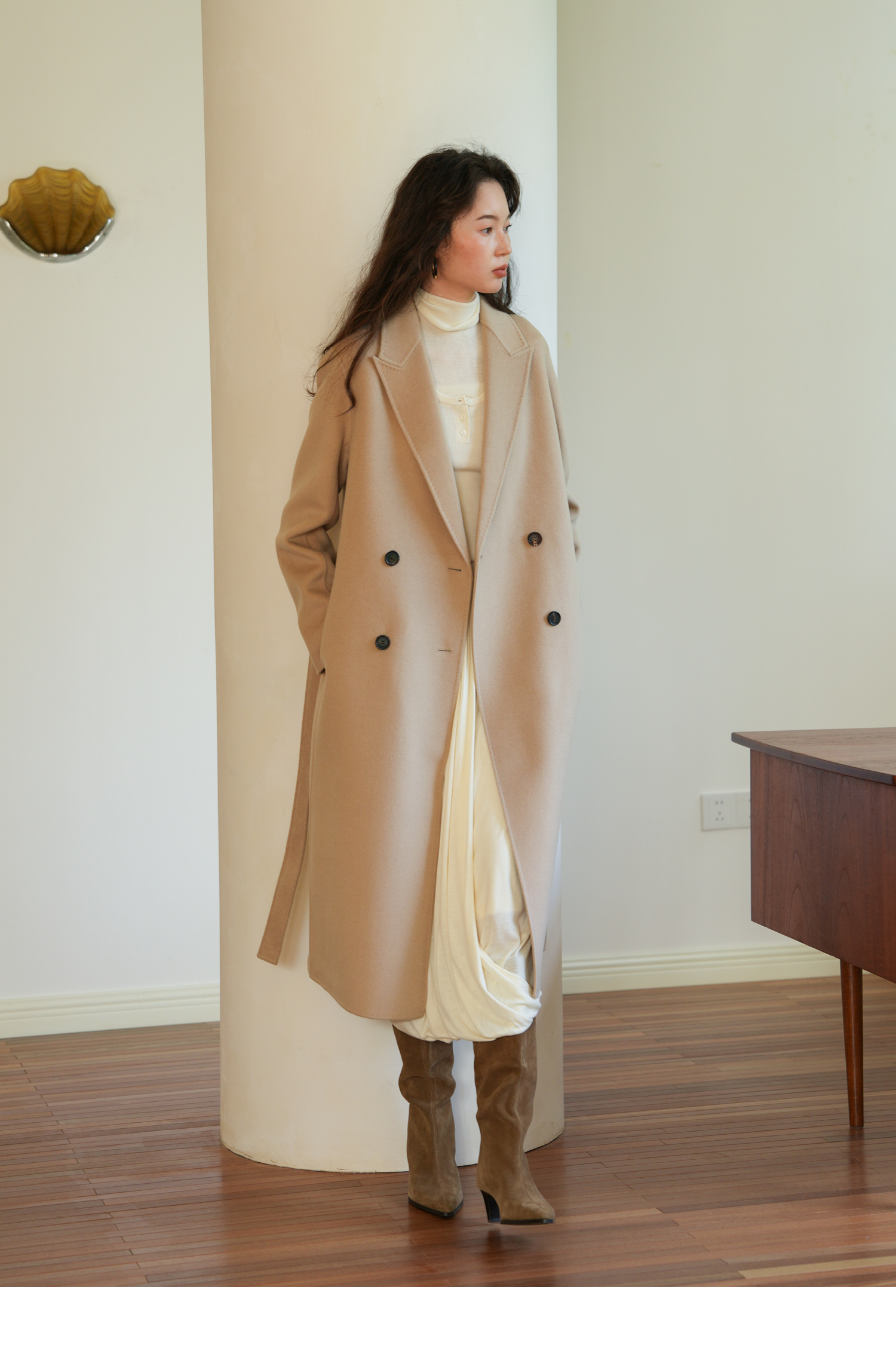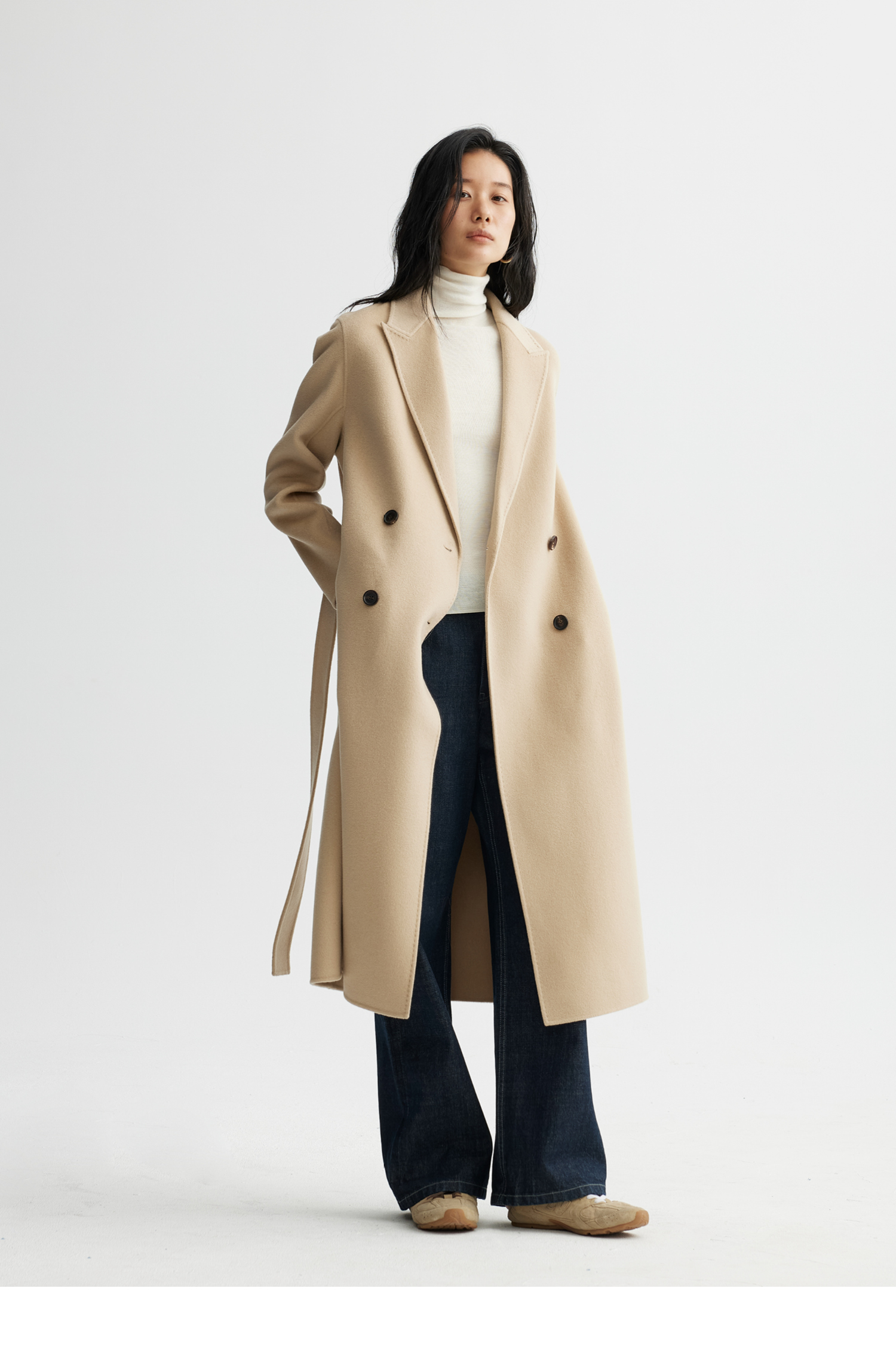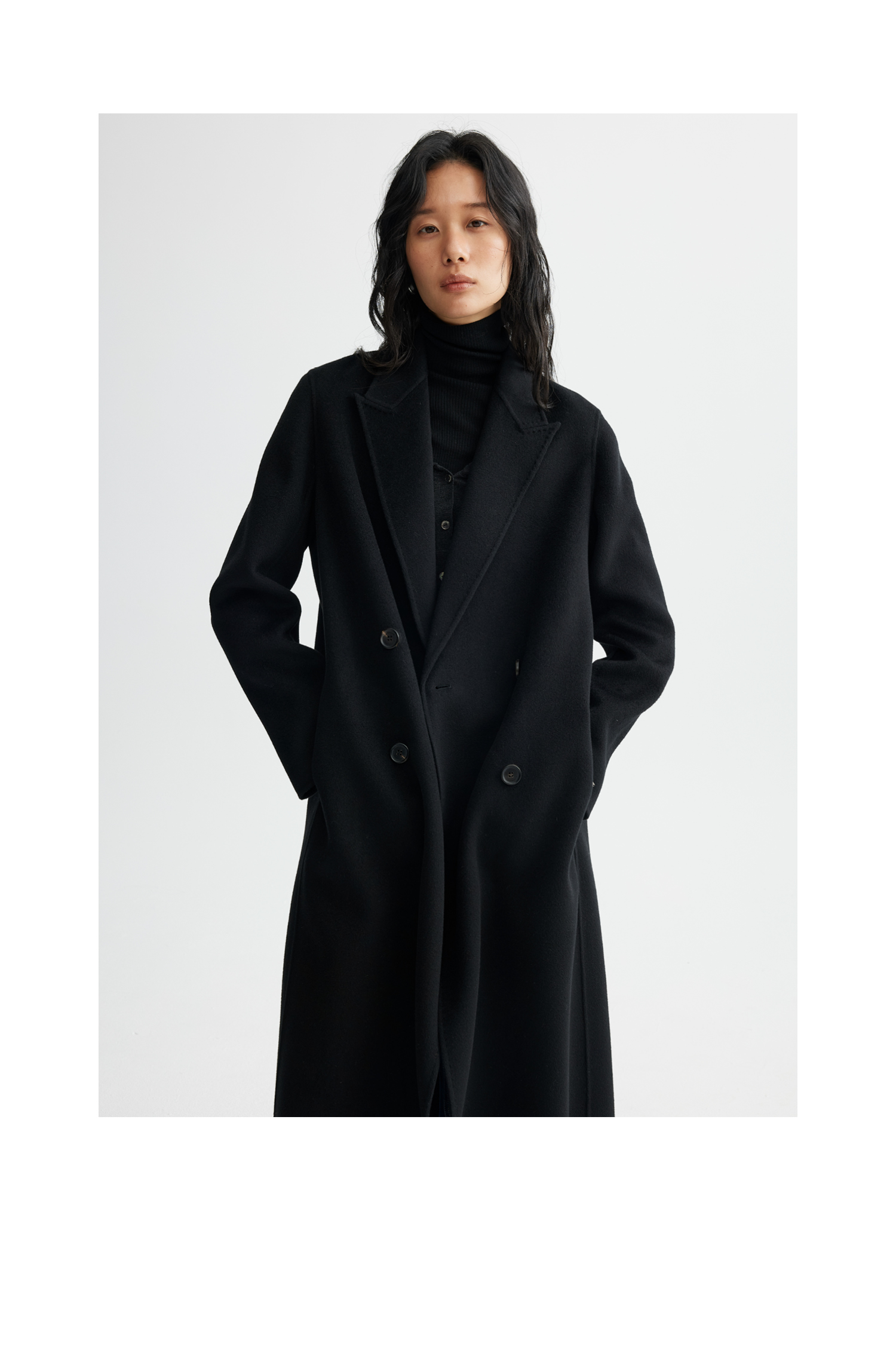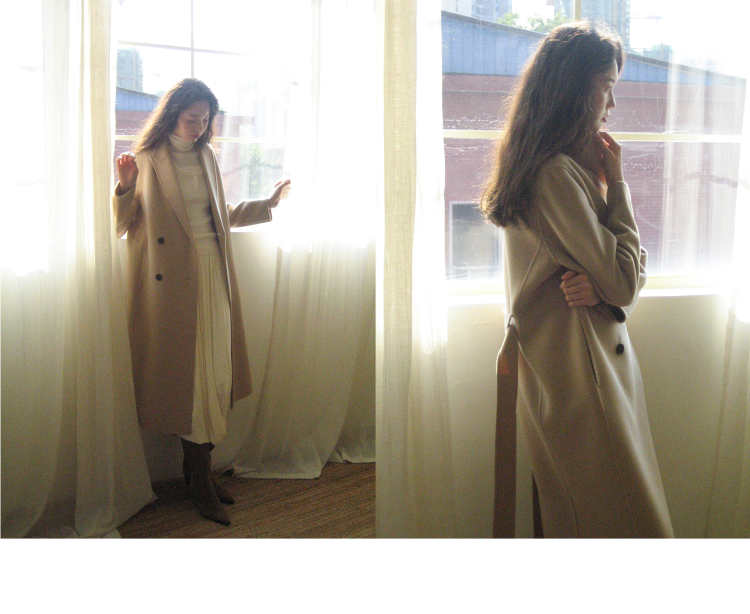 素舶 重磅细支绵羊毛精巧剪裁正肩枪驳领小个子显高双面呢大衣