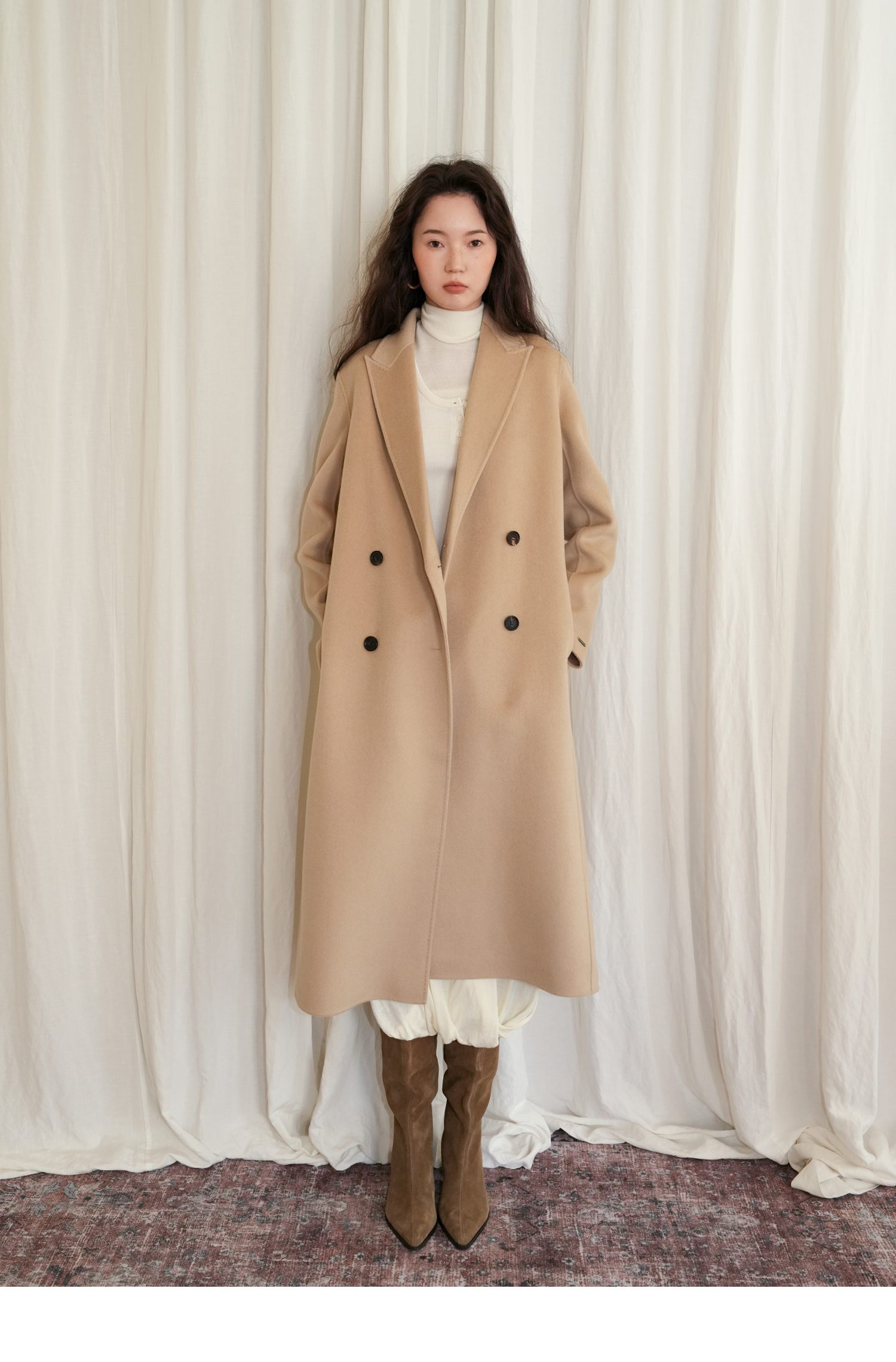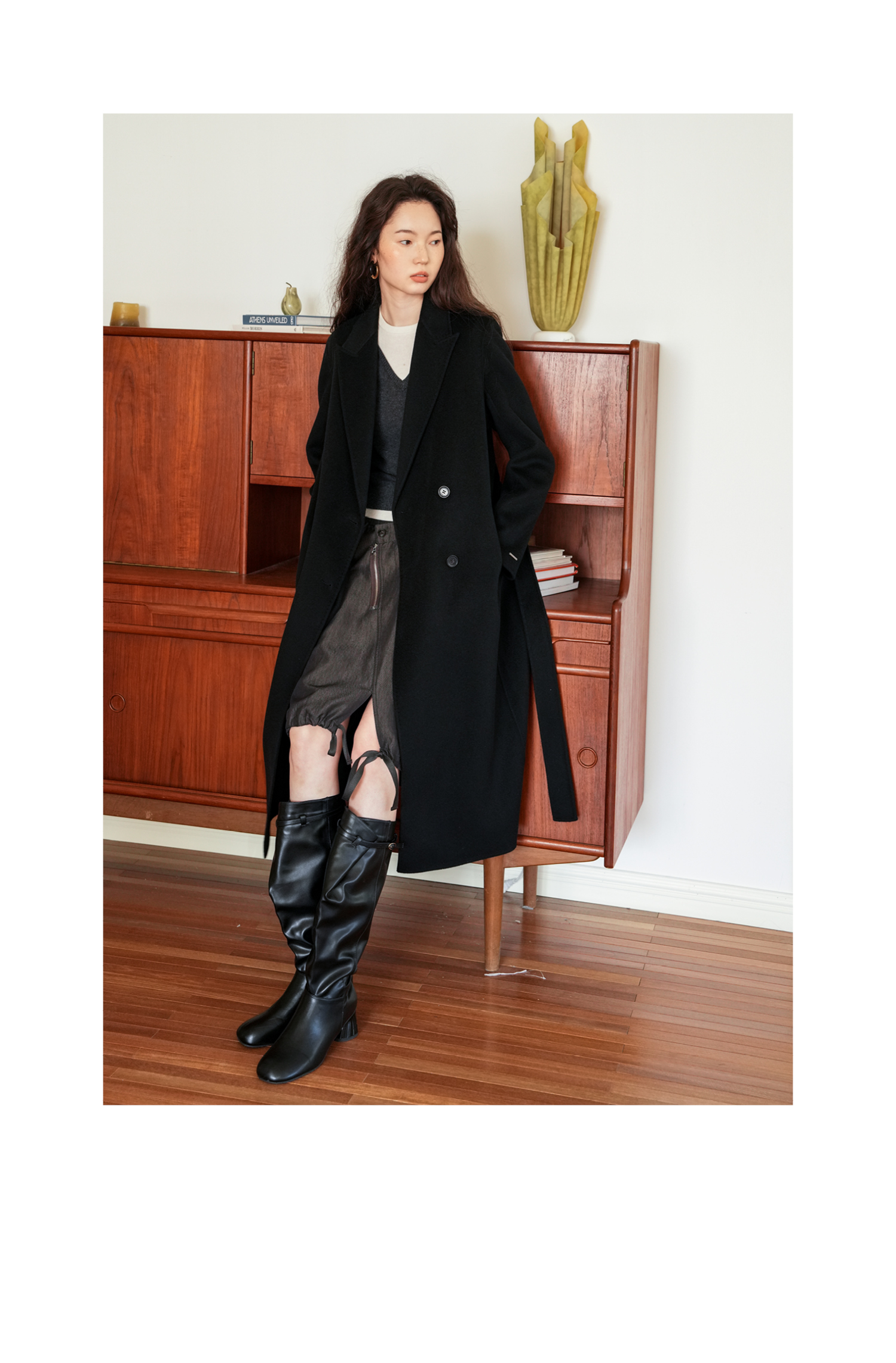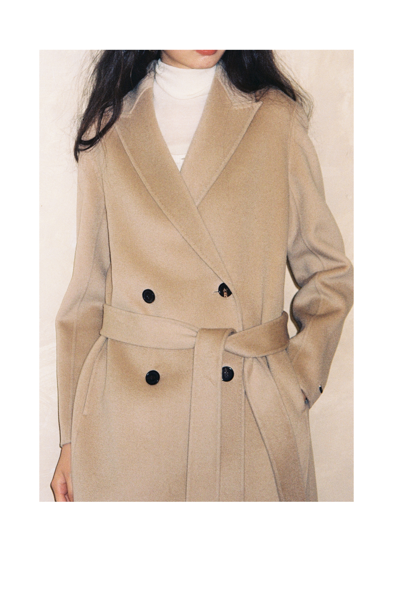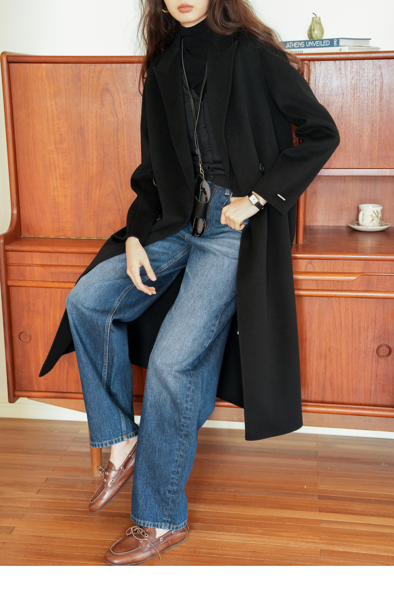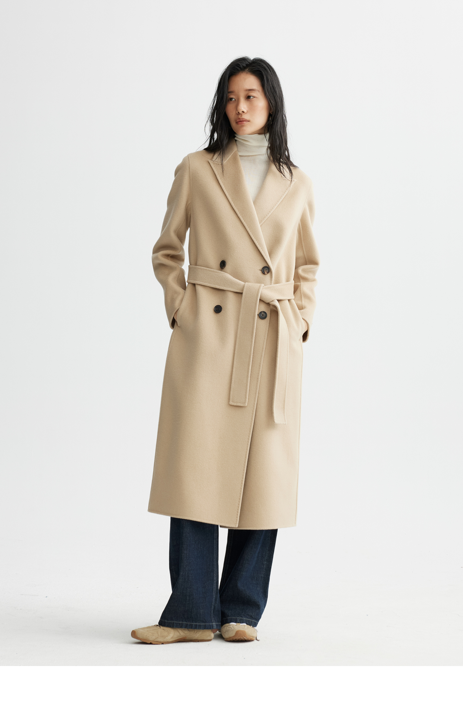 素舶 重磅细支绵羊毛精巧剪裁正肩枪驳领小个子显高双面呢大衣