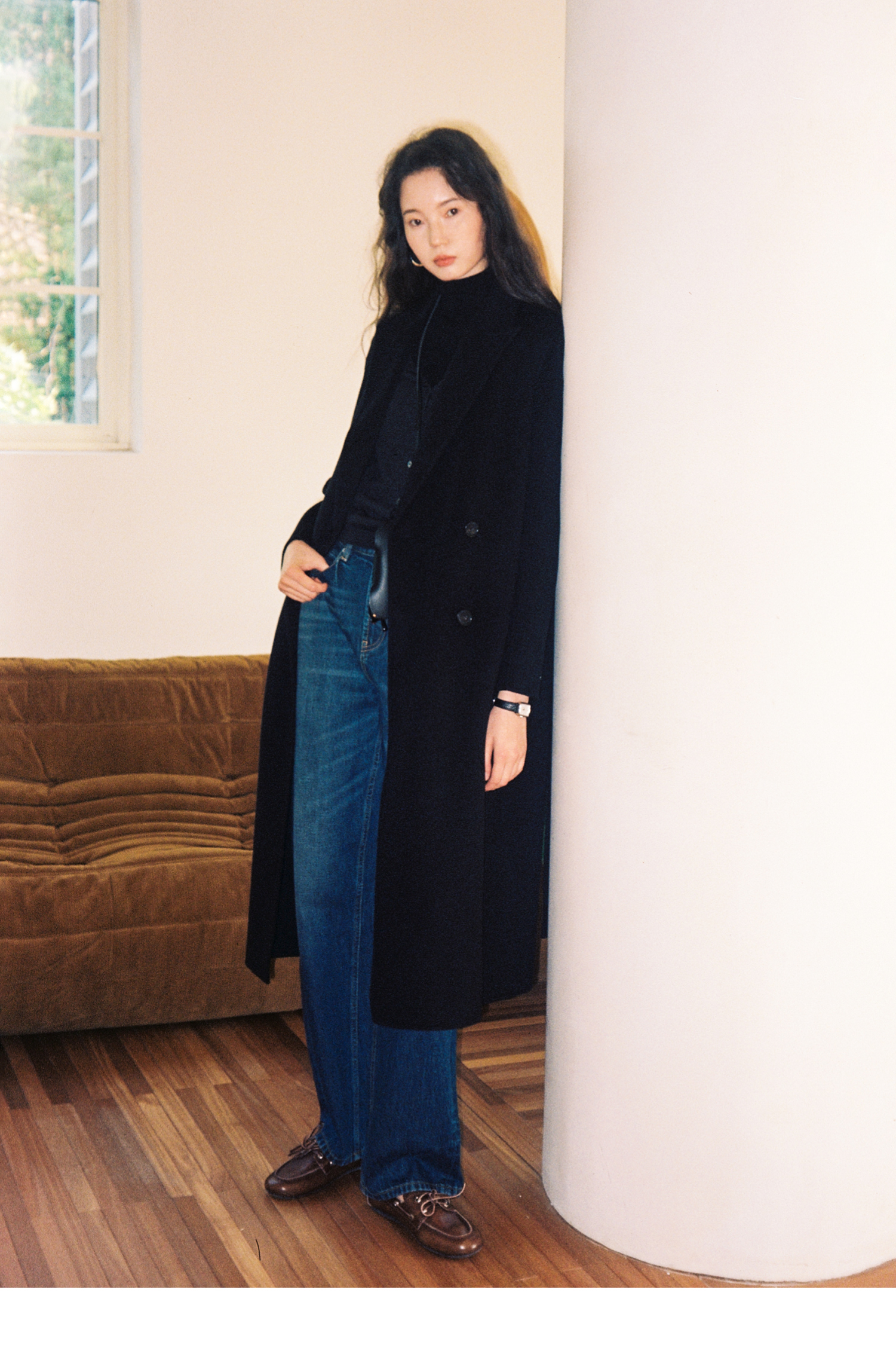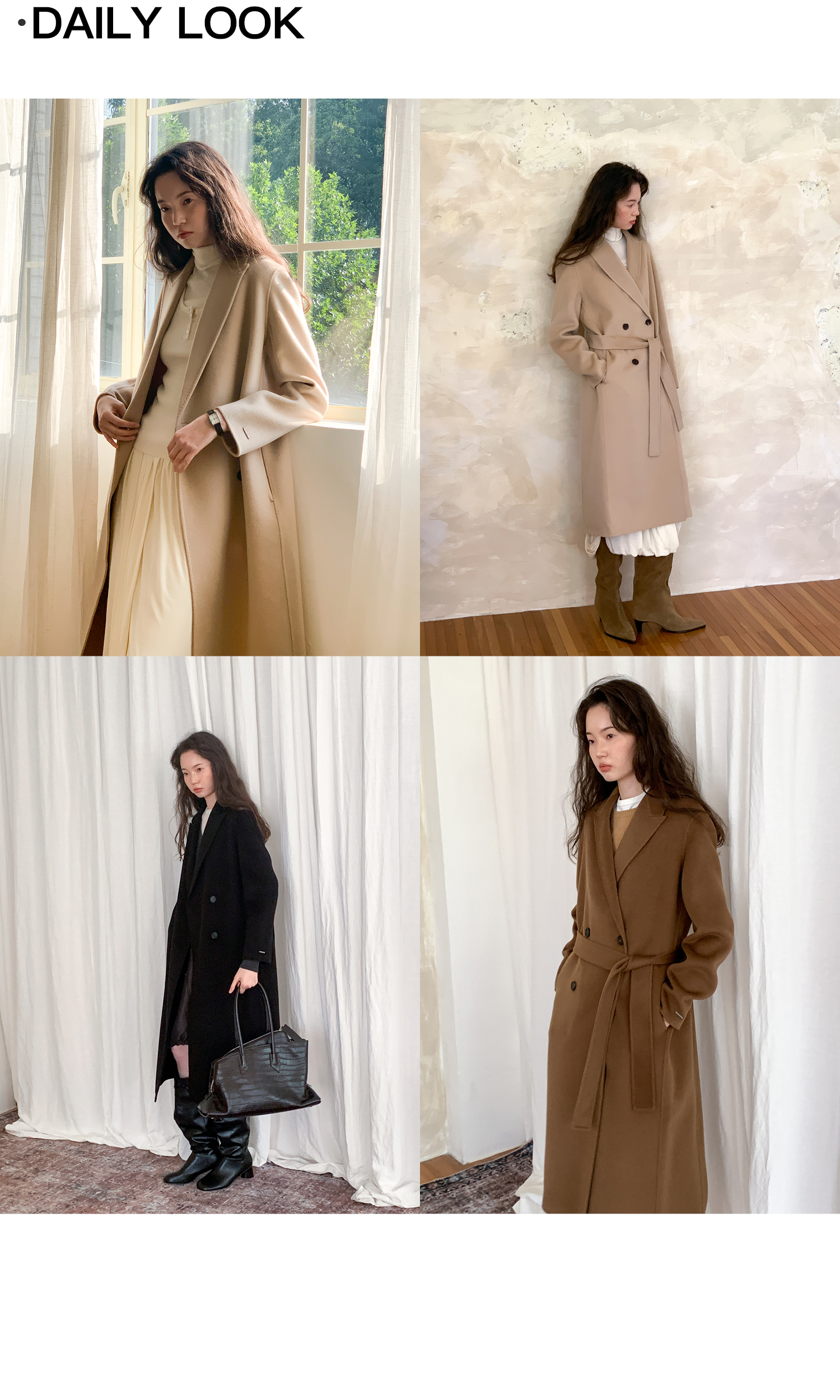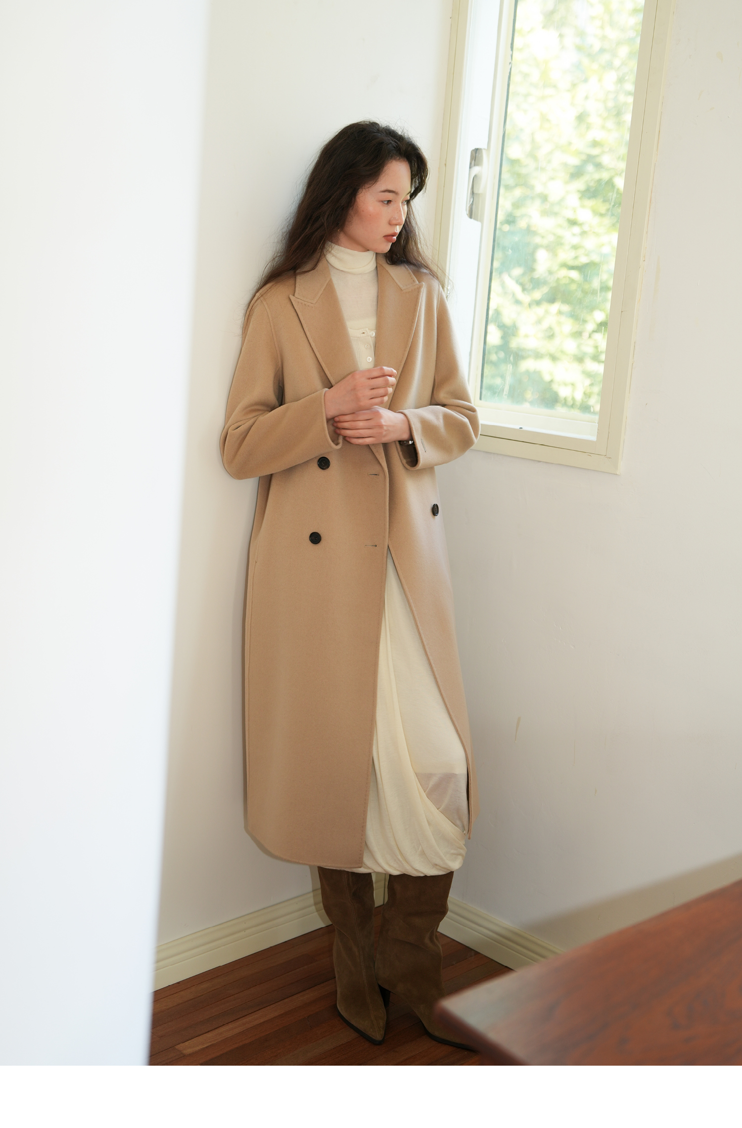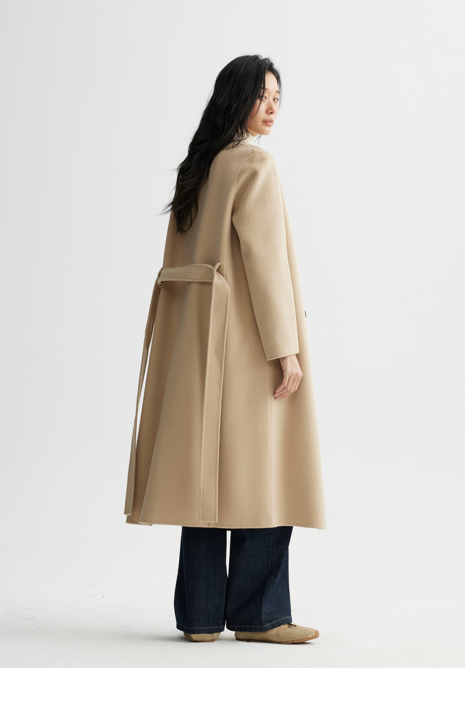 素舶 重磅细支绵羊毛精巧剪裁正肩枪驳领小个子显高双面呢大衣