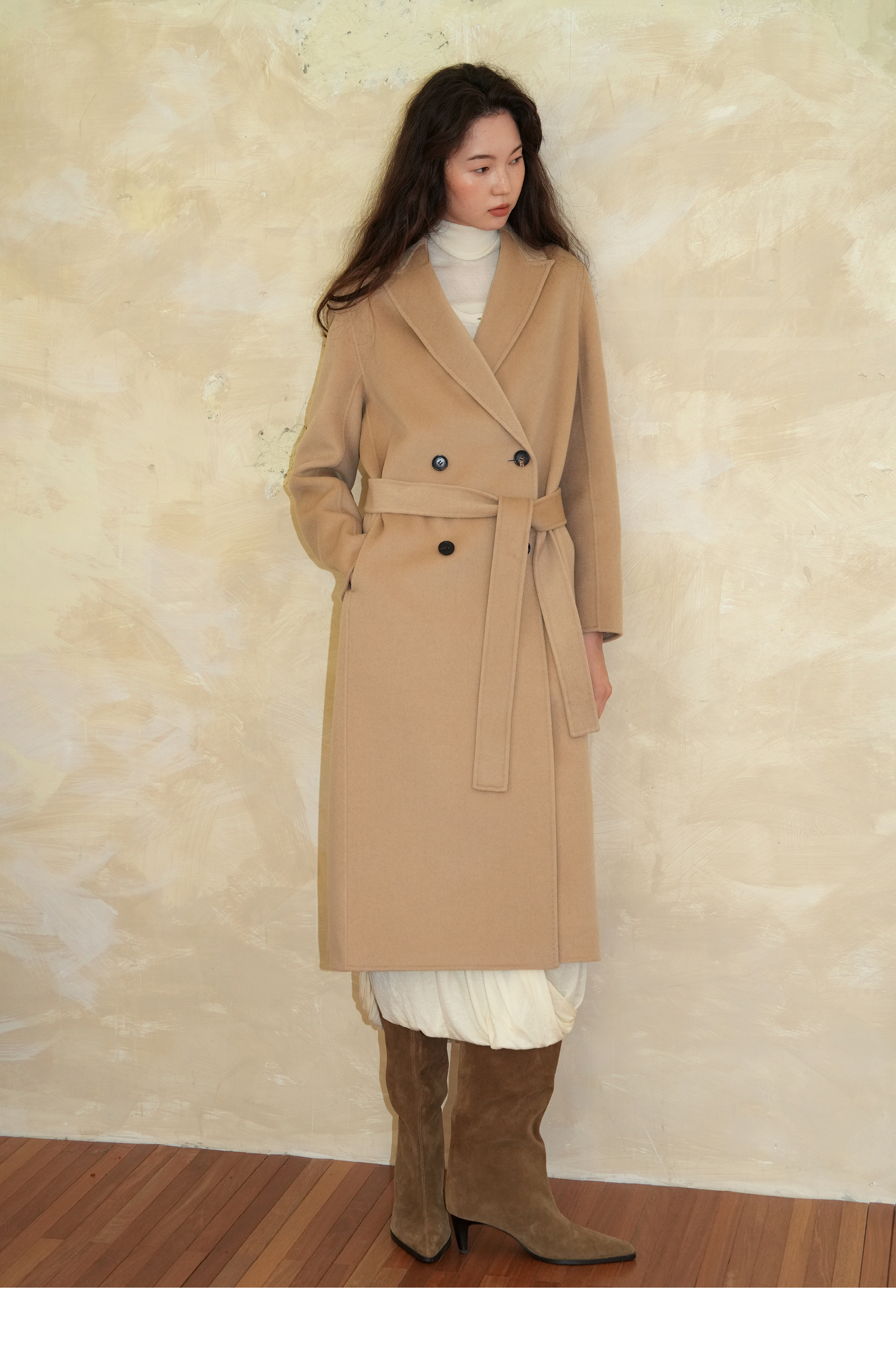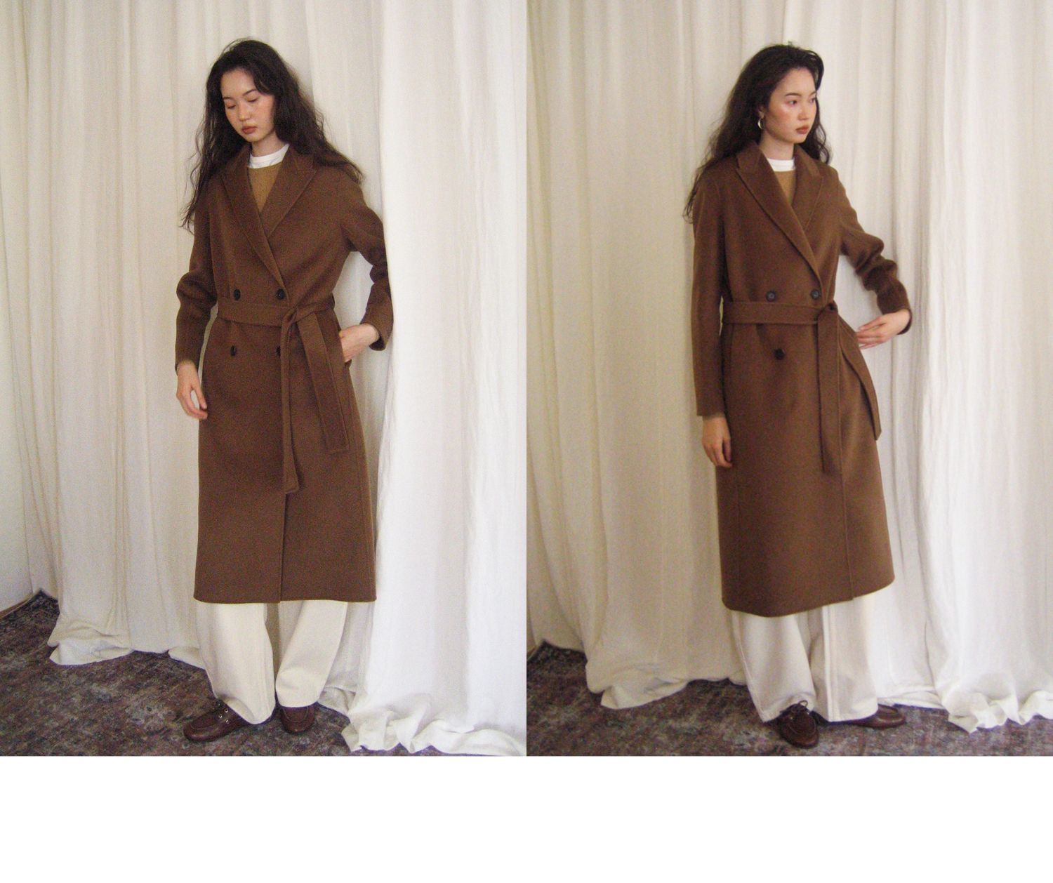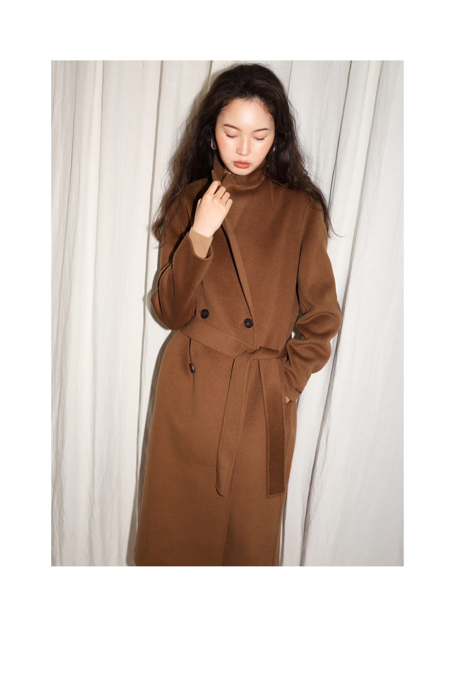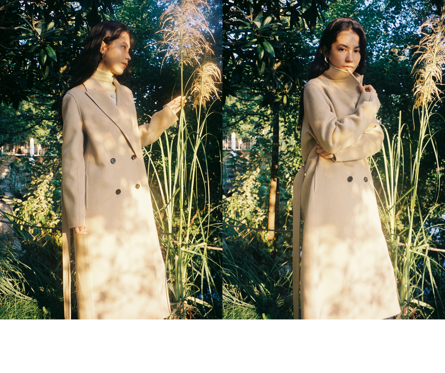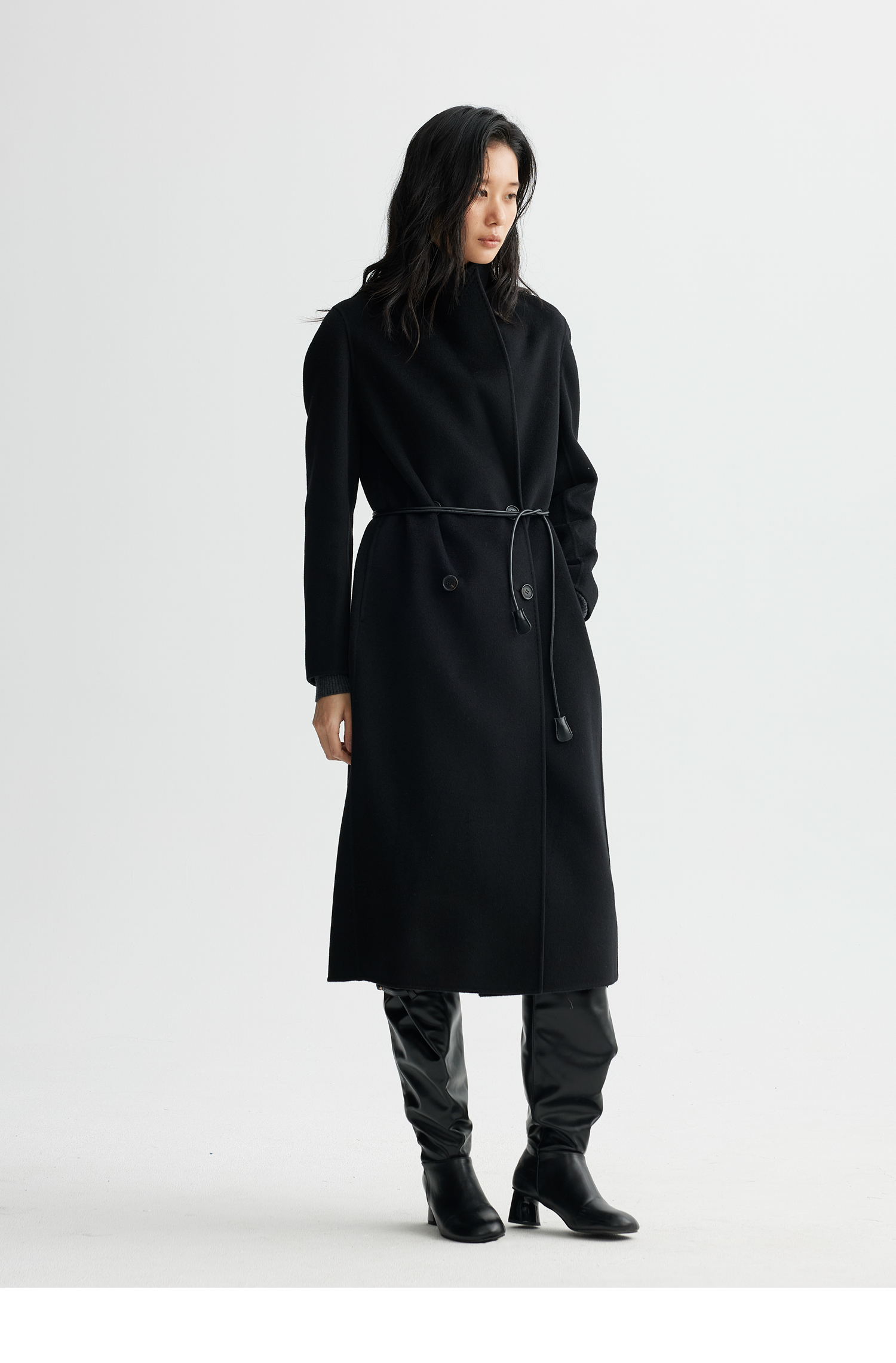 素舶 重磅细支绵羊毛精巧剪裁正肩枪驳领小个子显高双面呢大衣