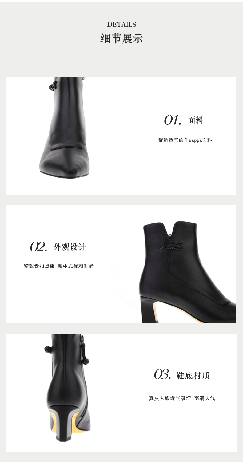 sheme精致手工盘扣点缀 新中式女士短靴 通勤商务 可定制