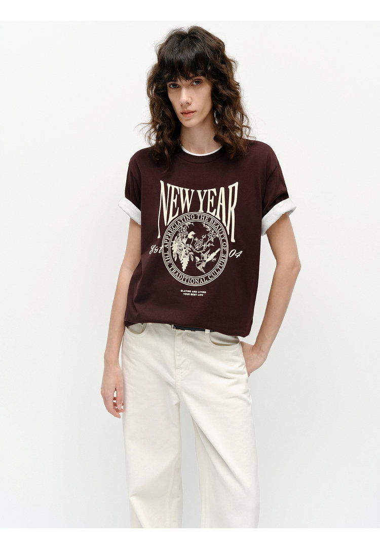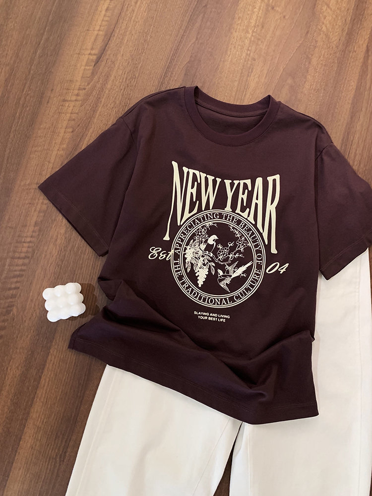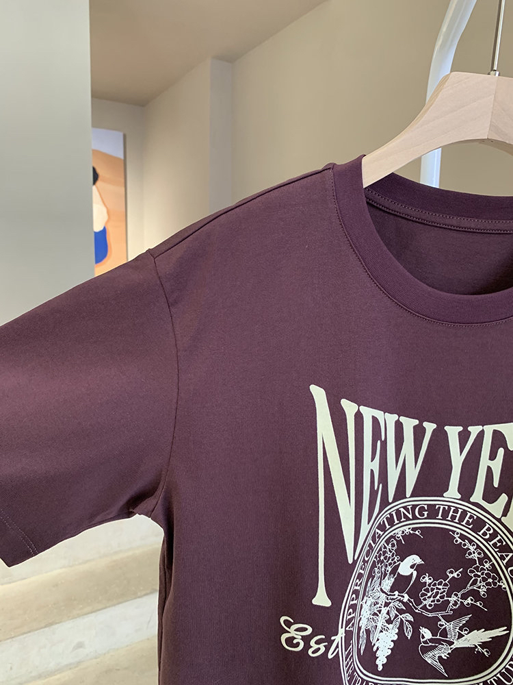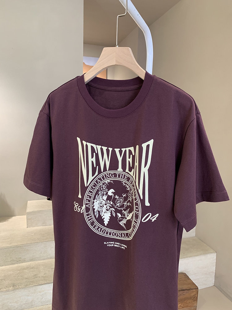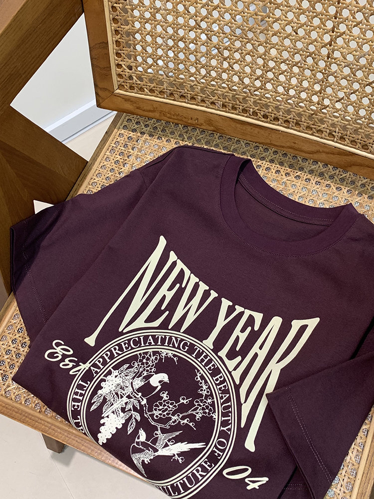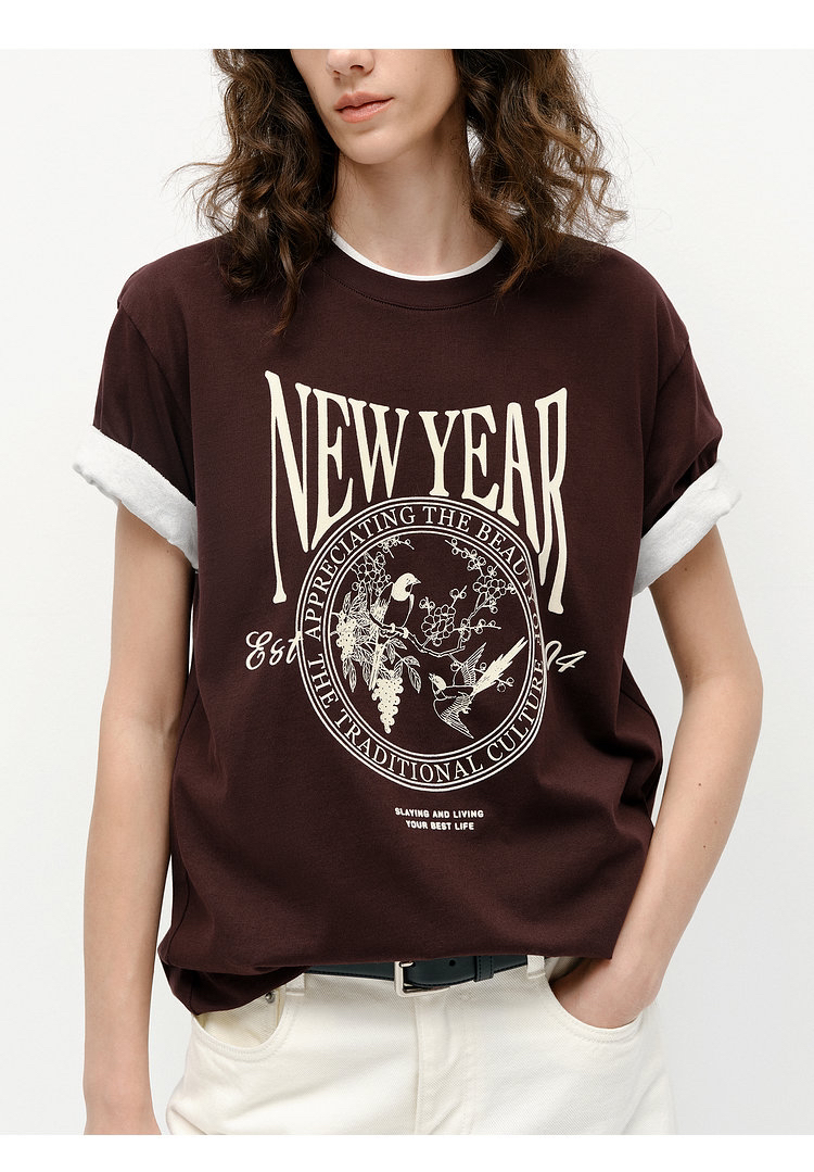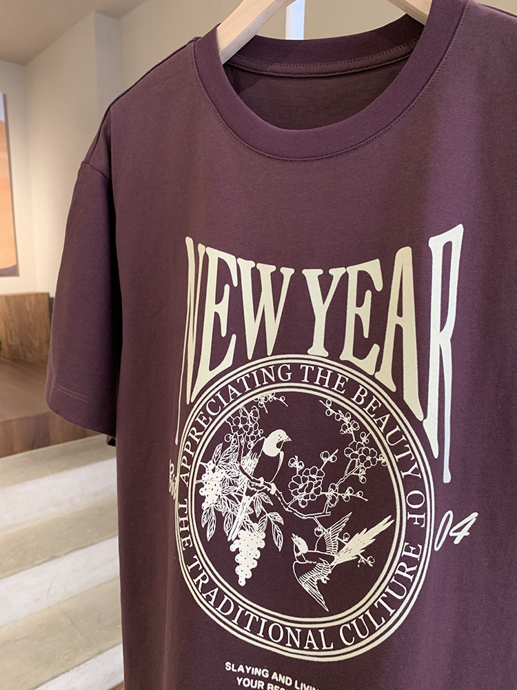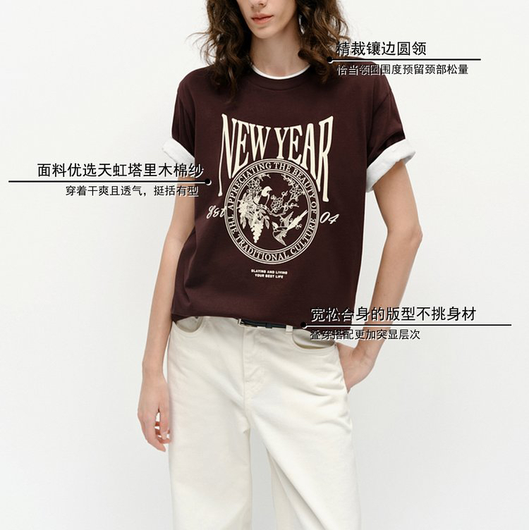 植绒印花短袖T恤 融合新中式精致植绒印花与美式字体元素 优选天虹塔里木棉纱 布面光洁 自然舒适 5A抗菌防螨 精裁镶边圆领 宽松版型