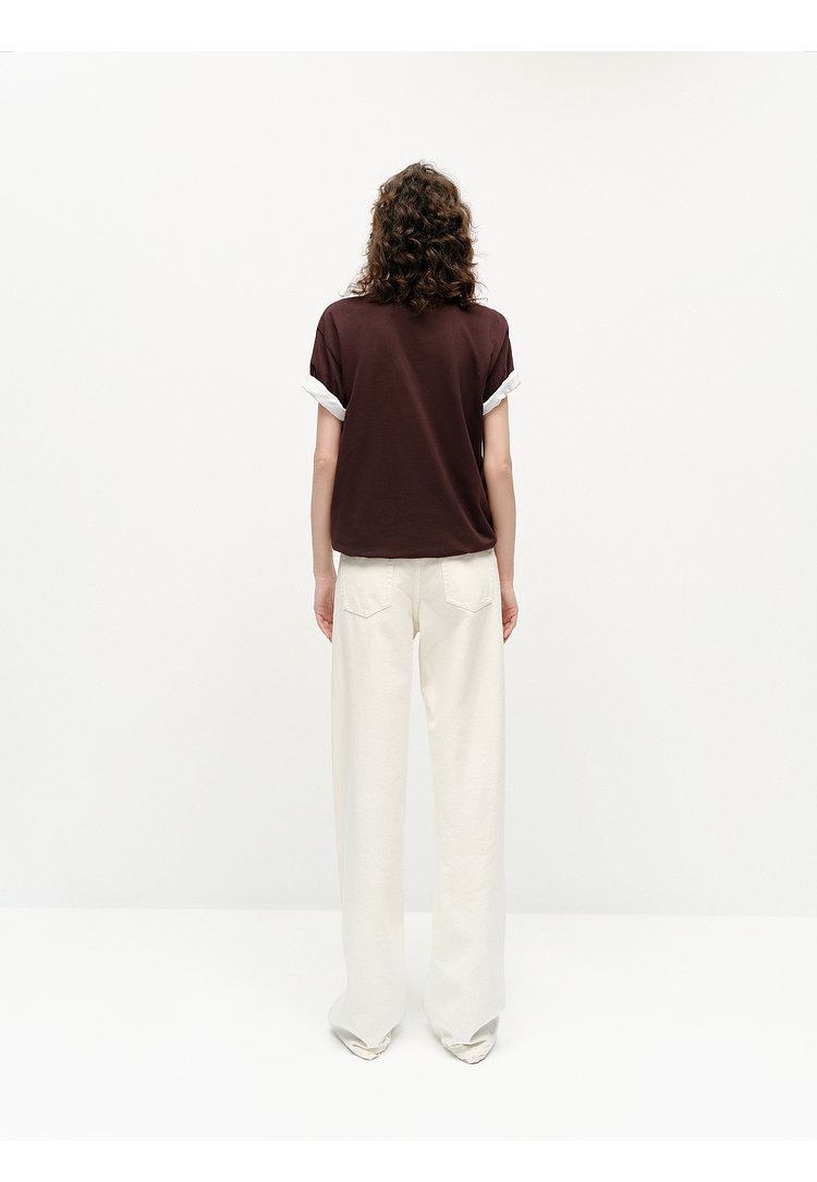 精裁镶边圆领,恰当领圈围度预留颈部松量,合颈有余/简而有力。