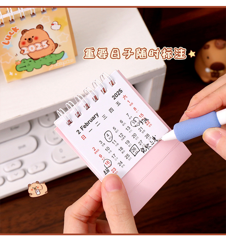 【9.9抢6本❗️可爱迷你小日历】新款2025年日历卡皮巴拉卡通台历,六孔线圈! 翻页更丝滑,可爱迷你日历学生办公室桌面月历送同事QQ2026马年新年款