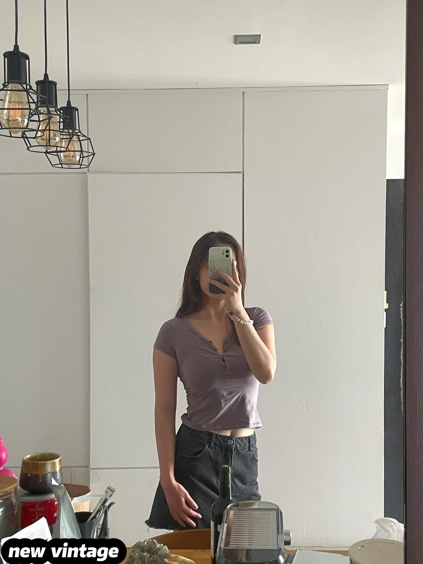 不是cropped top,不会露肚脐,如果个子在165左右的话穿上长度应该能到耻骨