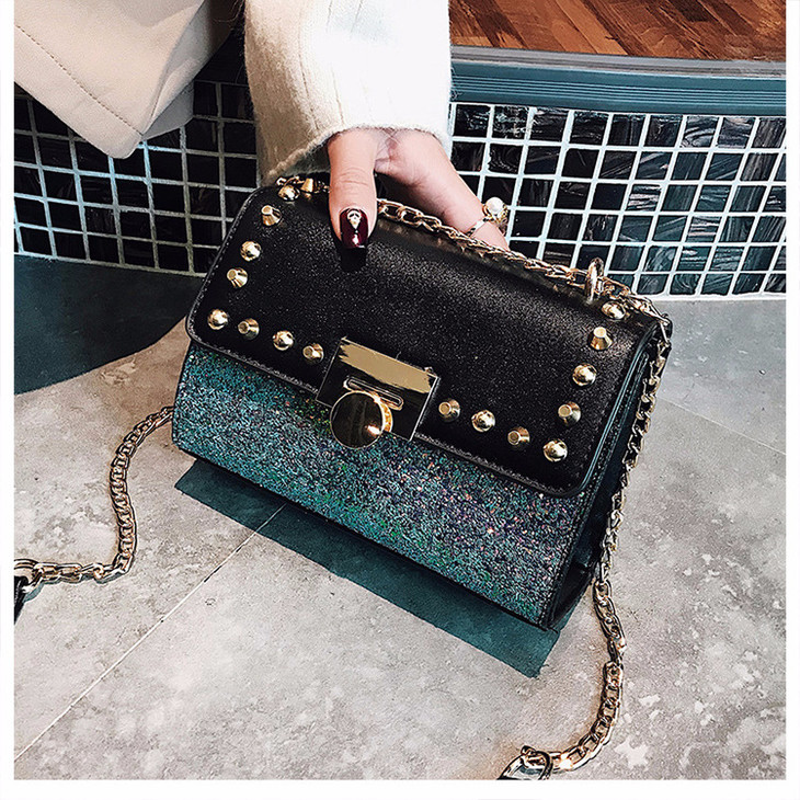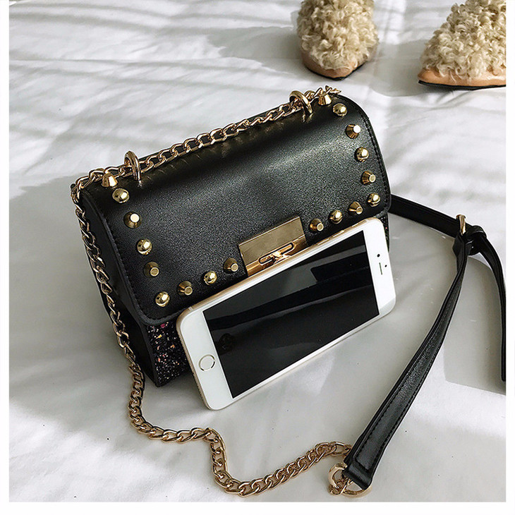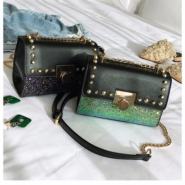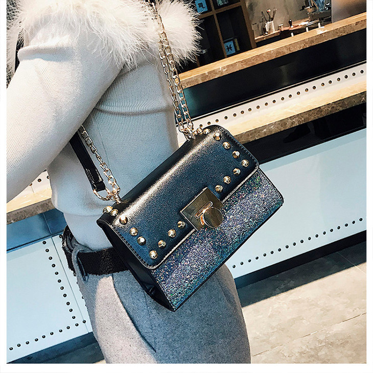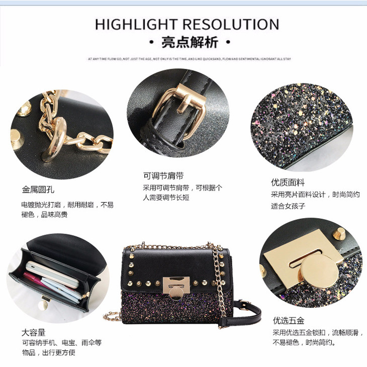 【服饰鞋包】韩版时尚潮流百搭锁扣pu皮亮片小方包春季新款斜跨单肩包