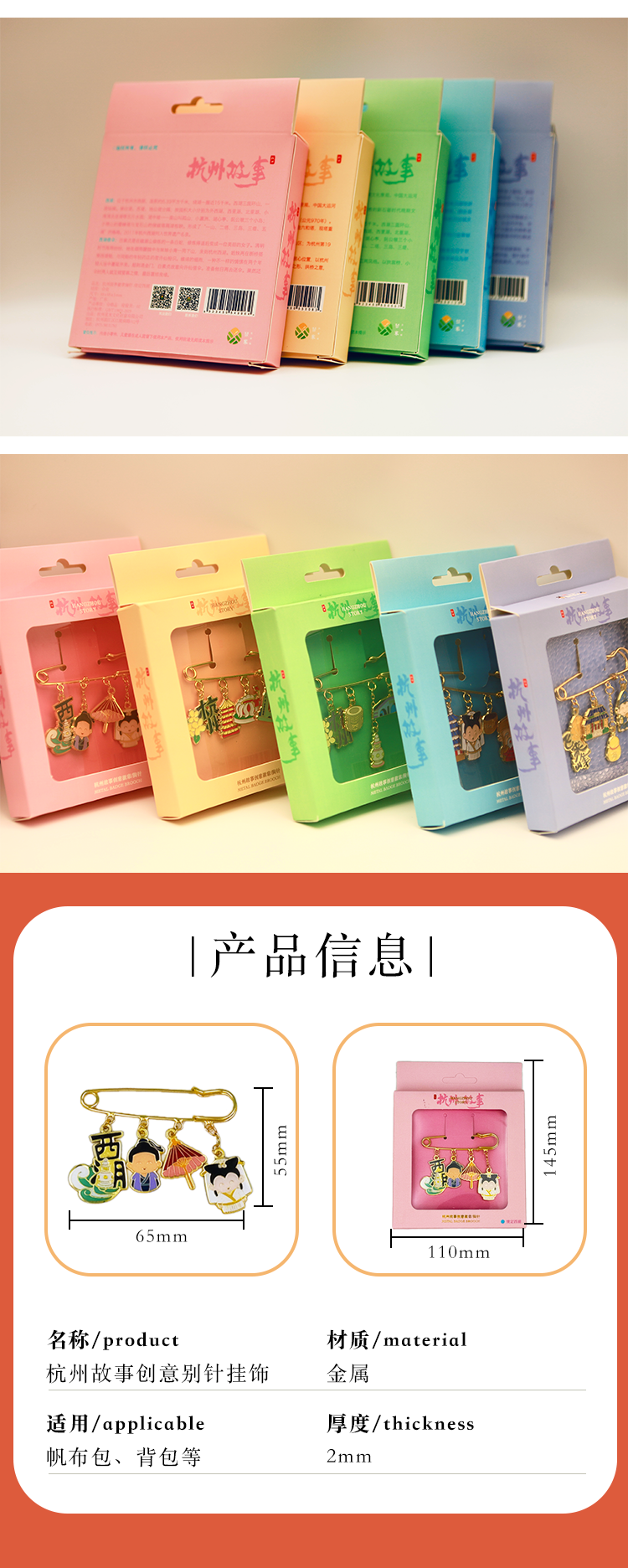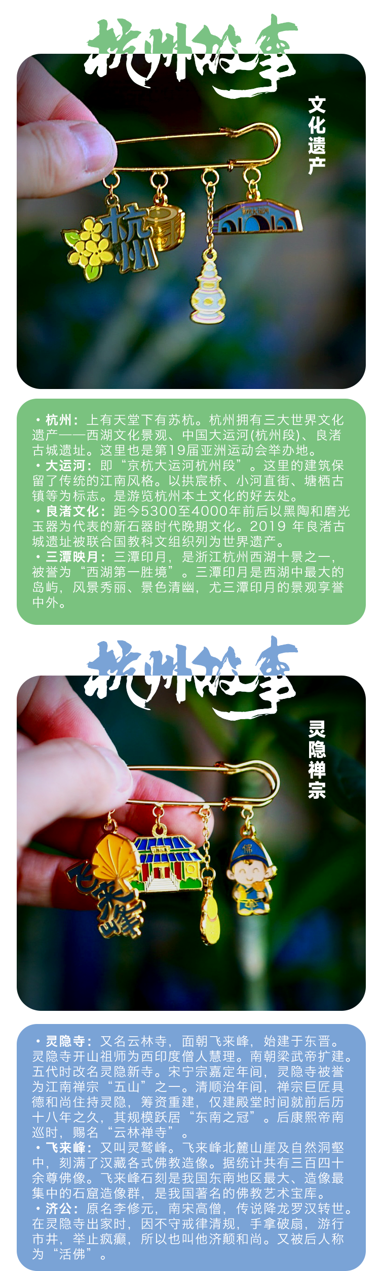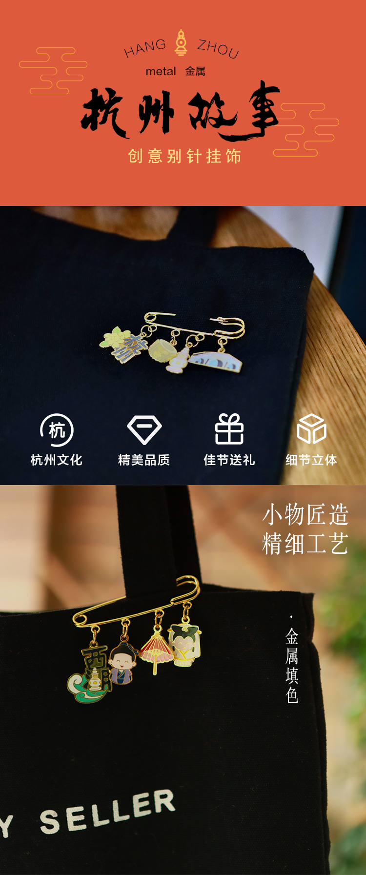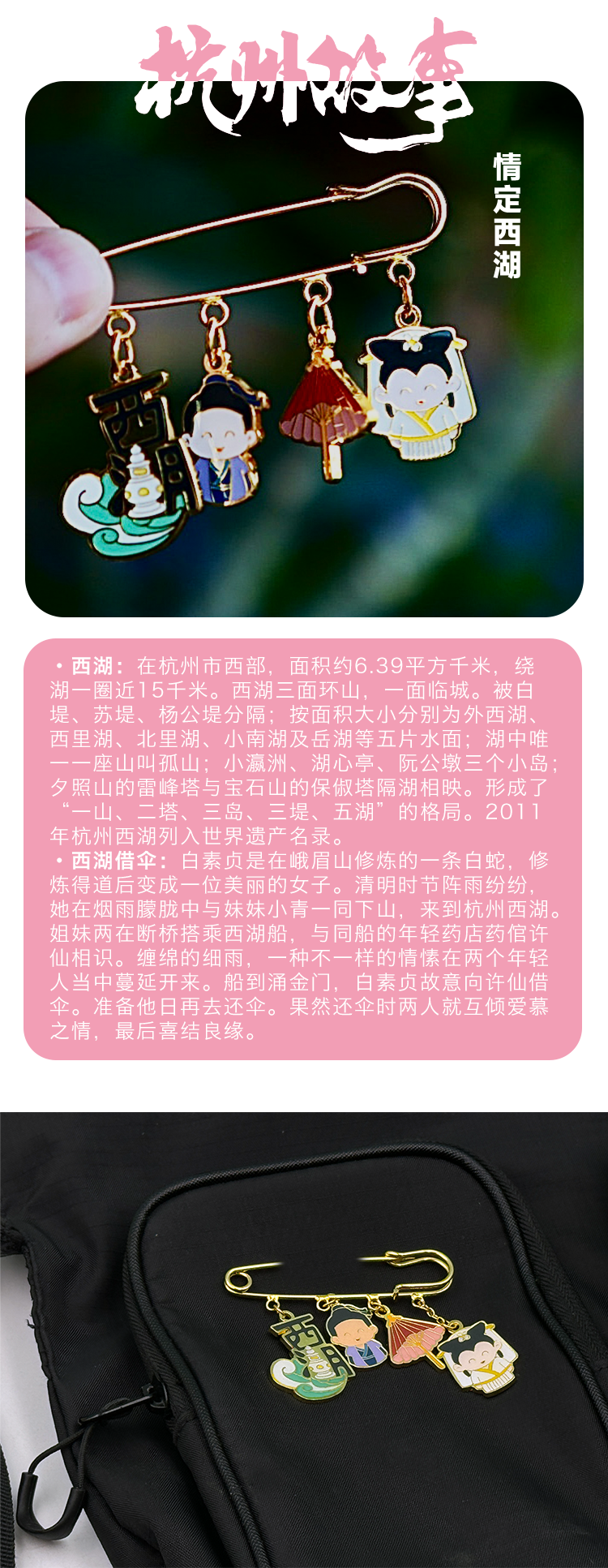 西湖景区杭州故事别针挂件文创礼品纪念品挂饰