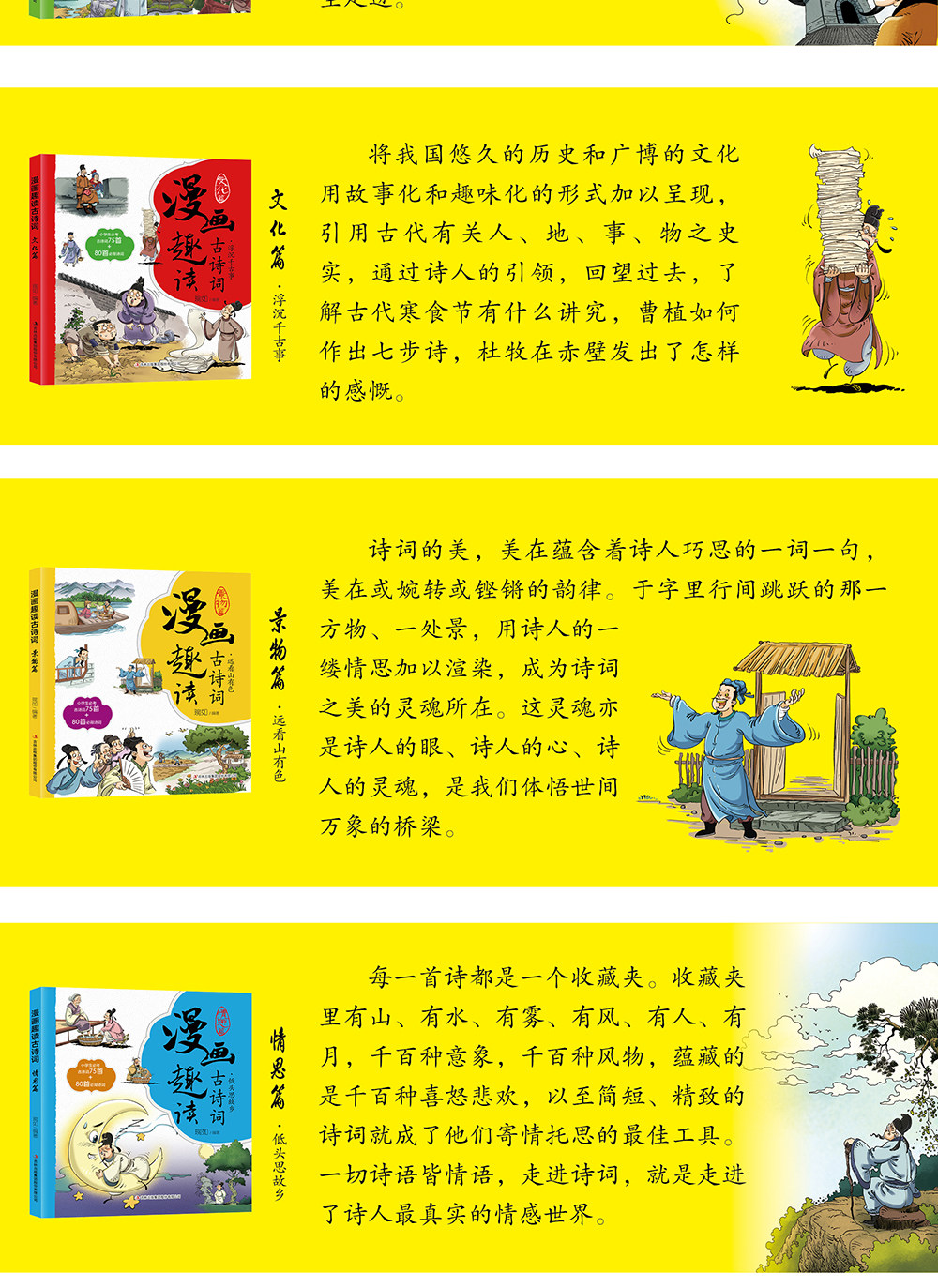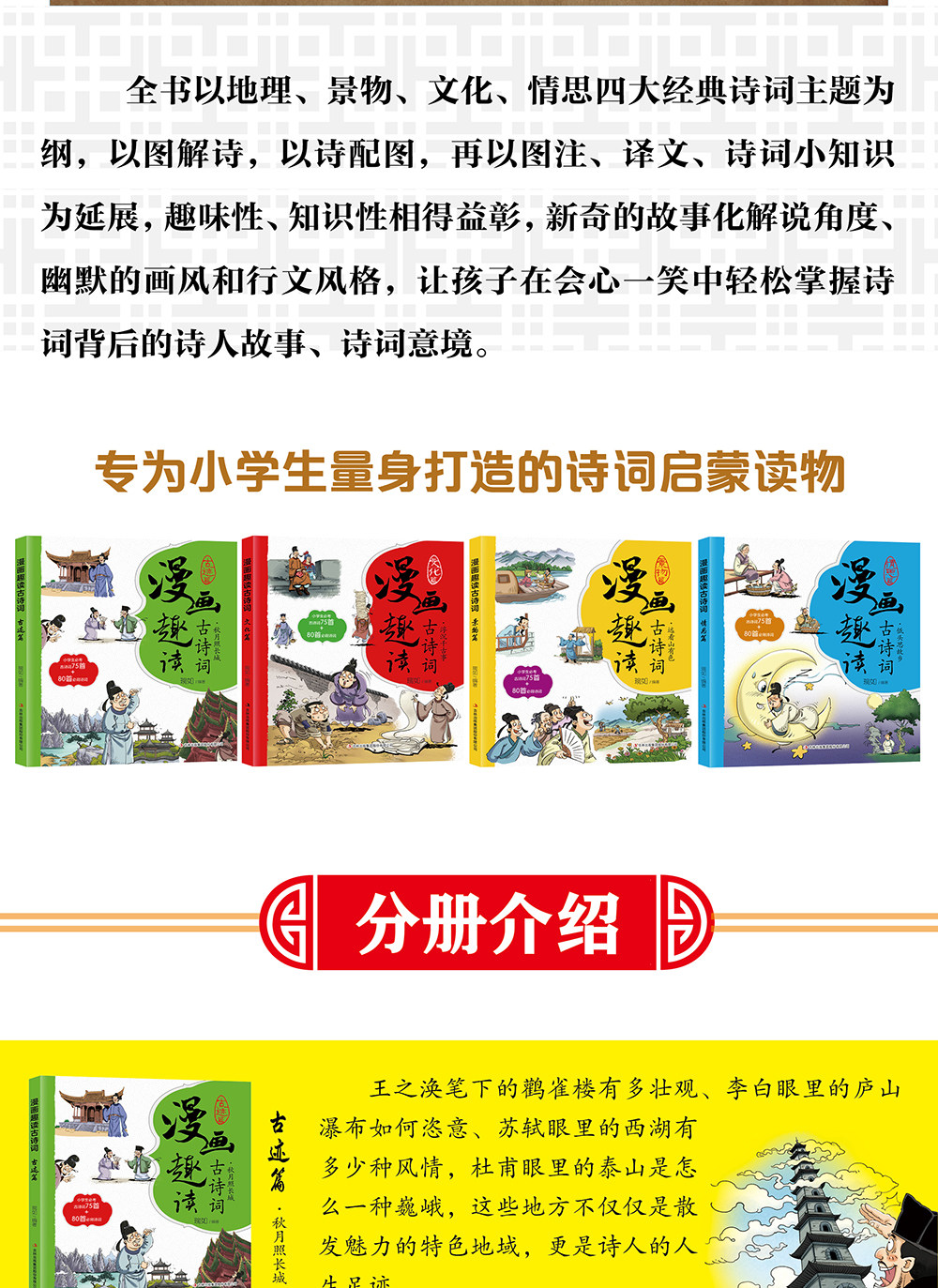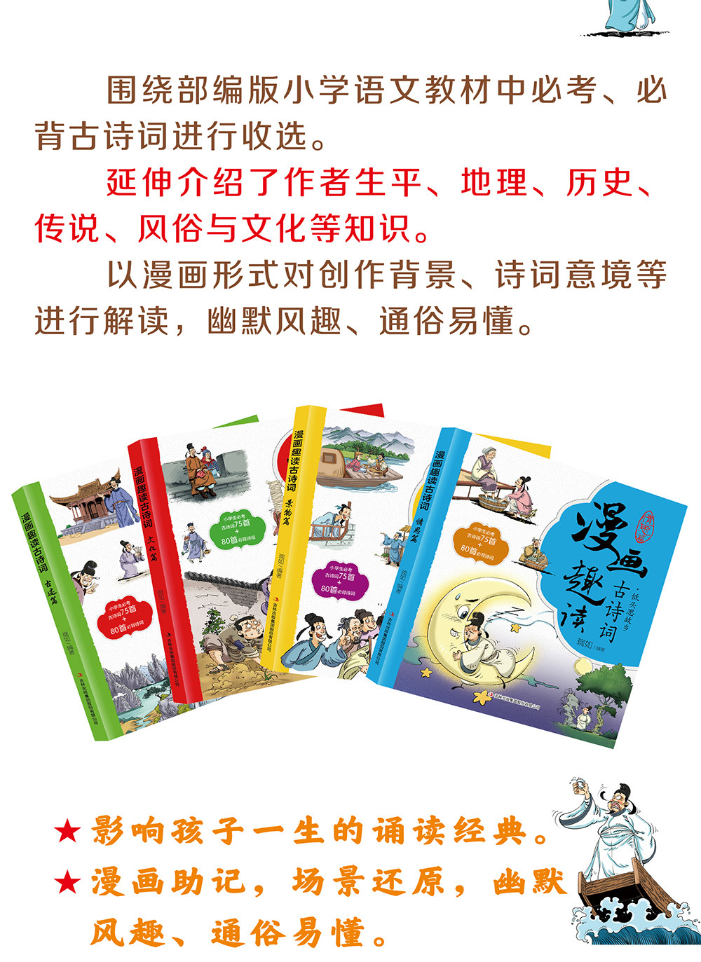 漫画趣读古诗词全套4册 小学生必背古诗75十80首一二三年级阅读课外书必读带拼音唐诗三百首儿童国学幼儿早教启蒙正版历史线诗词