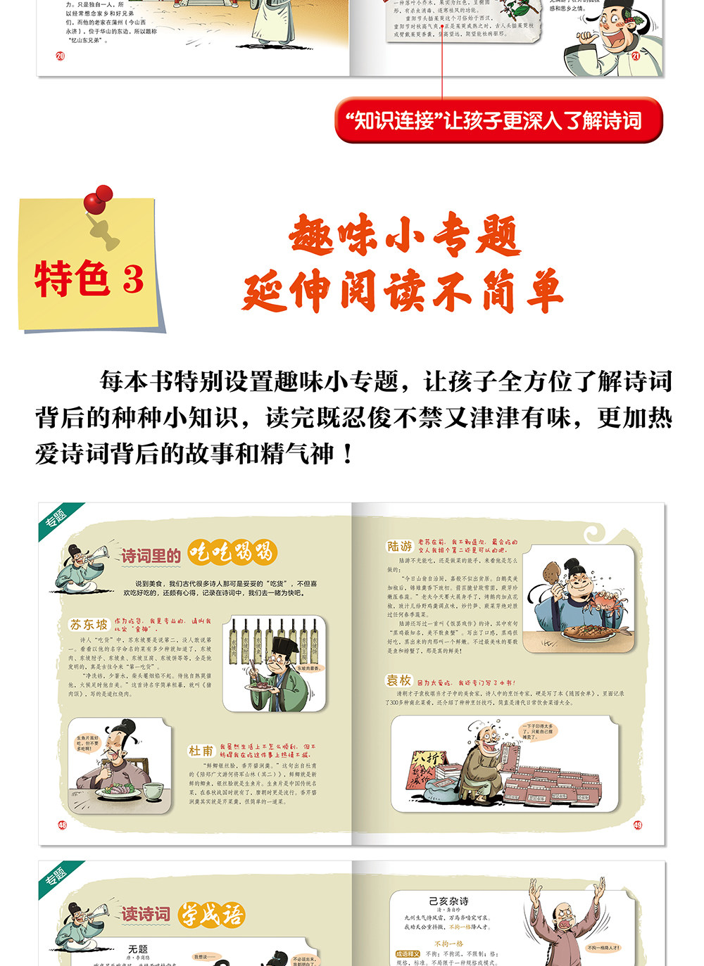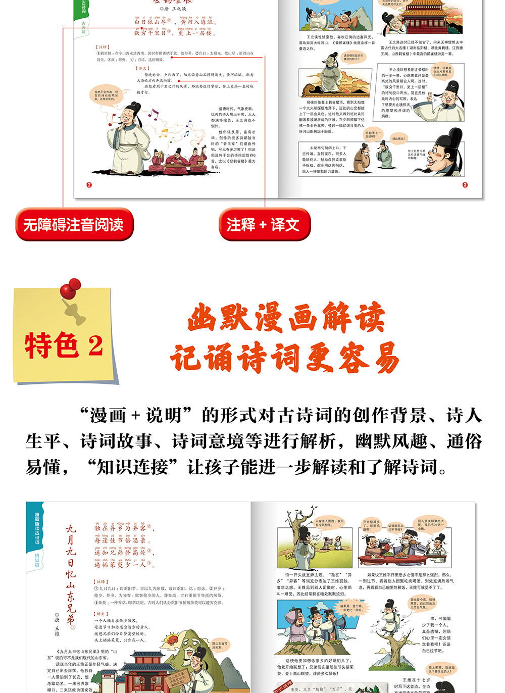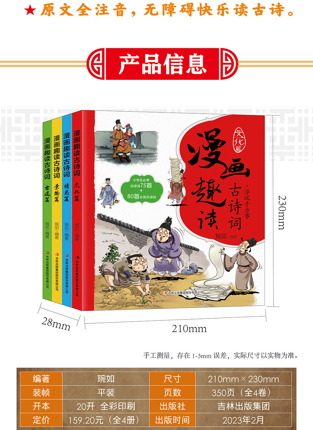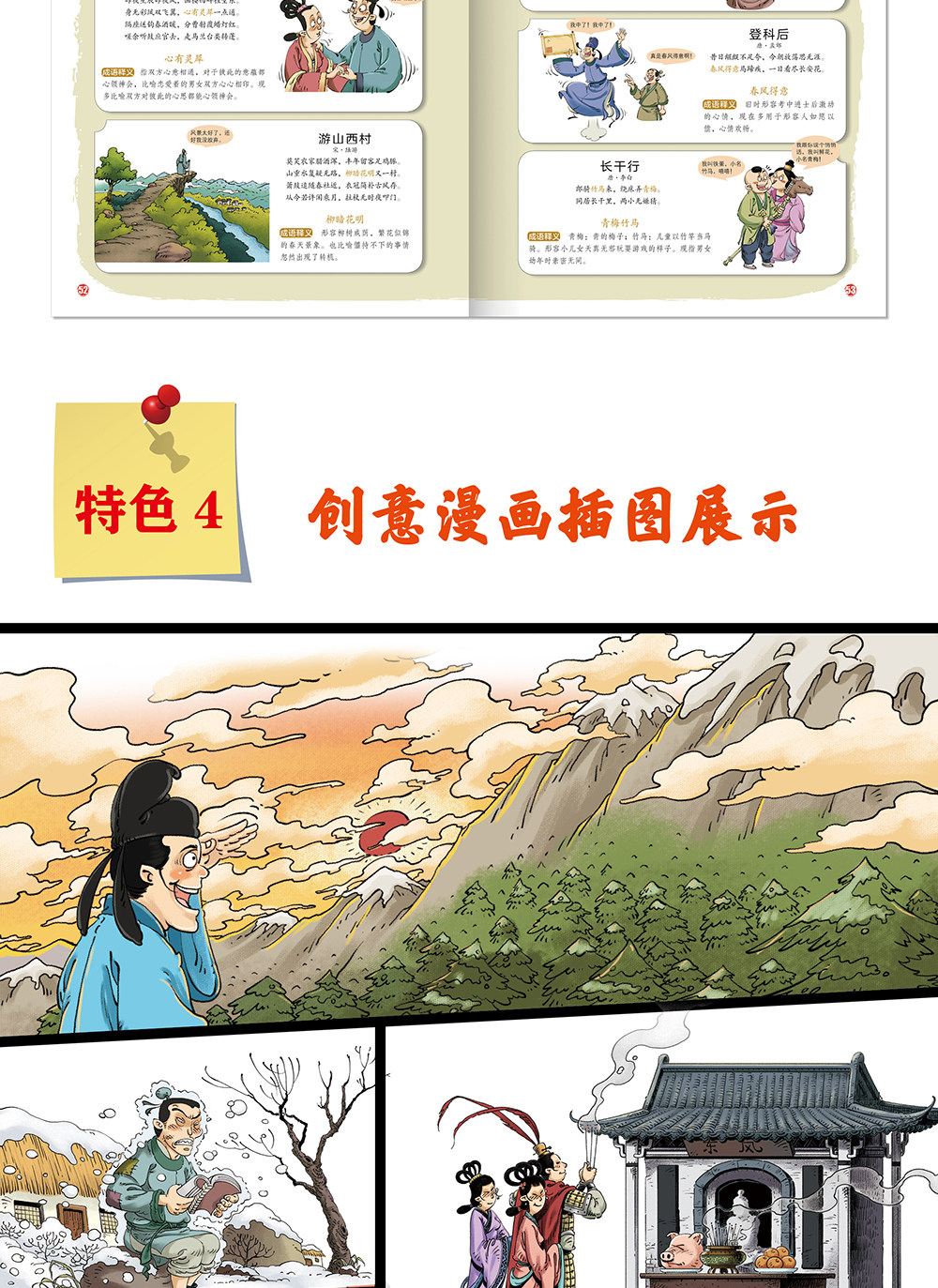 漫画趣读古诗词全套4册 小学生必背古诗75十80首一二三年级阅读课外书必读带拼音唐诗三百首儿童国学幼儿早教启蒙正版历史线诗词