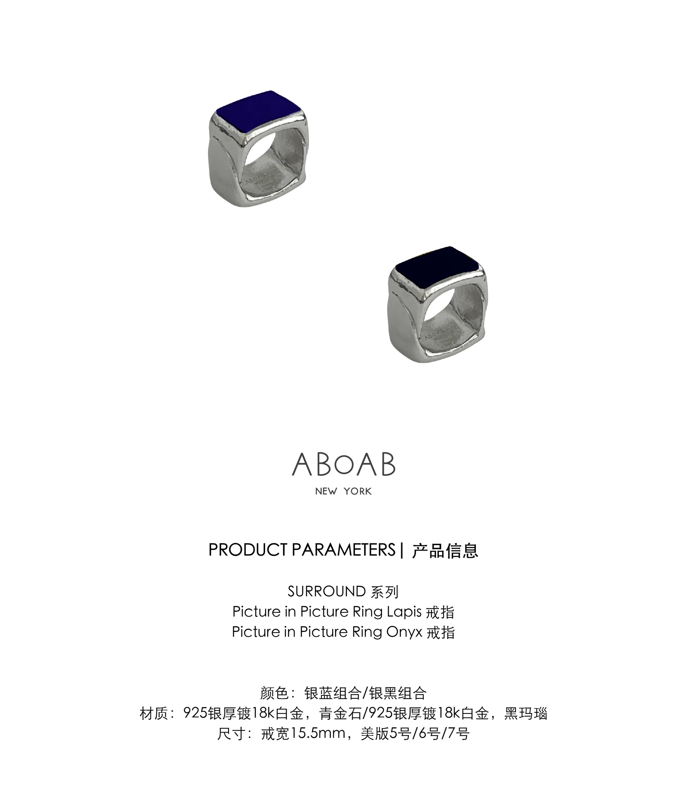 ABOAB|PICTURE IN PICTURE Ring [ 戒指 银lapis / 银onyx ]【SURROUND】