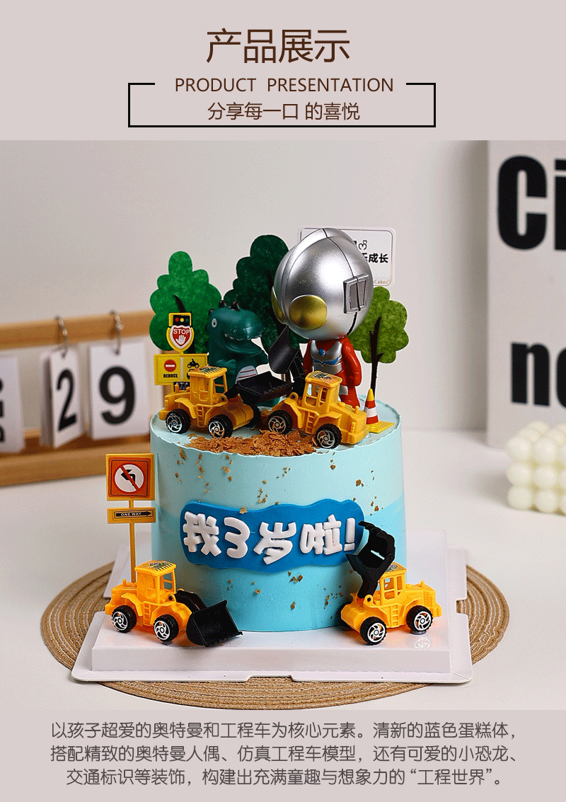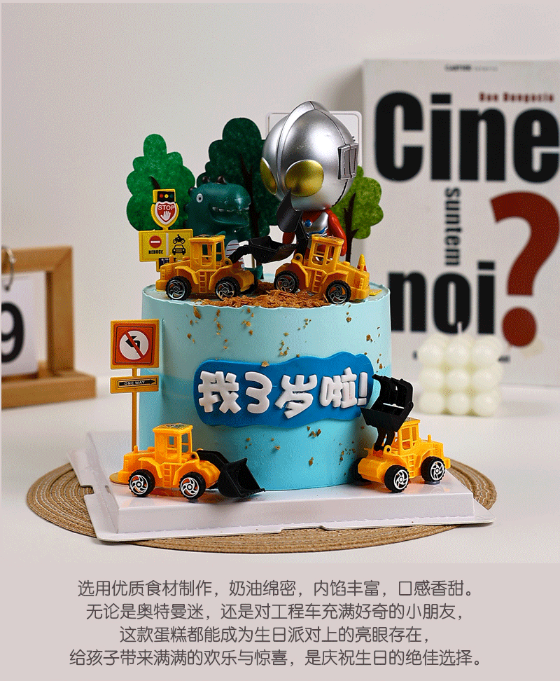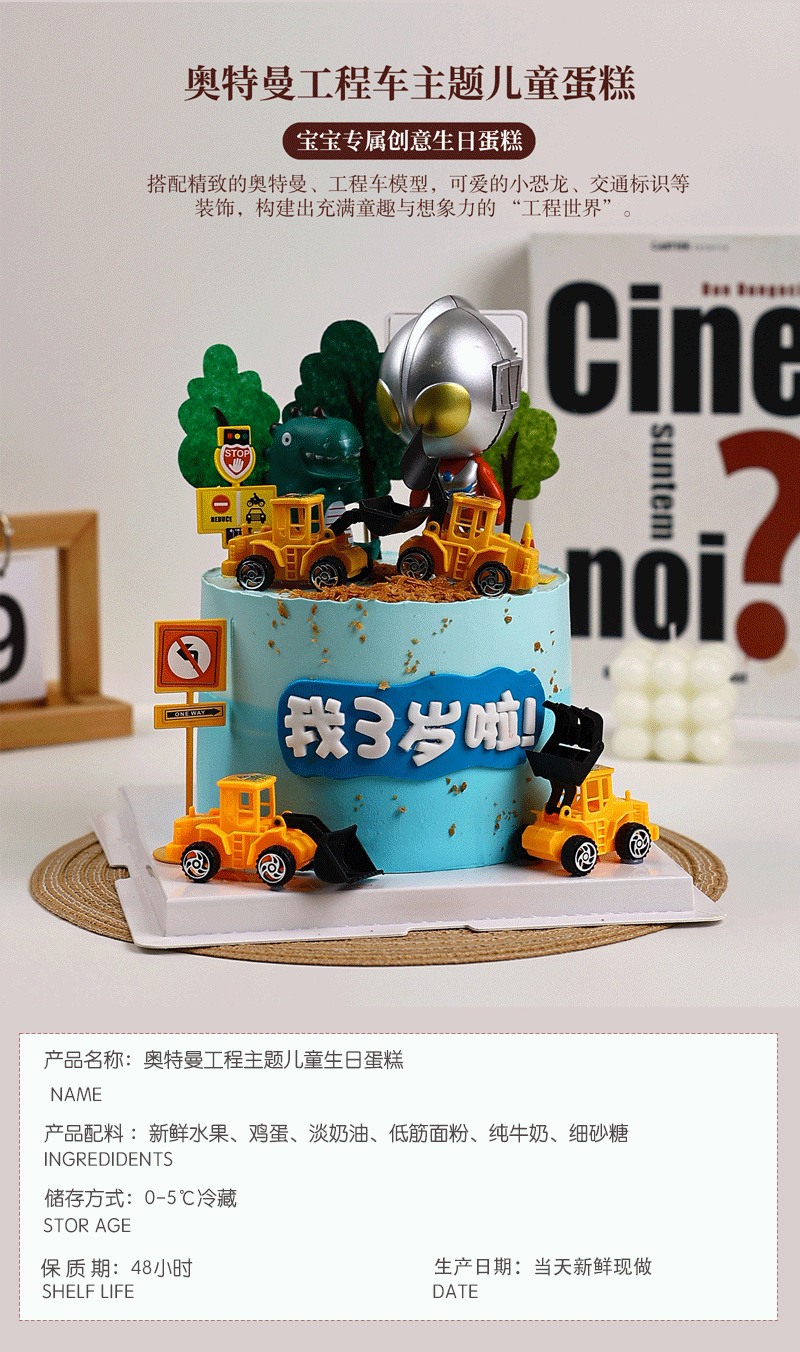 奥特曼工程车主题儿童生日鲜果蛋糕,宝宝专属创意蛋糕【惠州】