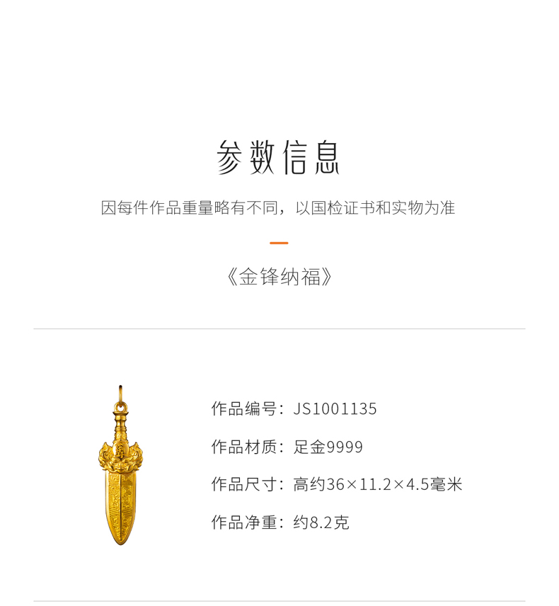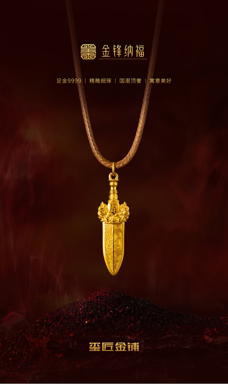 玺匠金铺《金锋纳福》足金9999 黄金吊坠项链生日礼物