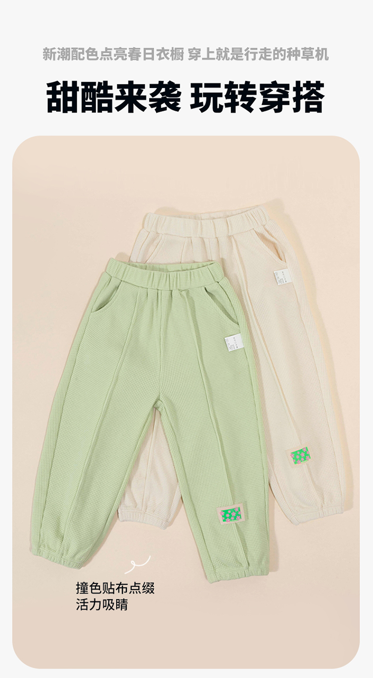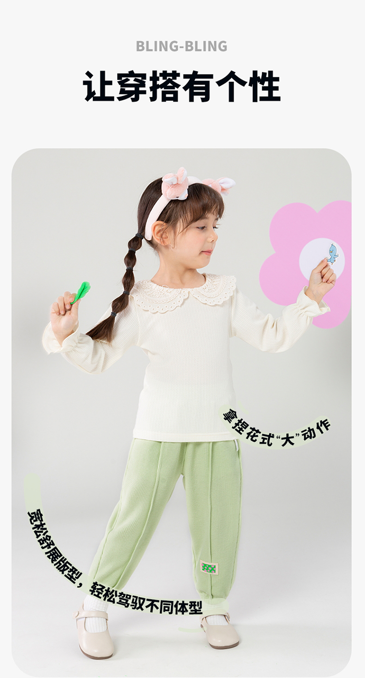 贝贝怡儿童休闲长裤子女童2024春季新款舒适束脚裤洋气女宝宝春装ZB1DK027