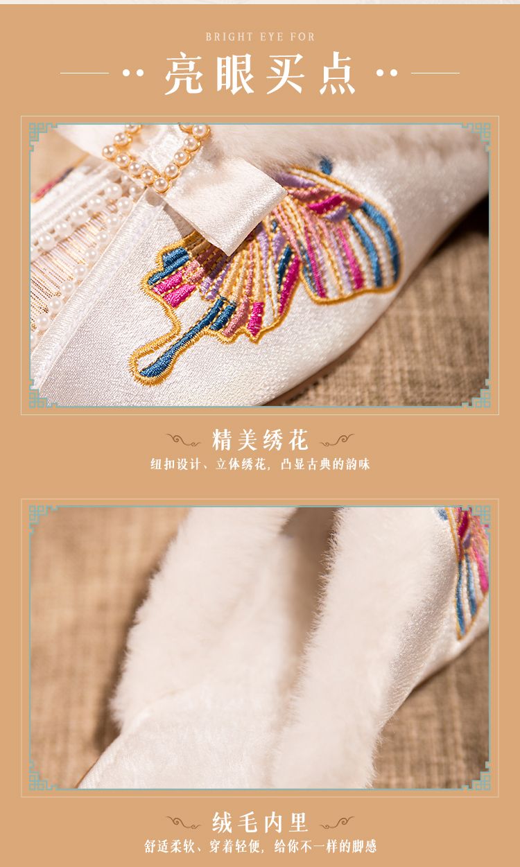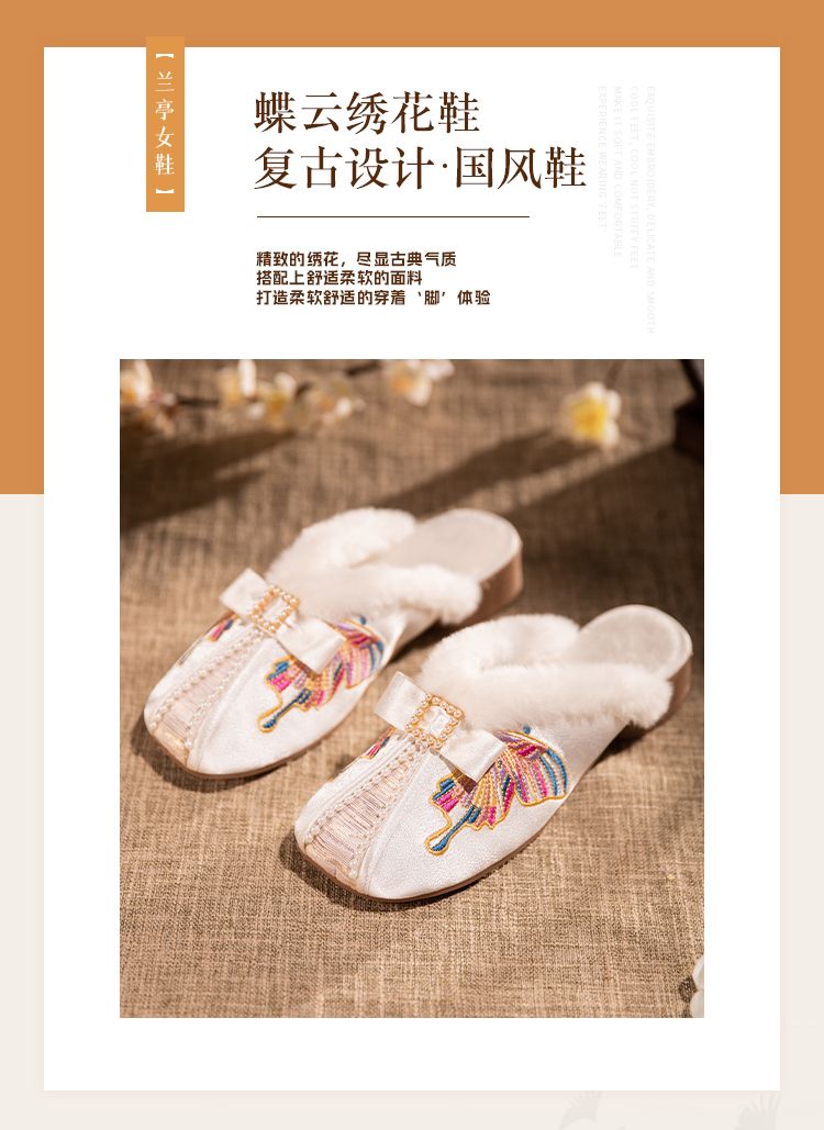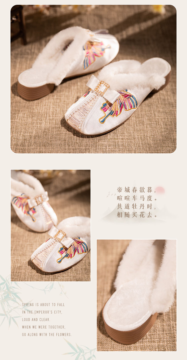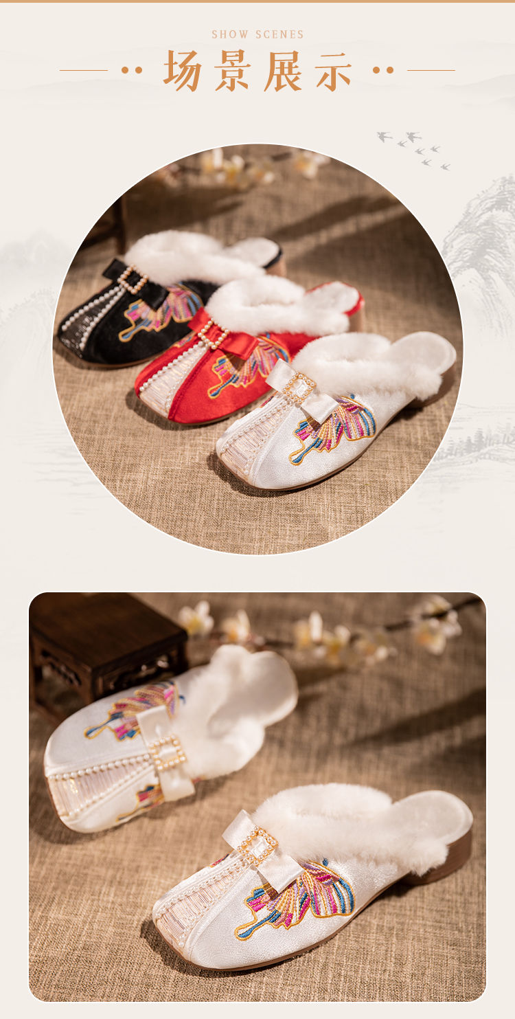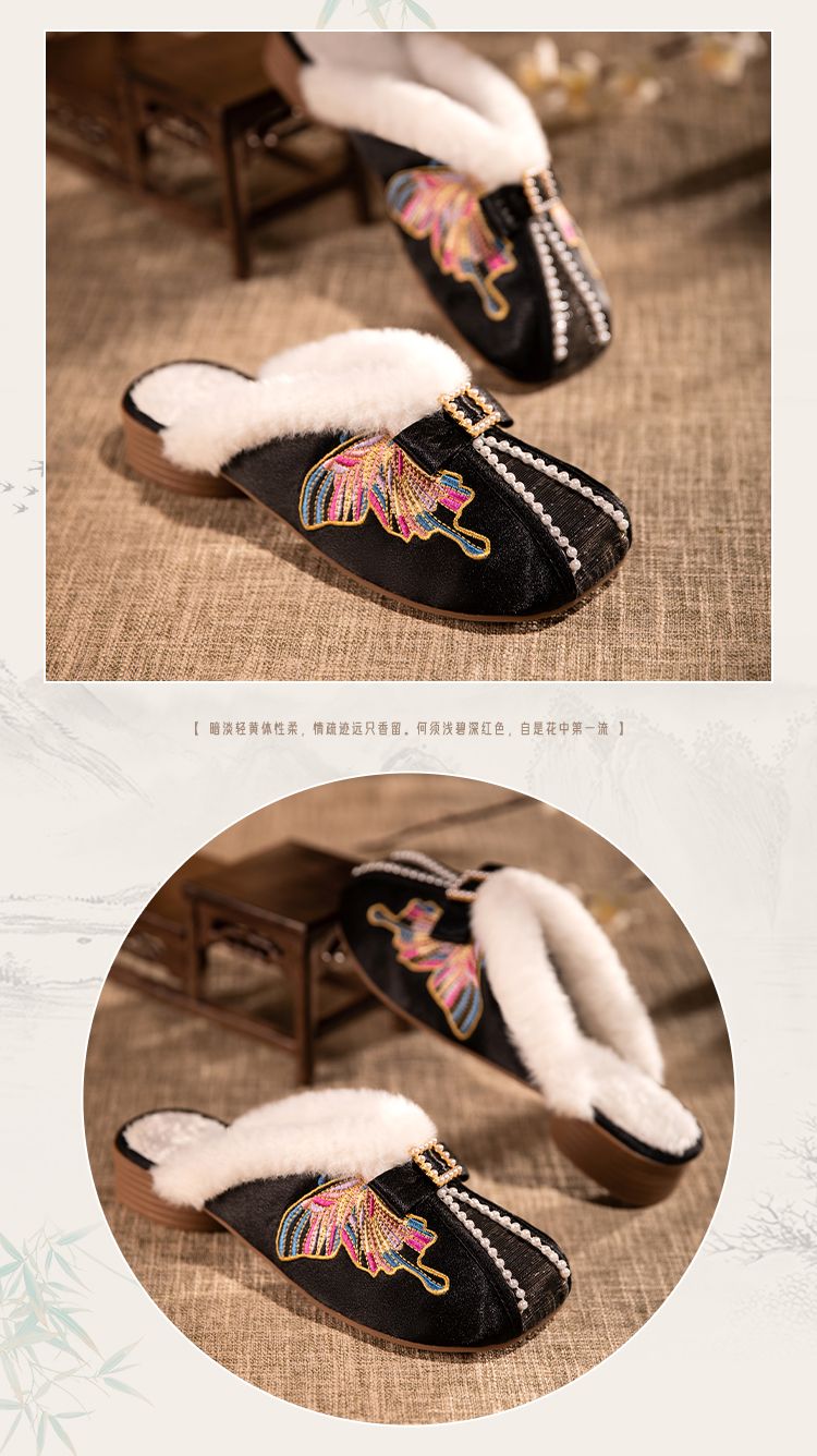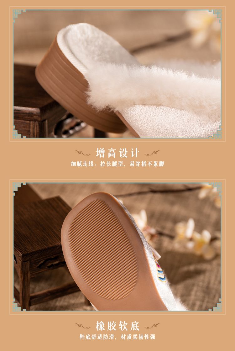 毛拖鞋女2023新款中老年加绒加厚宽松保暖办公室外穿厚底绣花拖鞋