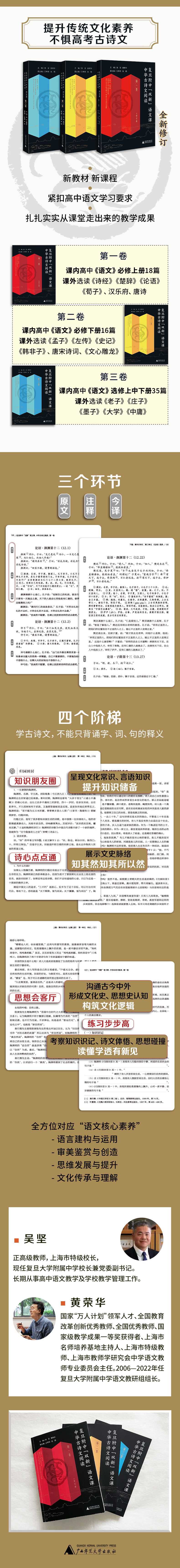 本书是复旦附中语文课程校本化进程中教材建设的一项重要成果,于2012年完成,并于2015年陆续出版,曾获教学成果一等奖。此次根据新的语文课程标准要求进行了大幅度修订,可以帮助学生全方位地掌握中华传统文化的精髓,是一本丰富、完善、耐读且有益的古诗文阅读资料。