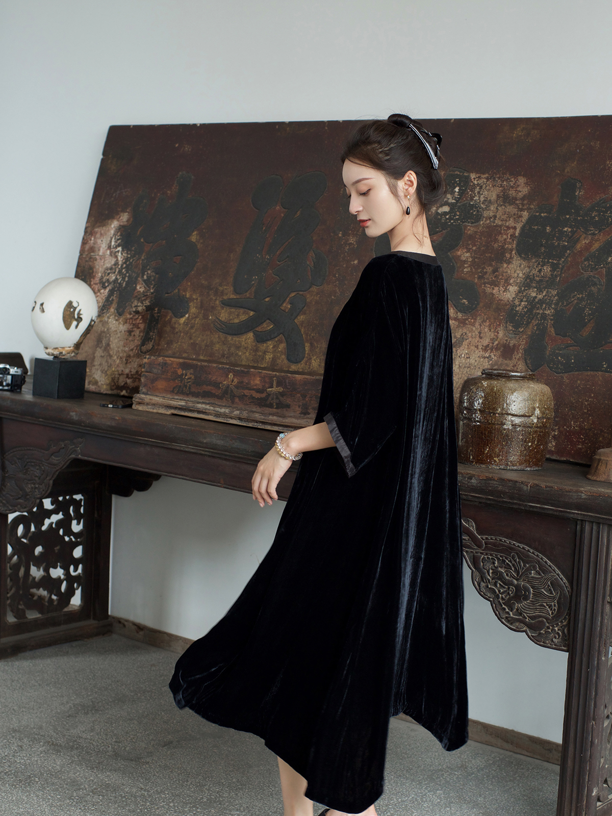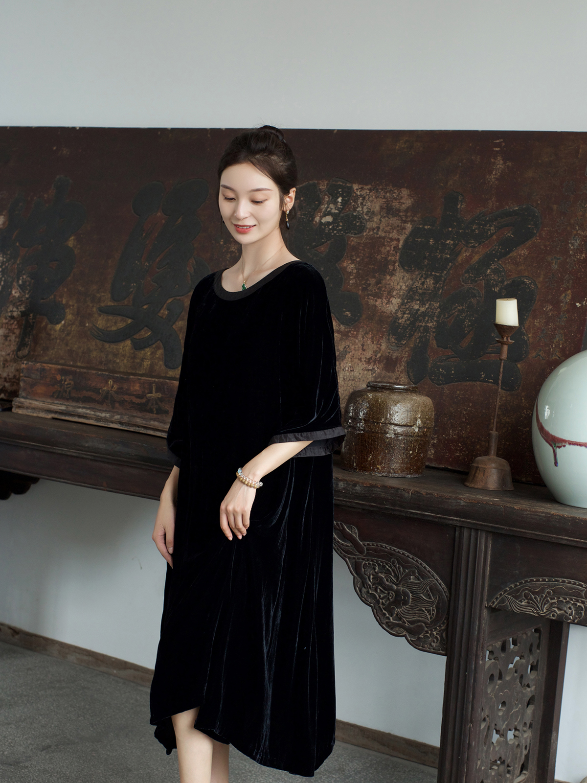 盛唐牡丹 |限量款/真丝丝绒宽松连衣裙(附赠丝绒腰带)