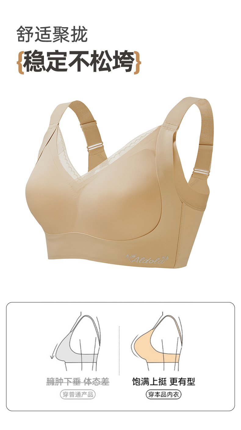 雅黛俪内衣女无痕聚拢舒适显大提拉收副乳无钢圈深V性感文胸罩
