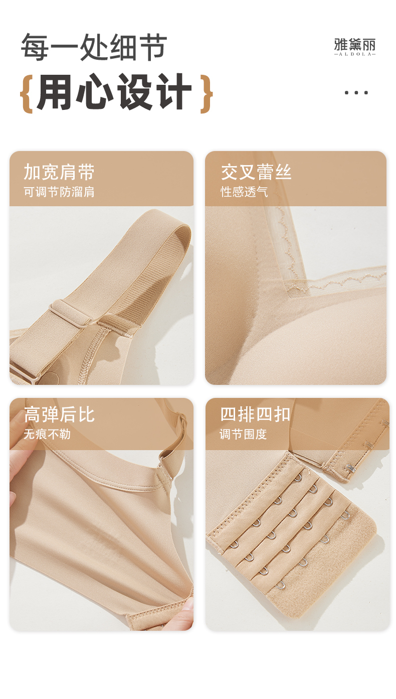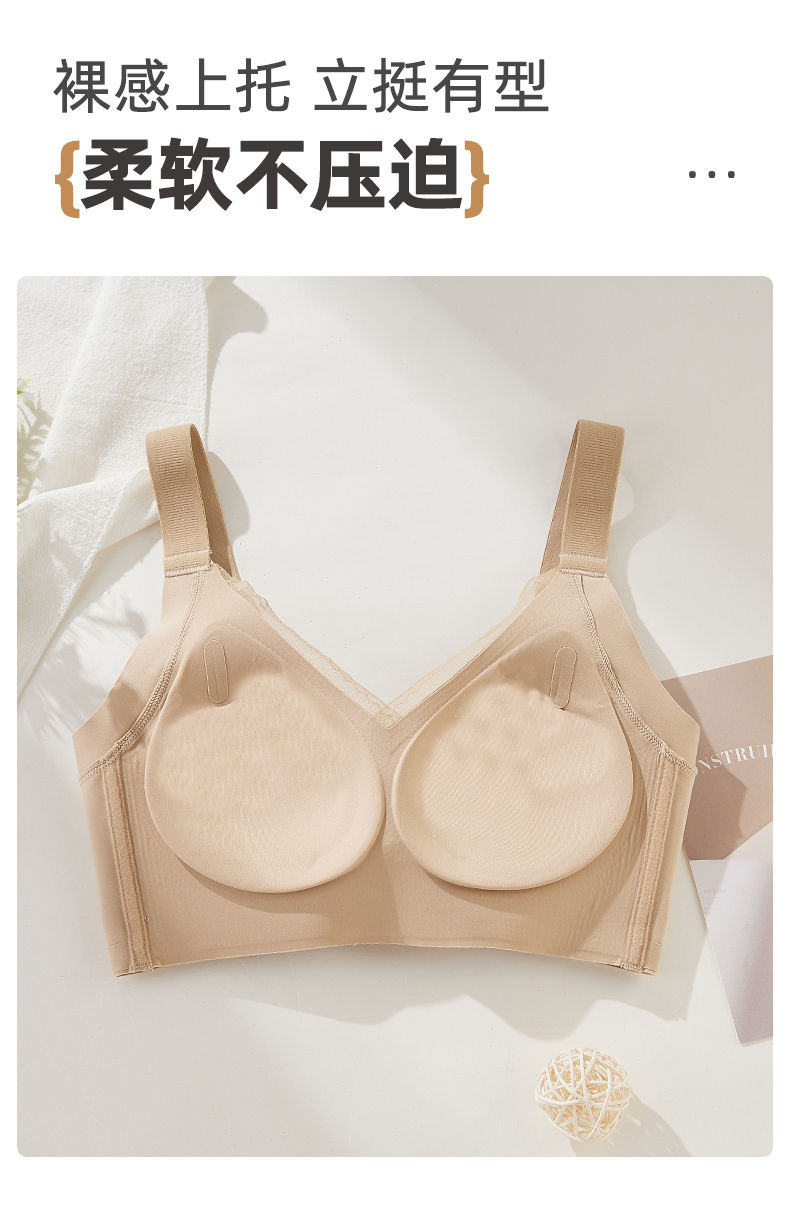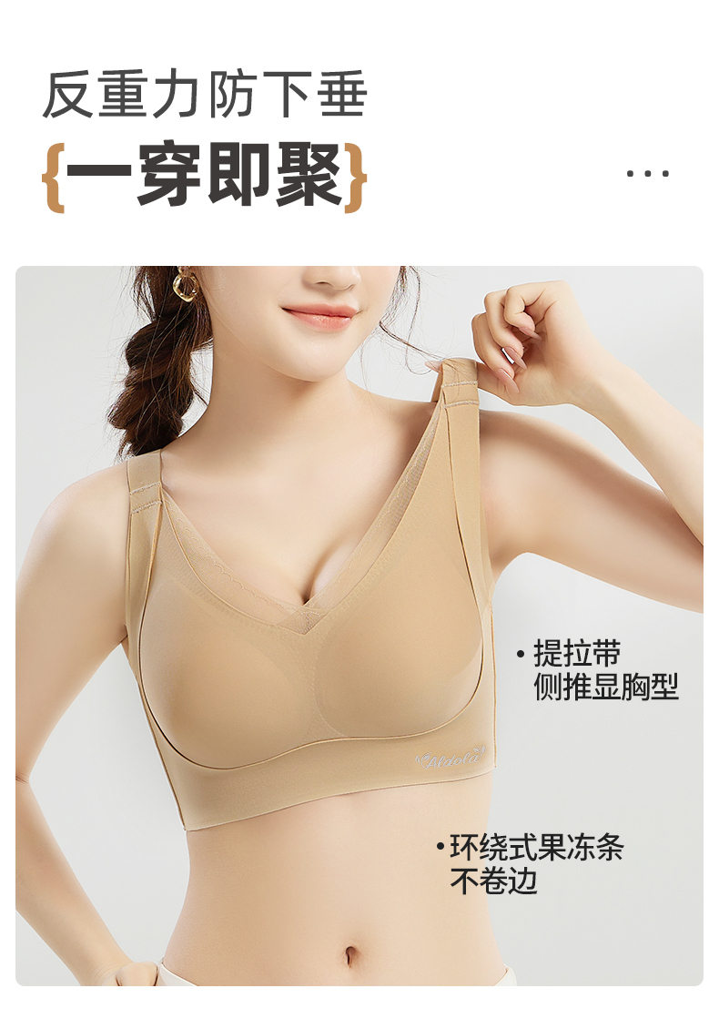 雅黛丽内衣女无痕小胸聚拢显大文胸无钢圈收副乳一片式光面胸罩女